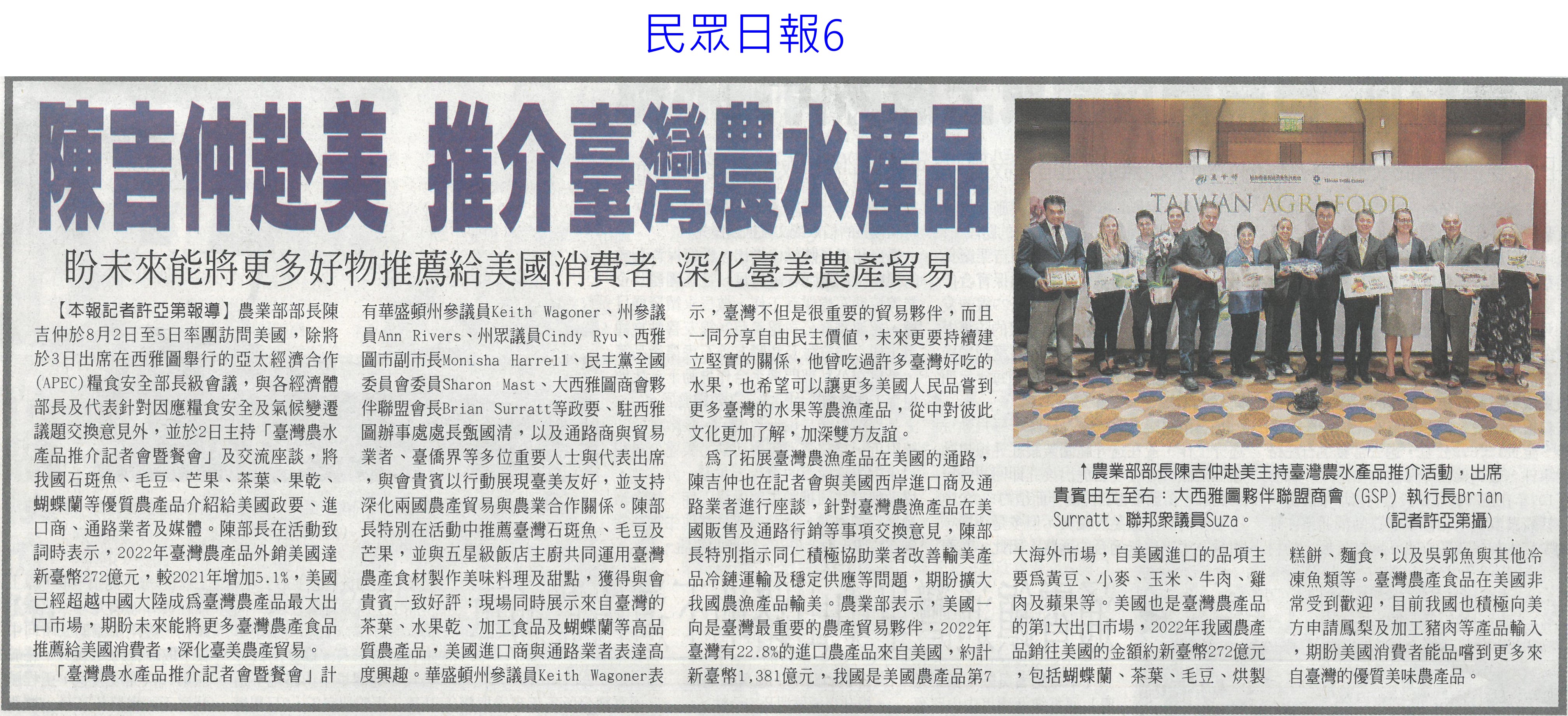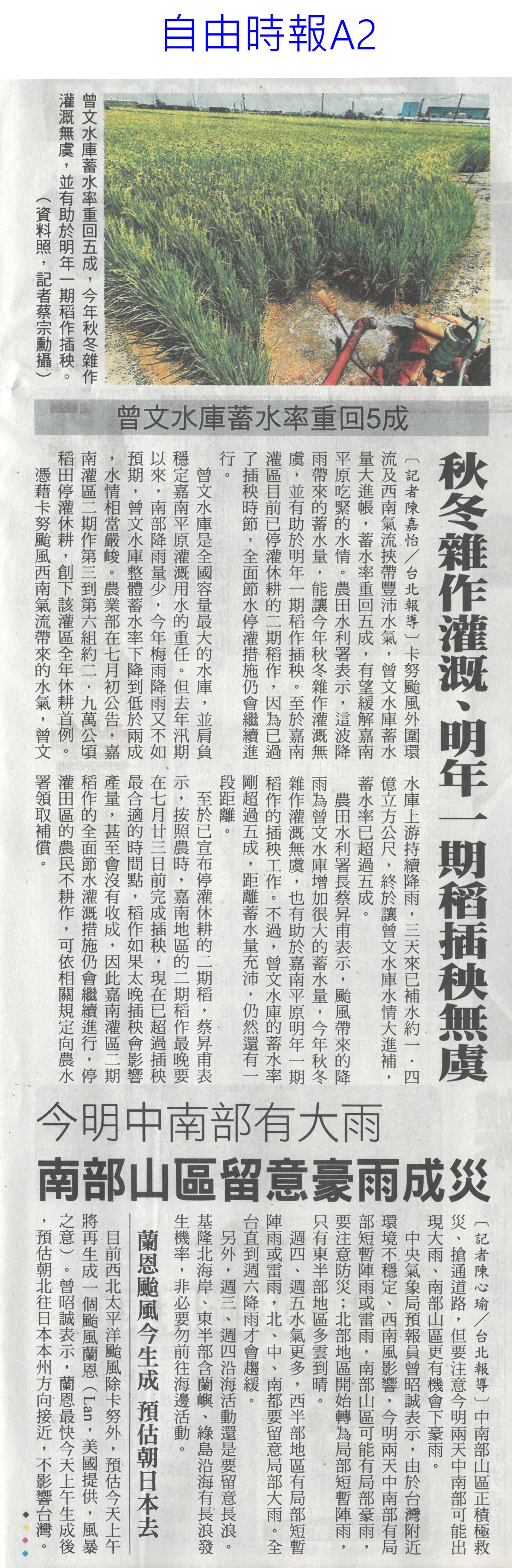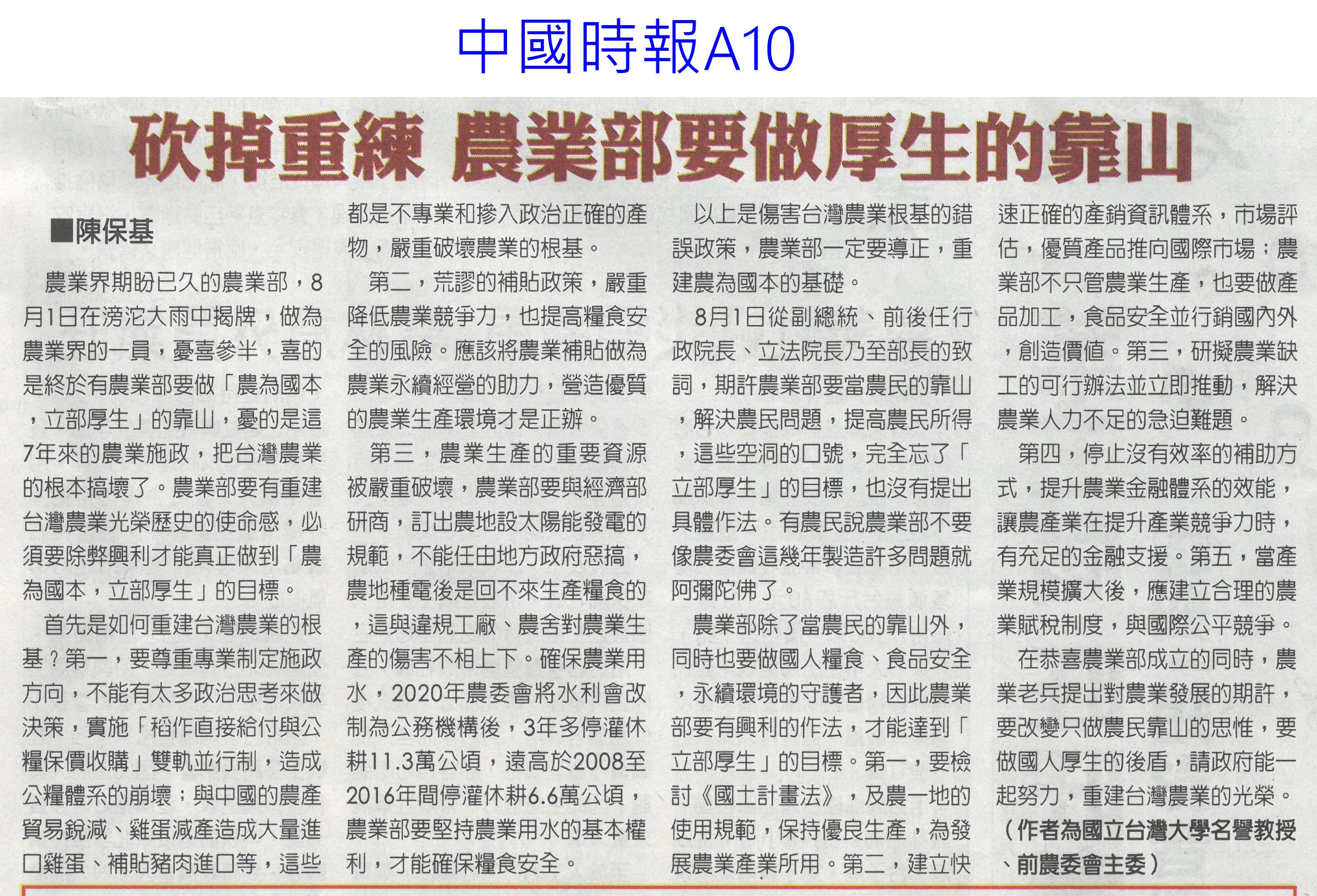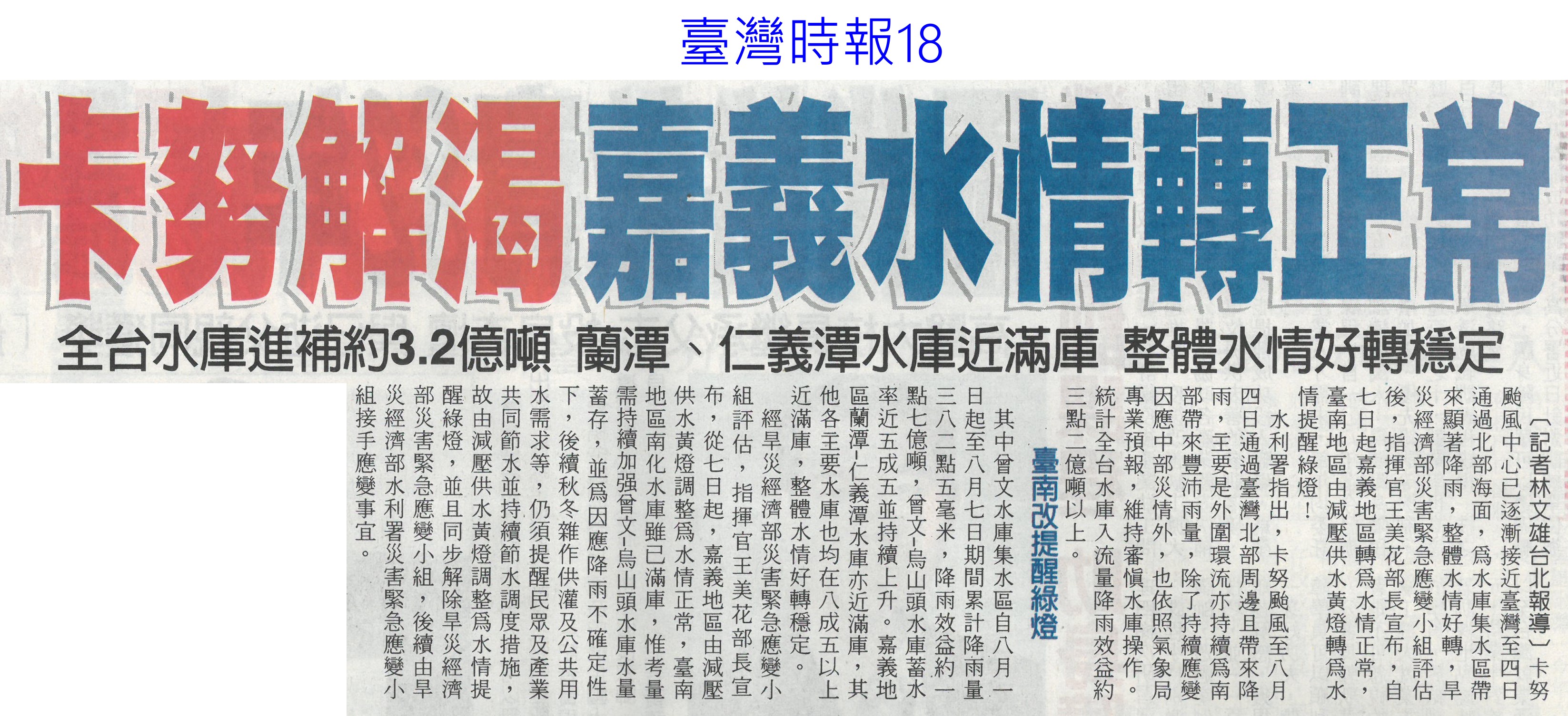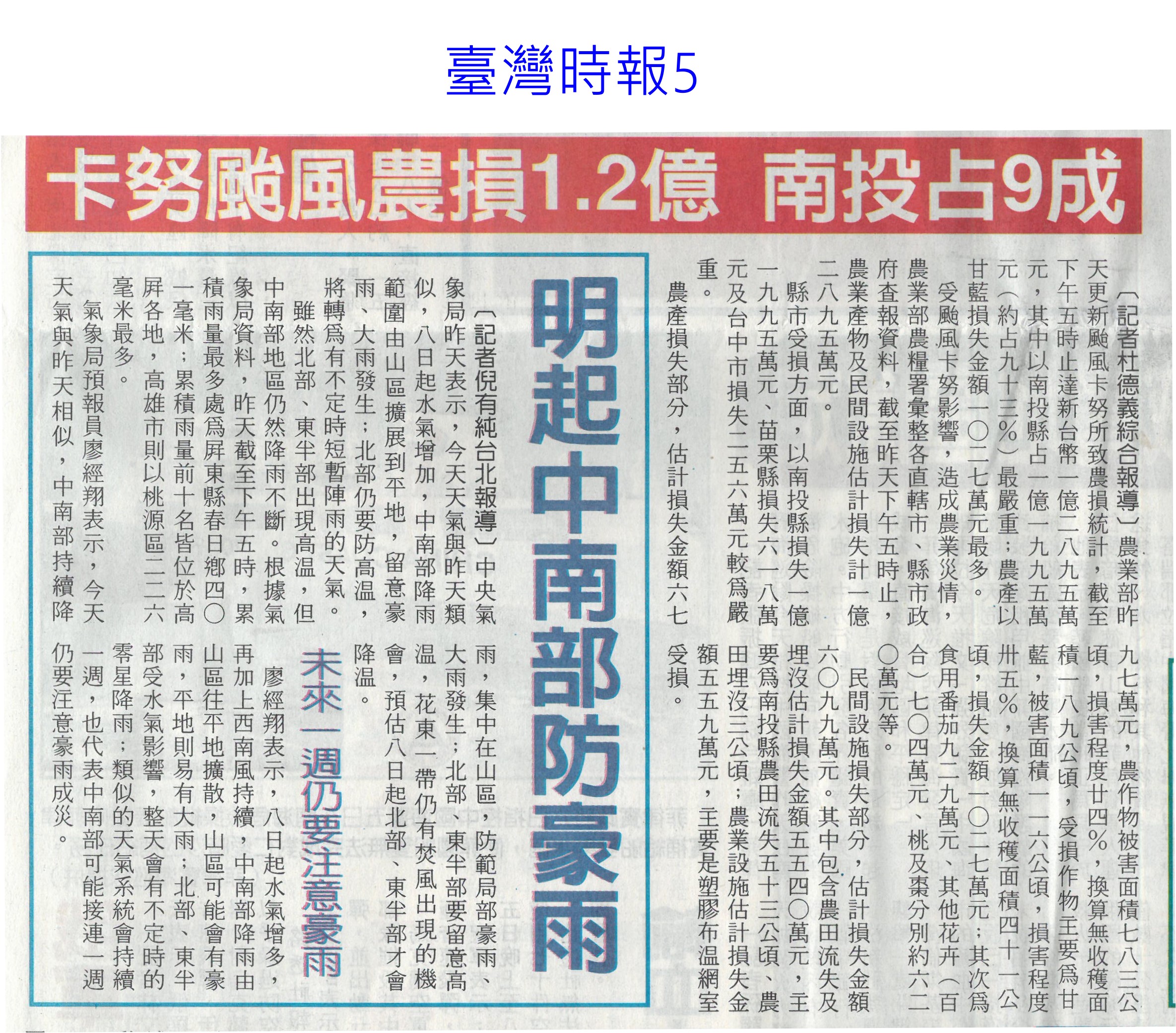 首頁萵苣觀新聞 萵苣觀新聞 排序 發布日期 更新日期 序號 發布日期 標題 1101. 112/08/17 嘉縣國本學堂 助小農創新提升競爭力(中國時報A9) 1102. 112/08/14 印尼農業畜牧業移工 最快9月可引進來台(中國時報A4) 1103. 112/08/14 農藥10年減半 納健康與環境評估(自由時報A9) 1104. 112/08/14 卡努甩尾 全台農損超過2億(民眾日報2) 1105. 112/08/14 雲林產地菜價飆漲 復耕後可望回穩(中國時報A8) 1106. 112/08/14 農局開設農村再生系列工作坊(台灣新生報8) 1107. 112/08/10 台美農貿逆差逾千億 再攀新高(聯合報A5) 1108. 112/08/08 雨水挹注曾文水庫蓄水破5成(臺灣時報19) 1109. 112/08/08 卡努解渴 嘉義水情轉正常(臺灣時報18) 1110. 112/08/08 曾文水庫蓄水率重回5成(自由時報A2) 1111. 112/08/08 大陸妹狂漲 每公斤批發90元(中華日報B8) 1112. 112/08/08 曾文水庫蓄水逾52% 嘉南平原解除限水(中國時報A8) 1113. 112/08/07 菜價再漲逾一成 最快明回穩(臺灣時報1) 1114. 112/08/07 改善5道路 東山咖啡道路升級(自由時報A13) 1115. 112/08/07 2天降雨300毫米 曾文水庫蓄水率回到4成(中國時報A9) 1116. 112/08/07 貴!四季豆 牛番茄 1斤破百元(聯合報B1) 1117. 112/08/07 卡努颱風農損1.2億 南投占9成(臺灣時報5) 1118. 112/08/04 陳吉仲赴美 推介臺灣農水產品(民眾日報6) 1119. 112/08/04 農業部臺南農改場 畜試所揭牌(台灣新生報6) 1120. 112/08/03 砍掉重練 農業部要做厚生的靠山(中國時報A10) 第 56/142 頁,共 2828 筆上一頁到第123456789101112131415161718192021222324252627282930313233343536373839404142434445464748495051525354555657585960616263646566676869707172737475767778798081828384858687888990919293949596979899100101102103104105106107108109110111112113114115116117118119120121122123124125126127128129130131132133134135136137138139140141142頁下一頁每頁103070筆資料