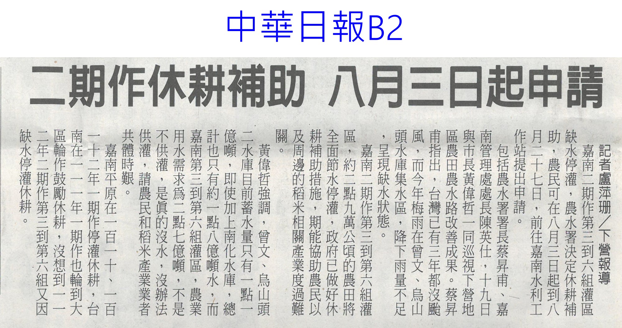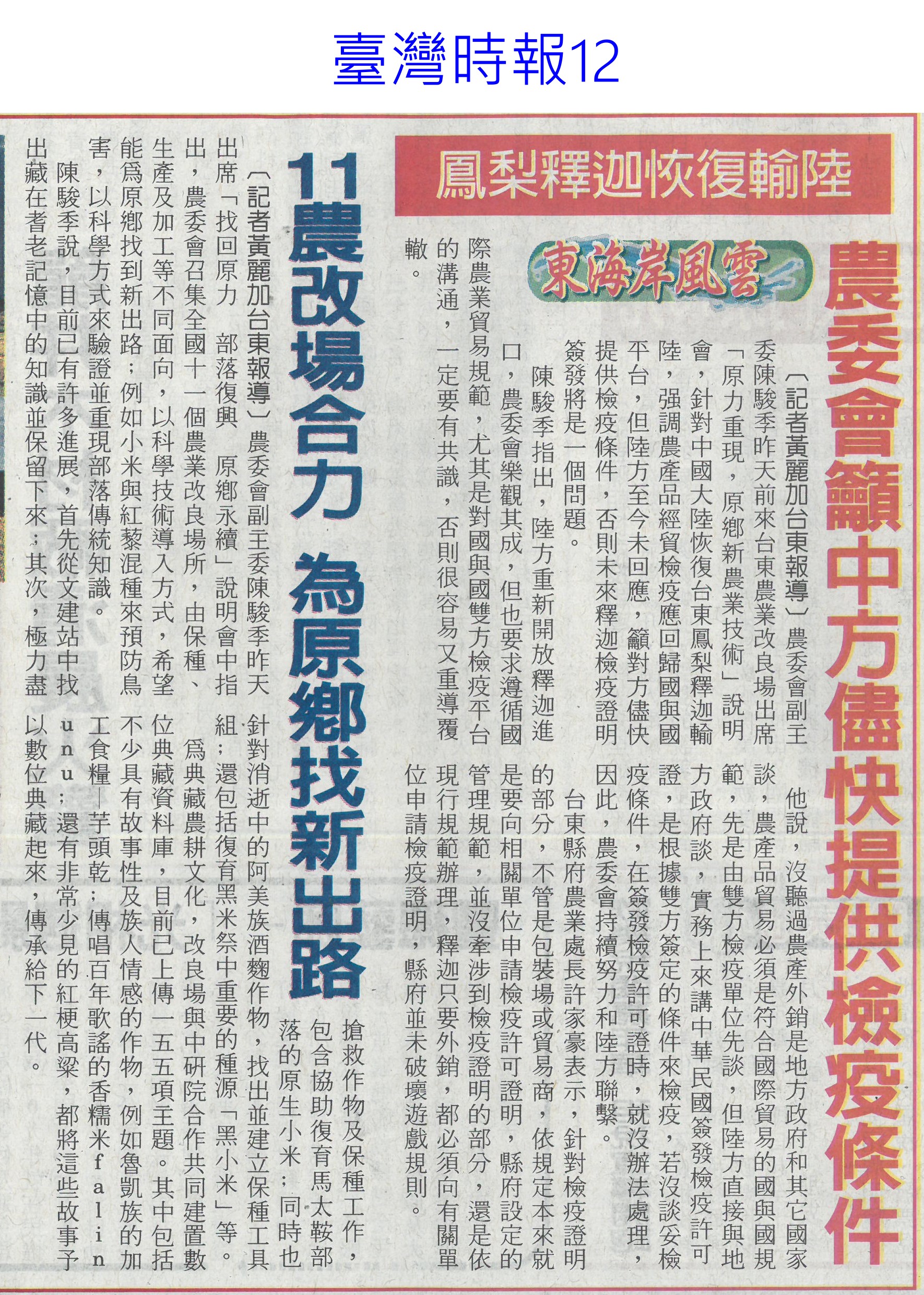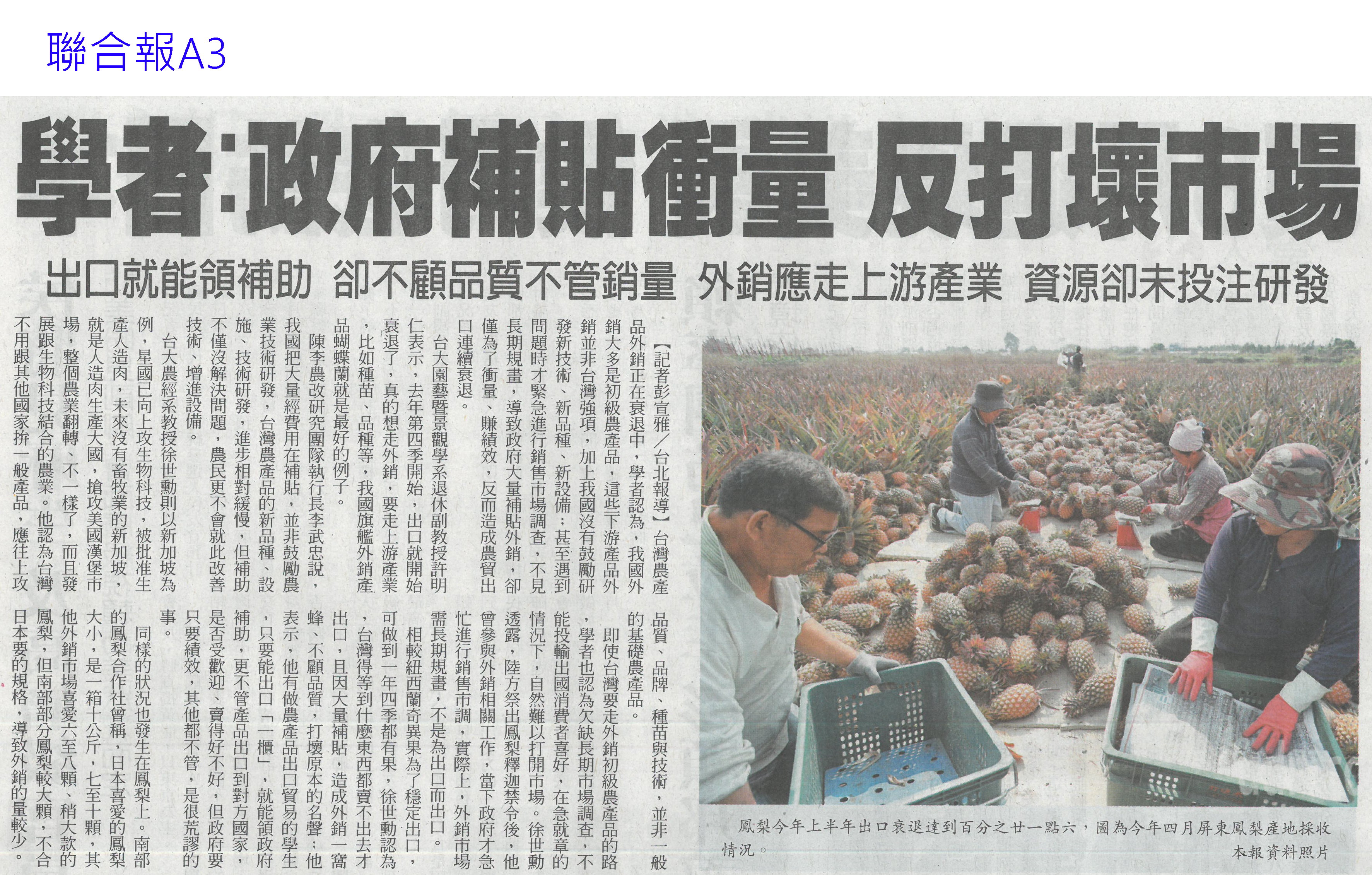 首頁萵苣觀新聞 萵苣觀新聞 排序 發布日期 更新日期 序號 發布日期 標題 1141. 112/07/20 二期作休耕補助 八月三日起申請(中華日報B2) 1142. 112/07/20 嘉南30年大旱 白河水庫仍維持供灌(中國時報A9) 1143. 112/07/19 學者:政府補貼衝量 反打壞市場(聯合報A3) 1144. 112/07/19 外銷消退農民有感 盼與陸洽談(聯合報A3) 1145. 112/07/19 我農產外銷量直直落(聯合報A1) 1146. 112/07/19 大遠百夏日物產展 秀農漁食力(中華日報B1) 1147. 112/07/14 畜牧沼渣循環經濟 助力有善農業(聯合報B2) 1148. 112/07/14 臺南優質農特產盡在 南得極品(中華日報B1) 1149. 112/07/14 嘉縣蓋蓄水池留住湧泉水源 灌溉百工頃果園(中國時報A9) 1150. 112/07/03 棄農種電 全台糧食生產拉警報(中國時報A1) 1151. 112/06/30 農業移工增至1.2萬人(中華日報A1) 1152. 112/06/30 雲溉肥製程升級 明年上市(聯合報B2) 1153. 112/06/29 11農改場合力 為原鄉找新出路(臺灣時報12) 1154. 112/06/21 80學者連署 反對強推農地種電(中國時報A8) 1155. 112/06/19 嘉義2水庫進帳1200萬噸 夏季水夠用(自由時報A14) 1156. 112/06/19 臺南優質物產 遠百竹北八樓登場(民眾日報8) 1157. 112/06/19 端節蔬果供應充裕 價格親民合理(民眾日報2) 1158. 112/06/17 食育力調查 蟬聯全國第一(中華日報B2) 1159. 112/06/17 臺灣作物諾亞方舟 保存7.5萬品種(自由時報A11) 1160. 112/06/17 台南新食刻 展優質農特產(中華日報B8) 第 58/142 頁,共 2828 筆上一頁到第123456789101112131415161718192021222324252627282930313233343536373839404142434445464748495051525354555657585960616263646566676869707172737475767778798081828384858687888990919293949596979899100101102103104105106107108109110111112113114115116117118119120121122123124125126127128129130131132133134135136137138139140141142頁下一頁每頁103070筆資料