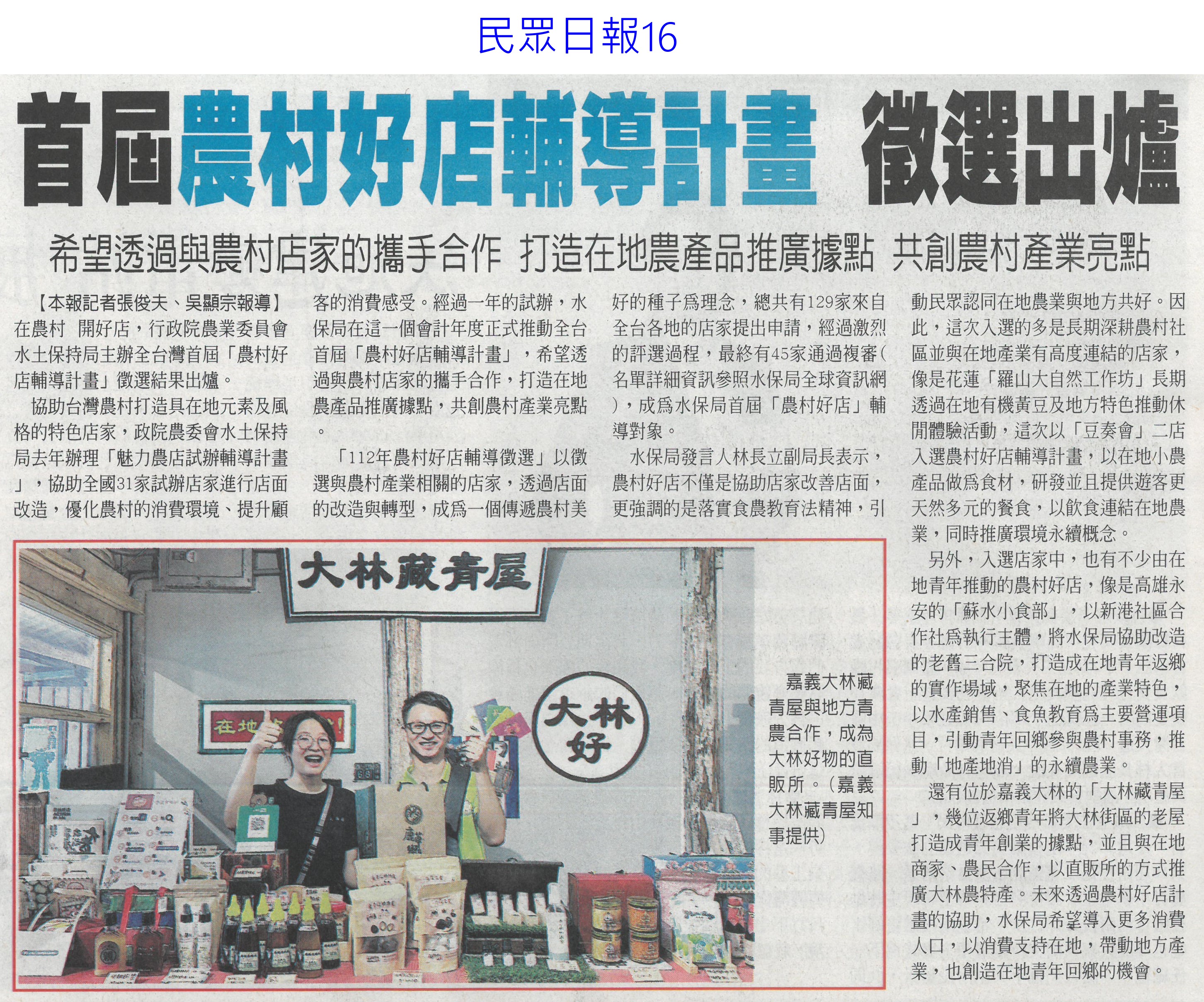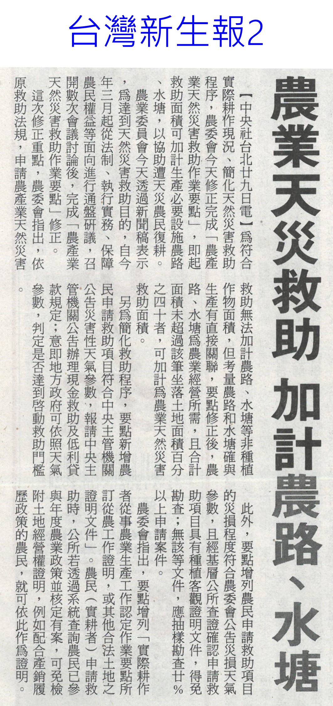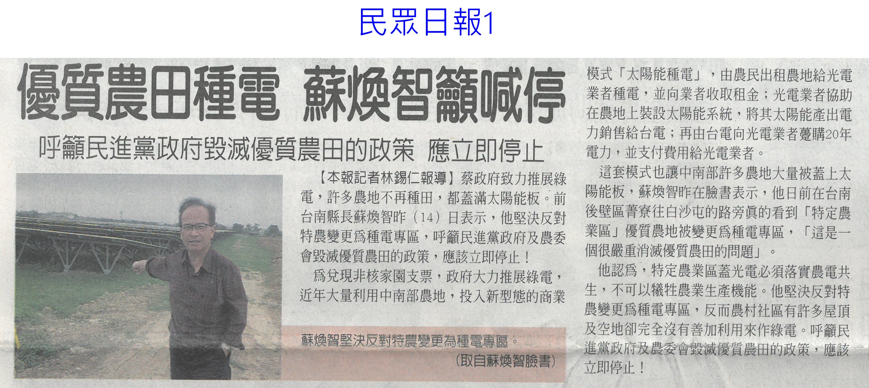 首頁萵苣觀新聞 萵苣觀新聞 排序 發布日期 更新日期 序號 發布日期 標題 1181. 112/06/05 農民:若收入穩定 願轉型農店共存(聯合報B2) 1182. 112/06/02 台南農遊時令小旅行漸成型(中華日報B8) 1183. 112/06/02 雲林農損勘災有時差 縣府籲開放APP申報(中國時報A9) 1184. 112/06/02 農業天災救助 加計農路水塘(台灣新生報2) 1185. 112/06/02 曾文水庫放水轉存 蓄水率跌破7%(中國時報A8) 1186. 112/05/30 瑪娃進逼!菠菜價格暴漲115元 韭菜黃漲20元 1187. 112/05/23 介紹蔬果病害 興大植病展超熱門(民眾日報14) 1188. 112/05/23 519暴雨正中水庫 曾文 南化持續進帳(中國時報A8) 1189. 112/05/23 農運35周年 陳吉仲:迎向台灣農業新起點(自由時報A12) 1190. 112/05/23 升格農業部 陳吉仲:加大照顧農漁民力道(自由時報A11) 1191. 112/05/23 極端氣候恐空梅?南台苦等甘霖(自由時報A9) 1192. 112/05/23 首屆農村好店輔導計畫 徵選出爐(民眾日報19) 1193. 112/05/23 水庫探底 南市府拚免分區供水(中國時報A9) 1194. 112/05/22 [生活] 發酵食物有助健康 5吃法外食族必知 1195. 112/05/18 發酵食物有助健康 營養師親授2居家簡易料理!5吃法外食族必知 1196. 112/05/16 台南農電78處荒廢 挨批行政效率差(聯合報B1) 1197. 112/05/16 優質農田種電 蘇煥智籲喊停(民眾日報1) 1198. 112/05/15 七股溪南休閒農業區發展協會成立(中華日報B3) 1199. 112/05/10 農改場瓜果嘉年華 強勢回歸(自由時報A11) 1200. 112/05/10 鳥害苦不堪言 農民盼生態給付(自由時報A10) 第 60/142 頁,共 2828 筆上一頁到第123456789101112131415161718192021222324252627282930313233343536373839404142434445464748495051525354555657585960616263646566676869707172737475767778798081828384858687888990919293949596979899100101102103104105106107108109110111112113114115116117118119120121122123124125126127128129130131132133134135136137138139140141142頁下一頁每頁103070筆資料