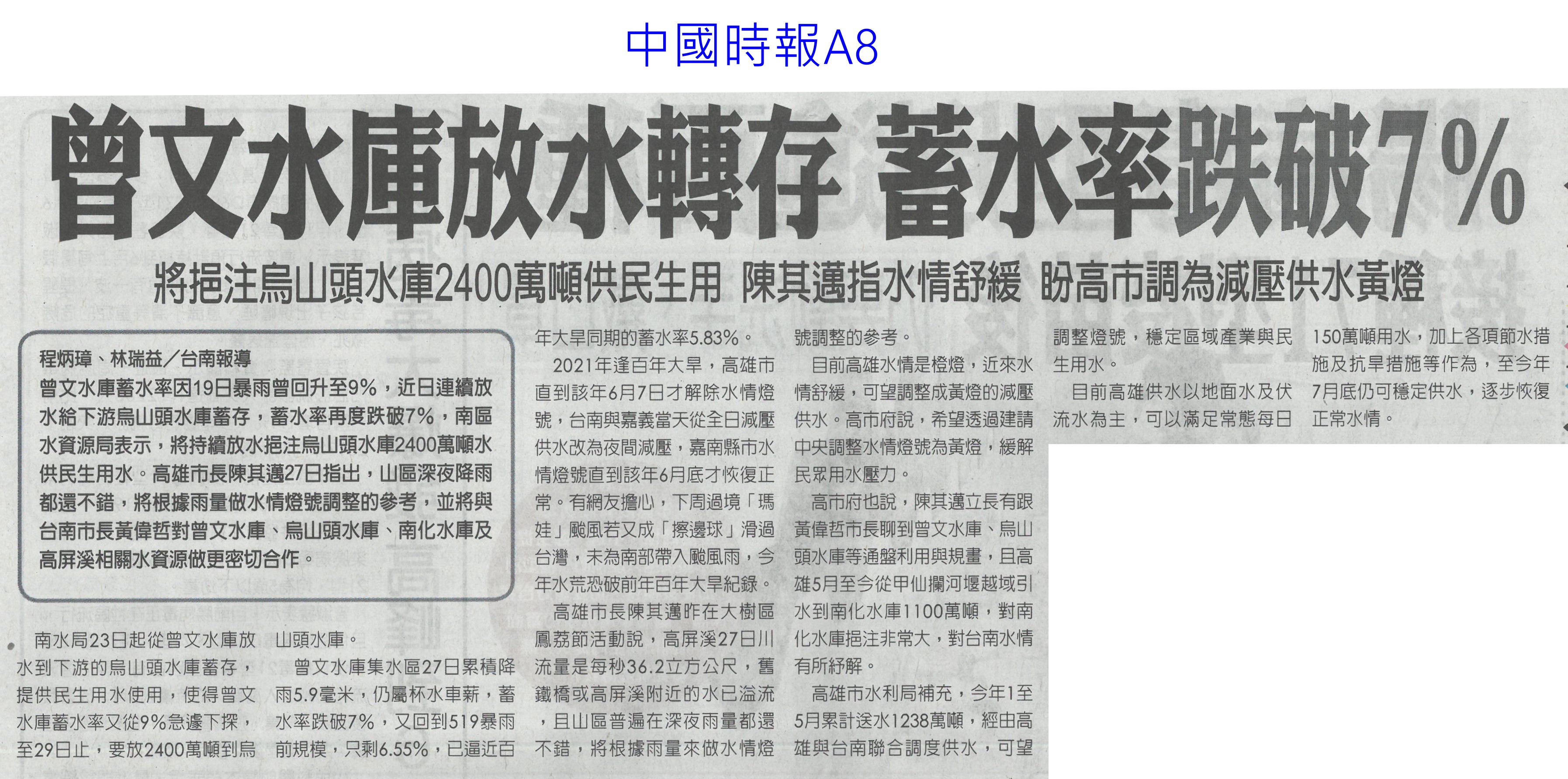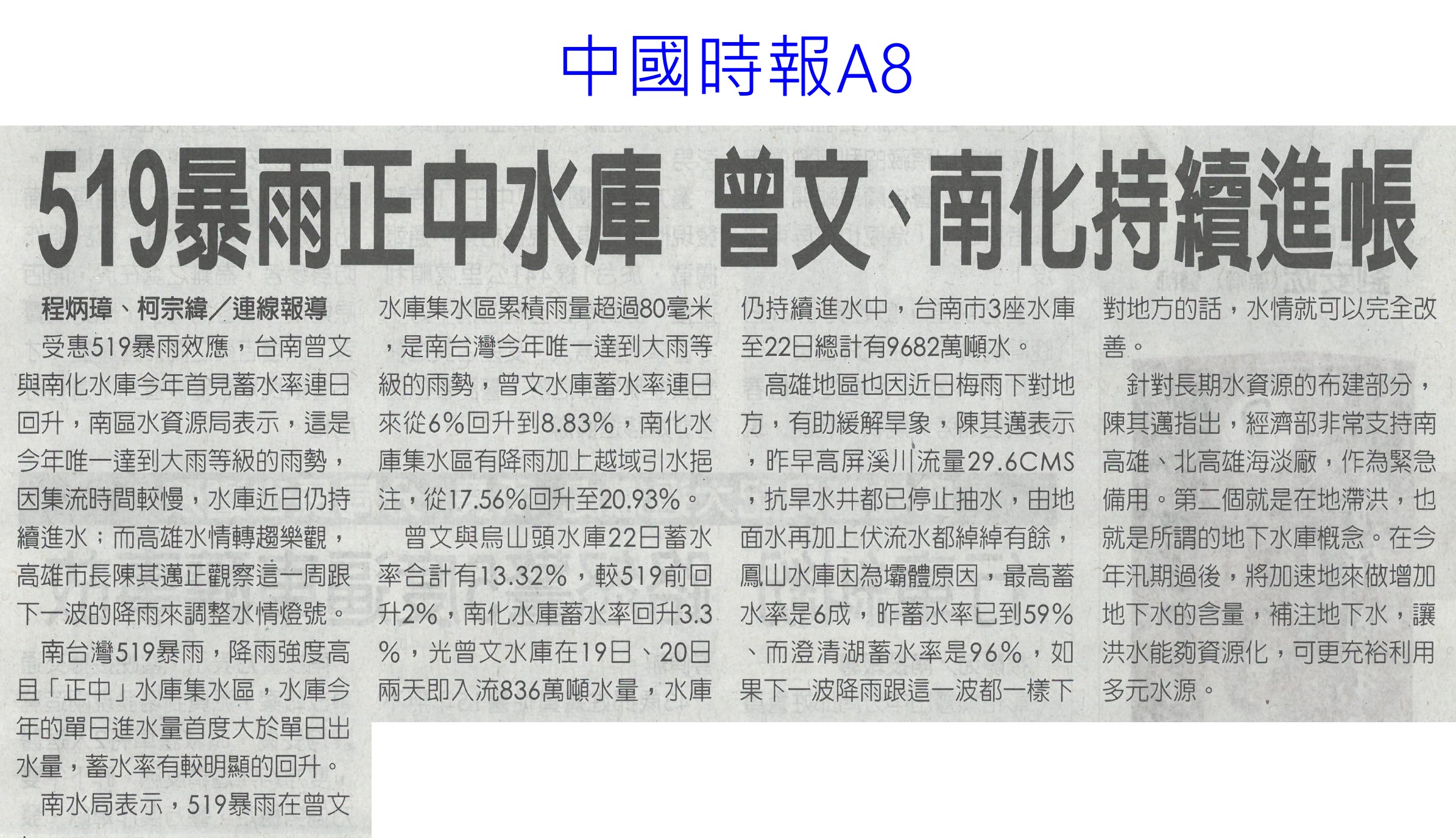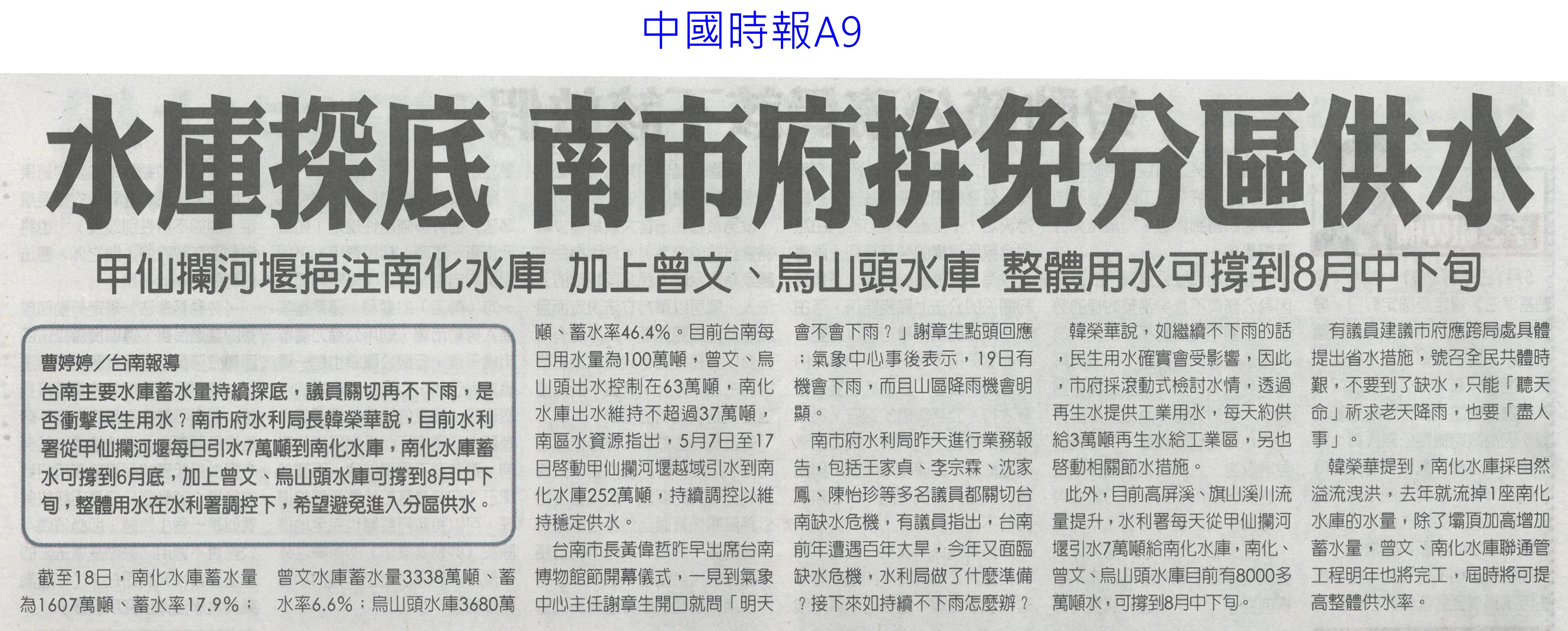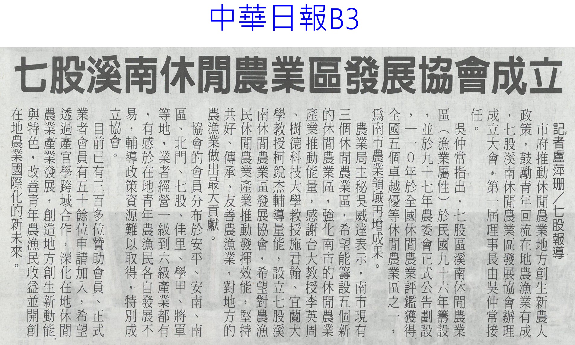 首頁萵苣觀新聞 萵苣觀新聞 排序 發布日期 更新日期 序號 發布日期 標題 1181. 112/06/05 農民:若收入穩定 願轉型農店共存(聯合報B2) 1182. 112/06/02 台南農遊時令小旅行漸成型(中華日報B8) 1183. 112/06/02 雲林農損勘災有時差 縣府籲開放APP申報(中國時報A9) 1184. 112/06/02 農業天災救助 加計農路水塘(台灣新生報2) 1185. 112/06/02 曾文水庫放水轉存 蓄水率跌破7%(中國時報A8) 1186. 112/05/30 瑪娃進逼!菠菜價格暴漲115元 韭菜黃漲20元 1187. 112/05/23 介紹蔬果病害 興大植病展超熱門(民眾日報14) 1188. 112/05/23 519暴雨正中水庫 曾文 南化持續進帳(中國時報A8) 1189. 112/05/23 農運35周年 陳吉仲:迎向台灣農業新起點(自由時報A12) 1190. 112/05/23 升格農業部 陳吉仲:加大照顧農漁民力道(自由時報A11) 1191. 112/05/23 極端氣候恐空梅?南台苦等甘霖(自由時報A9) 1192. 112/05/23 首屆農村好店輔導計畫 徵選出爐(民眾日報19) 1193. 112/05/23 水庫探底 南市府拚免分區供水(中國時報A9) 1194. 112/05/22 [生活] 發酵食物有助健康 5吃法外食族必知 1195. 112/05/18 發酵食物有助健康 營養師親授2居家簡易料理!5吃法外食族必知 1196. 112/05/16 台南農電78處荒廢 挨批行政效率差(聯合報B1) 1197. 112/05/16 優質農田種電 蘇煥智籲喊停(民眾日報1) 1198. 112/05/15 七股溪南休閒農業區發展協會成立(中華日報B3) 1199. 112/05/10 農改場瓜果嘉年華 強勢回歸(自由時報A11) 1200. 112/05/10 鳥害苦不堪言 農民盼生態給付(自由時報A10) 第 60/142 頁,共 2828 筆上一頁到第123456789101112131415161718192021222324252627282930313233343536373839404142434445464748495051525354555657585960616263646566676869707172737475767778798081828384858687888990919293949596979899100101102103104105106107108109110111112113114115116117118119120121122123124125126127128129130131132133134135136137138139140141142頁下一頁每頁103070筆資料