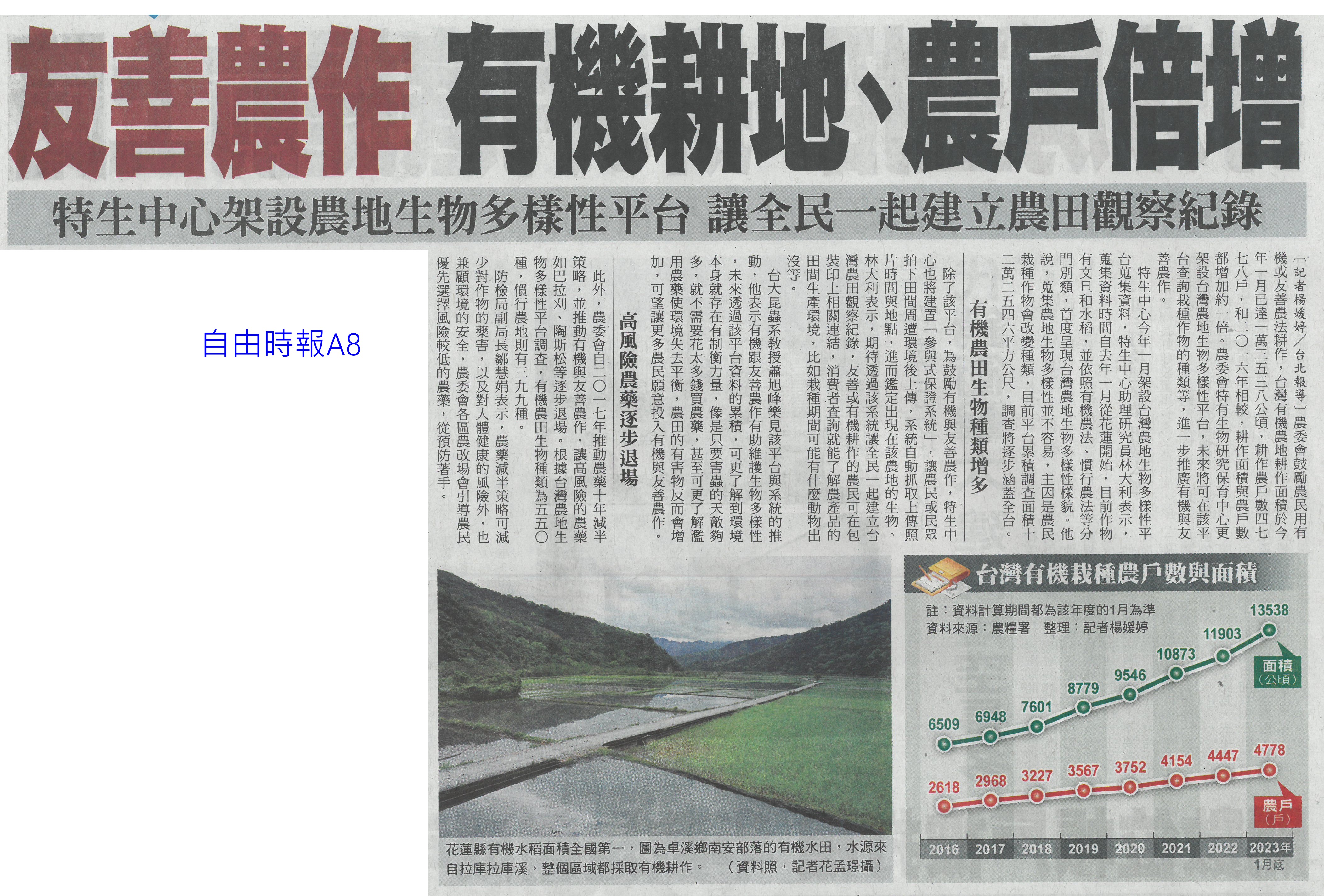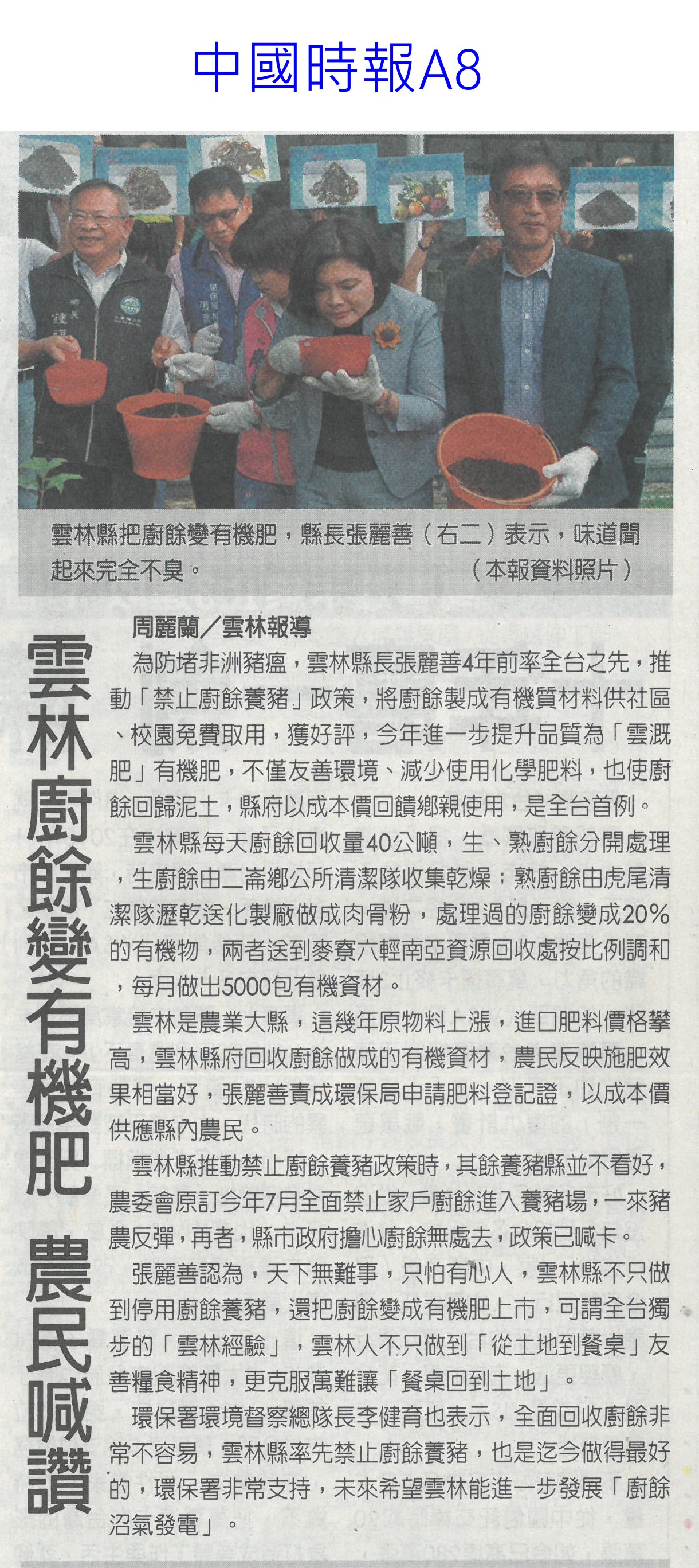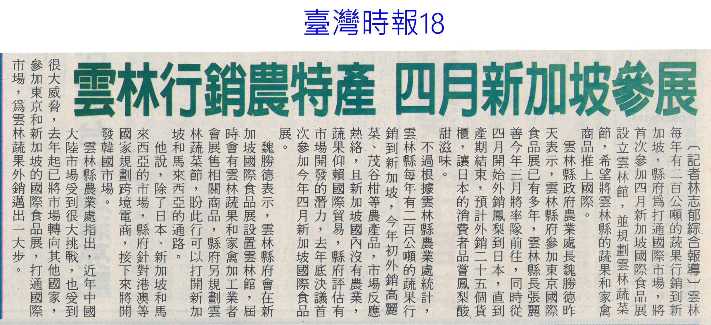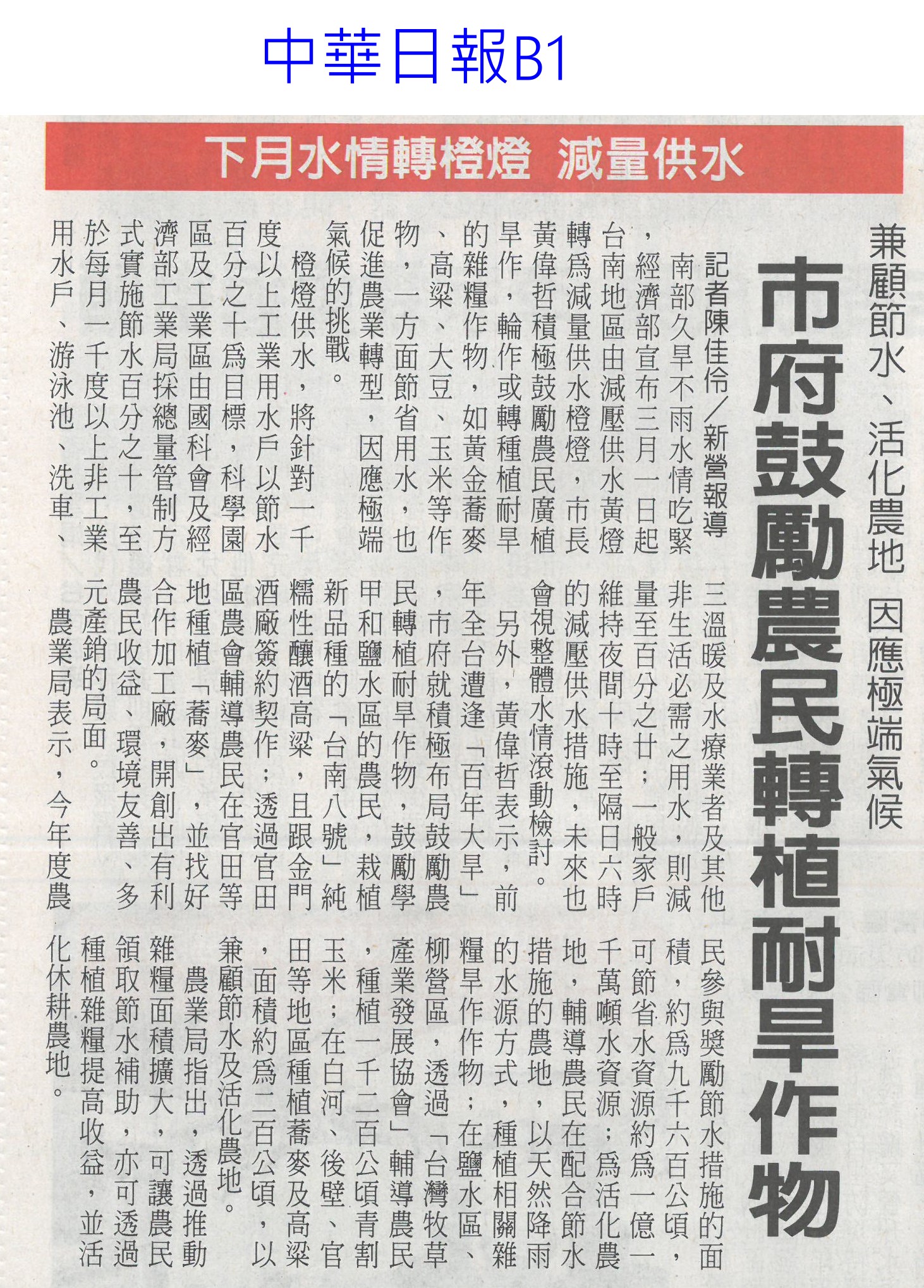 首頁萵苣觀新聞 萵苣觀新聞 排序 發布日期 更新日期 序號 發布日期 標題 1281. 112/03/01 陳吉仲視察南台灣嚴峻水情(台灣新生報2) 1282. 112/03/01 台南拚春季雜作灌溉 農水署擬史上最難計畫(中國時報A9) 1283. 112/03/01 新化果菜市場大型冷藏庫2024年4月完工(中國時報A9) 1284. 112/03/01 友善農作 有機耕地 農戶倍增(自由時報A8) 1285. 112/03/01 六類蔬果農藥不合格率 高出平均值(自由時報A8) 1286. 112/02/24 雲林行銷農特產 四月新加坡參展(臺灣時報18) 1287. 112/02/22 百名農會高層連署 力挺植醫法(自由時報A10) 1288. 112/02/21 來嘉縣一日遊 探訪農村風情(臺灣時報18) 1289. 112/02/21 農村好物頒獎 為農村商品認證加值(民眾日報4) 1290. 112/02/21 雲林精緻農業建造集貨冷鏈(台灣新生報6) 1291. 112/02/21 市府鼓勵農民轉植耐旱作物(中華日報B1) 1292. 112/02/20 蔬果農藥超標 賣場超市都上榜(自由時報A9) 1293. 112/02/20 農漁產銷陸卡關 陸方研議解決(聯合報A3) 1294. 112/02/20 推動有機農業一條龍 雲林打造集貨廠及冷鏈(聯合報B2) 1295. 112/02/20 南台水情惡化 枯盼5月雨季(自由時報A6) 1296. 112/02/17 廚師轉行 善化青農陳冠彣勒從農(中華日報B3) 1297. 112/02/17 春季雜作停灌補償 下周公告標準(中華日報B2) 1298. 112/02/15 上架農村好物產品 臺南道之驛興建中(台灣新生報8) 1299. 112/02/15 雲林廚餘變有機肥 農民喊讚(中國時報A8) 1300. 112/02/15 強化抗旱 南高屏共同治理水資源(自由時報A13) 第 65/142 頁,共 2828 筆上一頁到第123456789101112131415161718192021222324252627282930313233343536373839404142434445464748495051525354555657585960616263646566676869707172737475767778798081828384858687888990919293949596979899100101102103104105106107108109110111112113114115116117118119120121122123124125126127128129130131132133134135136137138139140141142頁下一頁每頁103070筆資料
