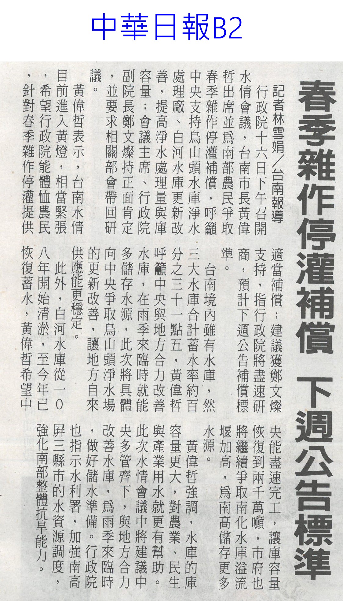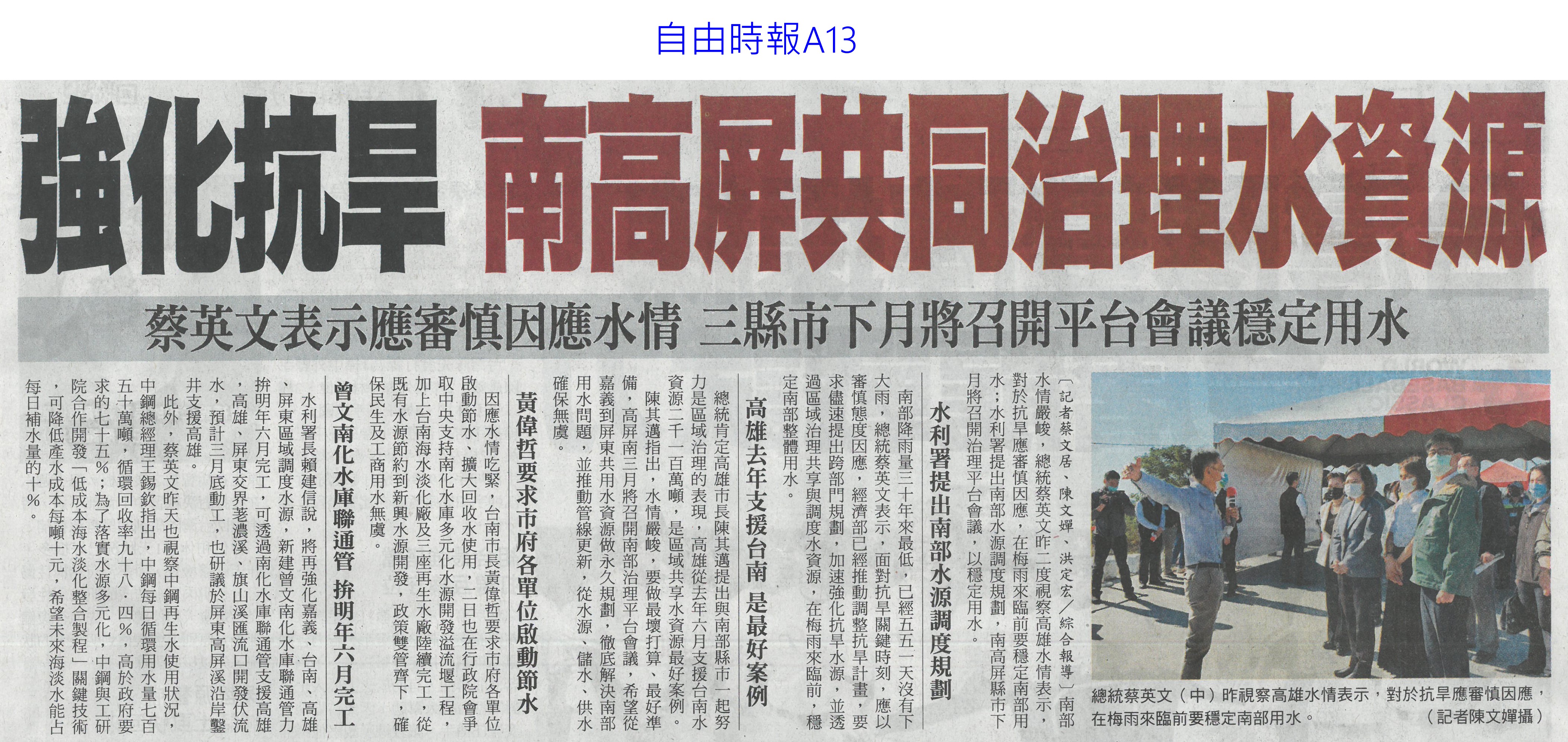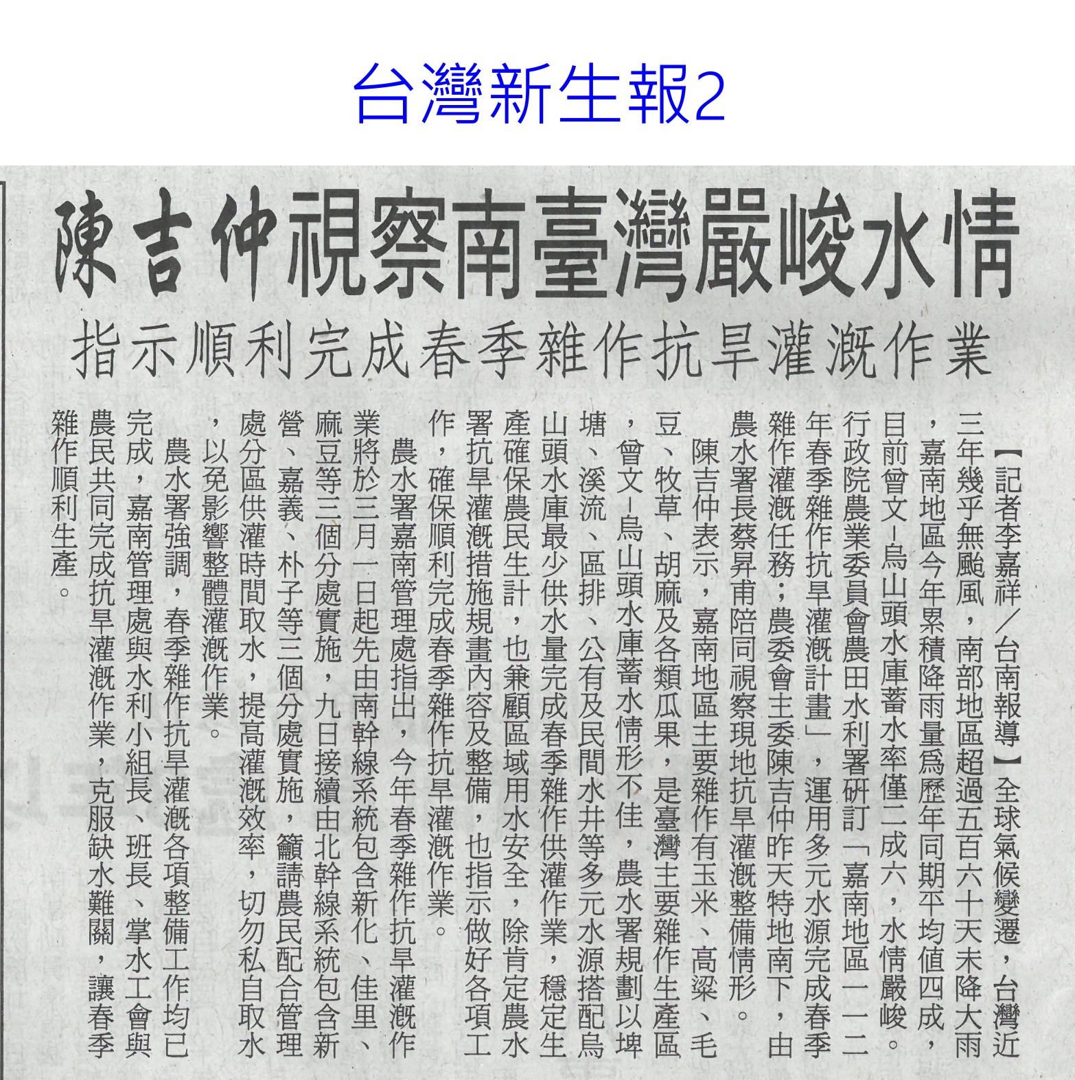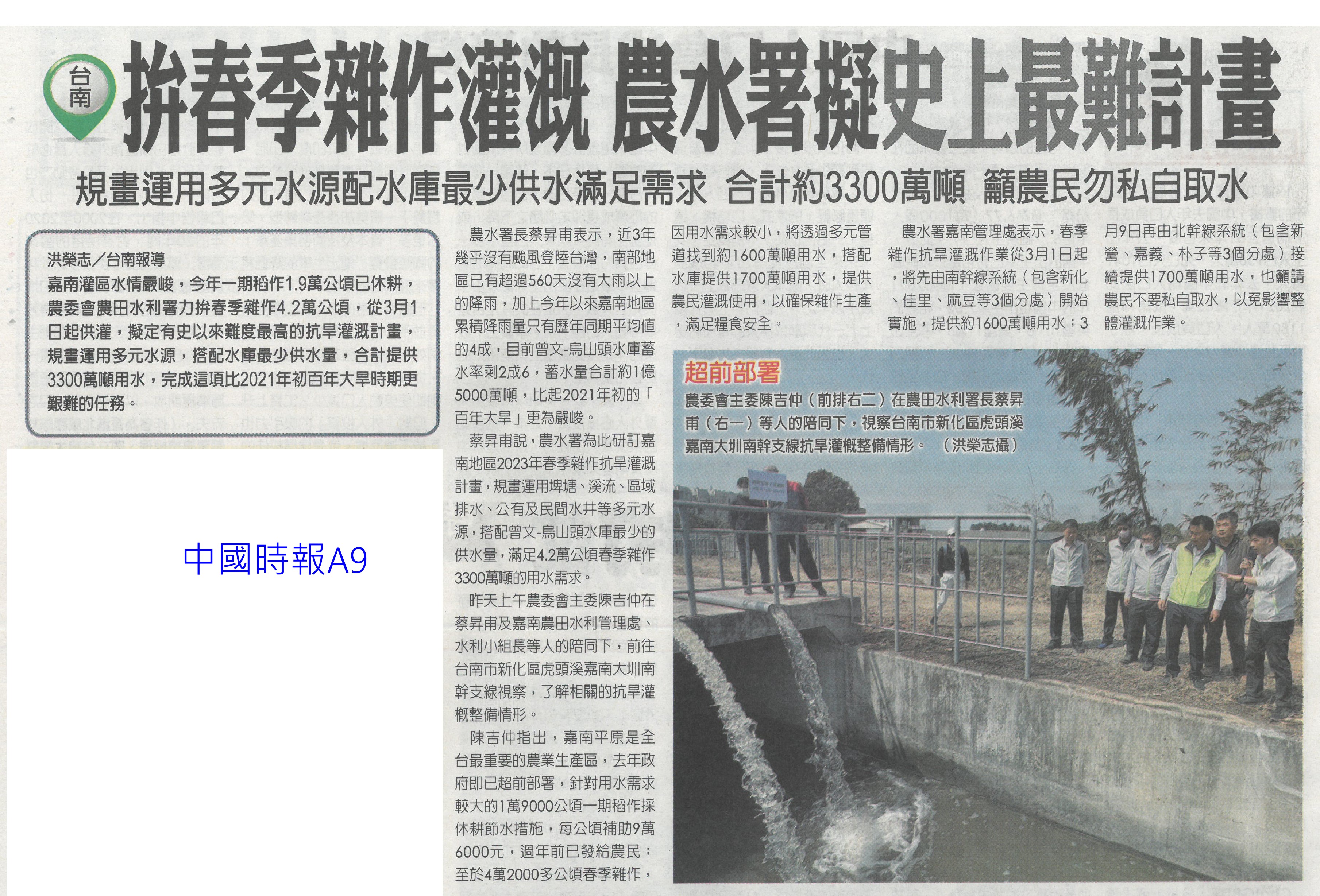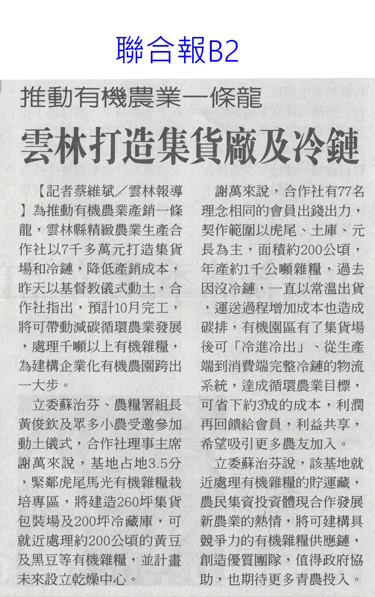 首頁萵苣觀新聞 萵苣觀新聞 排序 發布日期 更新日期 序號 發布日期 標題 1281. 112/03/01 陳吉仲視察南台灣嚴峻水情(台灣新生報2) 1282. 112/03/01 台南拚春季雜作灌溉 農水署擬史上最難計畫(中國時報A9) 1283. 112/03/01 新化果菜市場大型冷藏庫2024年4月完工(中國時報A9) 1284. 112/03/01 友善農作 有機耕地 農戶倍增(自由時報A8) 1285. 112/03/01 六類蔬果農藥不合格率 高出平均值(自由時報A8) 1286. 112/02/24 雲林行銷農特產 四月新加坡參展(臺灣時報18) 1287. 112/02/22 百名農會高層連署 力挺植醫法(自由時報A10) 1288. 112/02/21 來嘉縣一日遊 探訪農村風情(臺灣時報18) 1289. 112/02/21 農村好物頒獎 為農村商品認證加值(民眾日報4) 1290. 112/02/21 雲林精緻農業建造集貨冷鏈(台灣新生報6) 1291. 112/02/21 市府鼓勵農民轉植耐旱作物(中華日報B1) 1292. 112/02/20 蔬果農藥超標 賣場超市都上榜(自由時報A9) 1293. 112/02/20 農漁產銷陸卡關 陸方研議解決(聯合報A3) 1294. 112/02/20 推動有機農業一條龍 雲林打造集貨廠及冷鏈(聯合報B2) 1295. 112/02/20 南台水情惡化 枯盼5月雨季(自由時報A6) 1296. 112/02/17 廚師轉行 善化青農陳冠彣勒從農(中華日報B3) 1297. 112/02/17 春季雜作停灌補償 下周公告標準(中華日報B2) 1298. 112/02/15 上架農村好物產品 臺南道之驛興建中(台灣新生報8) 1299. 112/02/15 雲林廚餘變有機肥 農民喊讚(中國時報A8) 1300. 112/02/15 強化抗旱 南高屏共同治理水資源(自由時報A13) 第 65/142 頁,共 2828 筆上一頁到第123456789101112131415161718192021222324252627282930313233343536373839404142434445464748495051525354555657585960616263646566676869707172737475767778798081828384858687888990919293949596979899100101102103104105106107108109110111112113114115116117118119120121122123124125126127128129130131132133134135136137138139140141142頁下一頁每頁103070筆資料