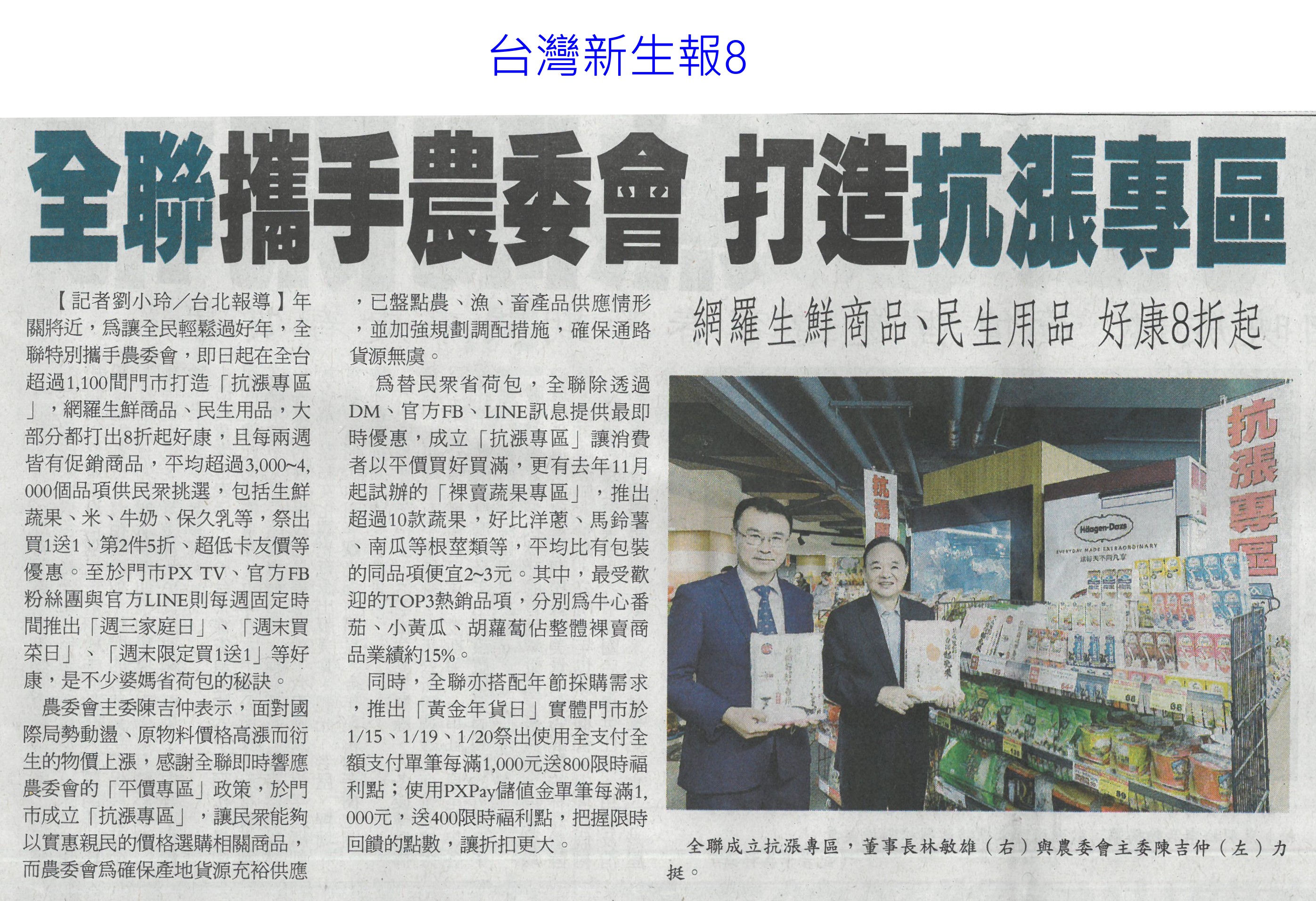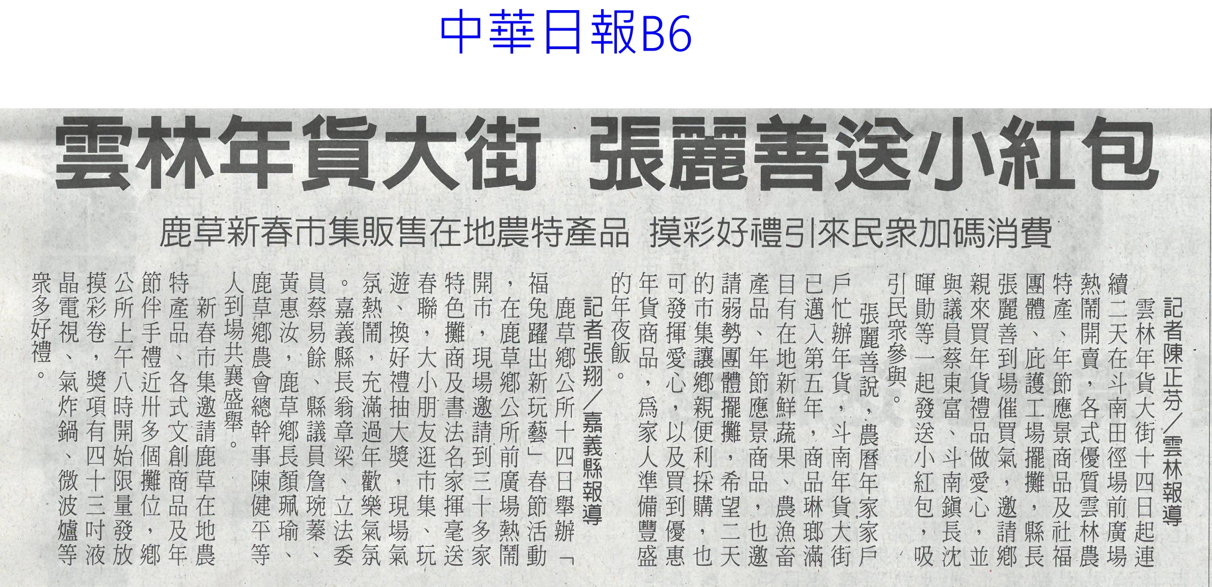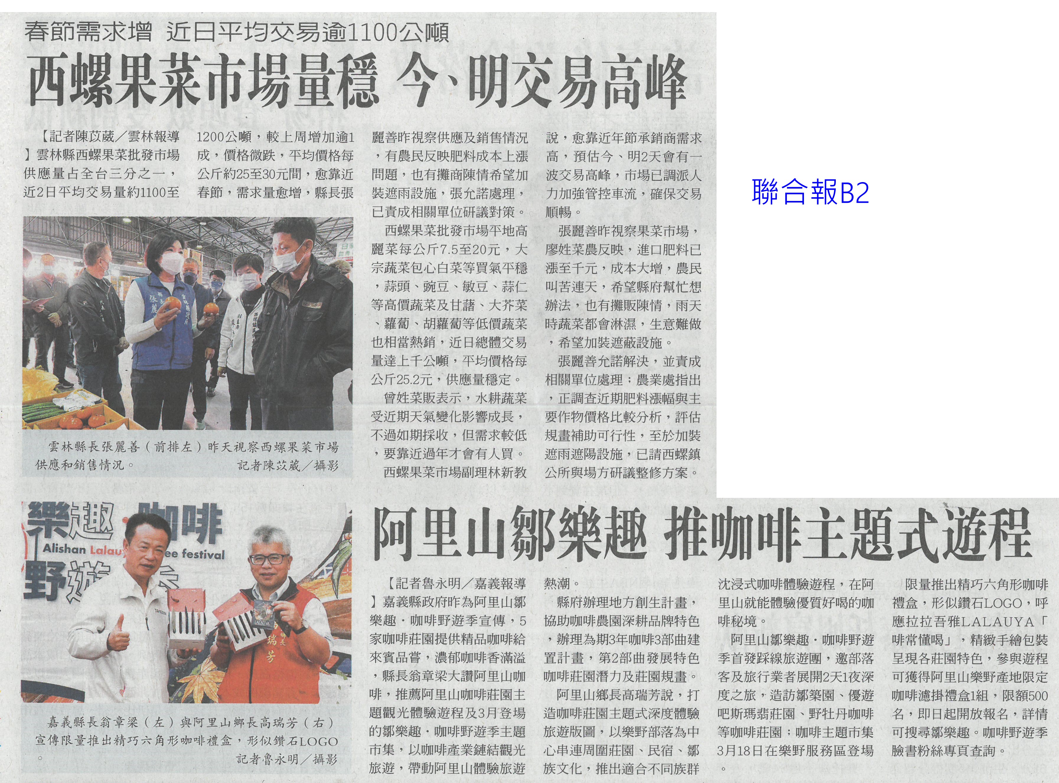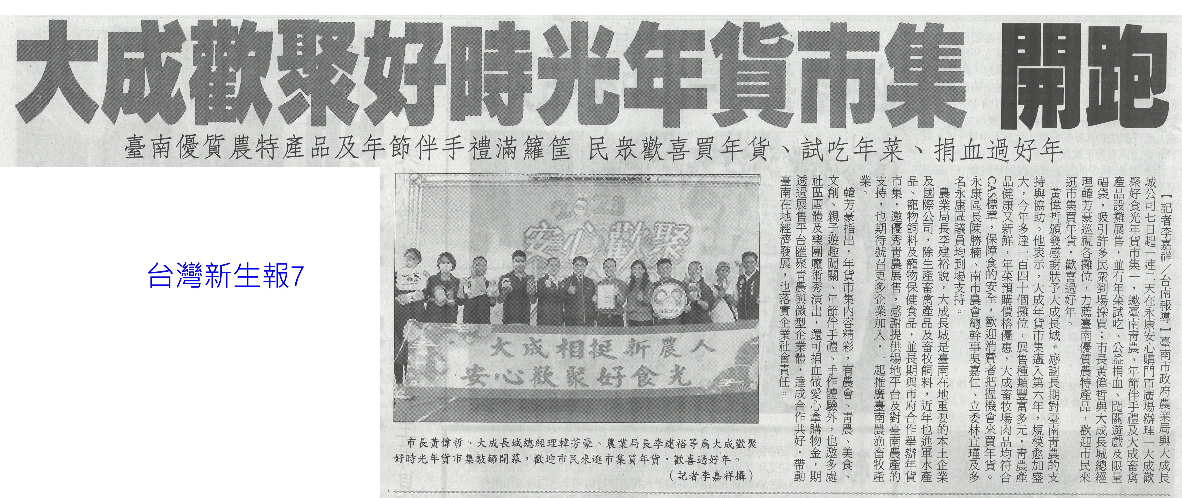 首頁萵苣觀新聞 萵苣觀新聞 排序 發布日期 更新日期 序號 發布日期 標題 1321. 112/02/01 南市尚好肥試種玉米筍 親子採收趣(民眾日報12) 1322. 112/02/01 寒流再次南下 農委會成立應變小組(民眾日報2) 1323. 112/01/18 西螺果菜市場量穩 今`明交易高峰(聯合報B2) 1324. 112/01/18 張麗善視察果菜市場供貨 拜早年(臺灣時報18) 1325. 112/01/18 穩定年前菜價 農糧署再增供應量(臺灣時報4) 1326. 112/01/18 老天不給力 曾文水庫3度人工增雨無效(自由時報A11) 1327. 112/01/18 春節供應 魚市增量 蔬果回穩(中華日報A3) 1328. 112/01/18 鋒面來了 南水局向老天多要點水(民眾日報3) 1329. 112/01/18 全聯攜手農委會 打造抗漲專區(台灣新生報8) 1330. 112/01/18 雲林年貨大街 張麗善送小紅包(中華日報B6) 1331. 112/01/13 抗通膨 農委會年推200萬個60元幸福餐盒(臺灣時報7) 1332. 112/01/13 抑制春節菜價 農委會:將增量供應(臺灣時報5) 1333. 112/01/13 農委會加強供貨 滿足年節採購需求(民眾日報2) 1334. 112/01/13 雲林良品康是美誠品上架(中華日報B6) 1335. 112/01/12 神農獎頒獎 蘇揆肯定卓越貢獻(民眾日報14) 1336. 112/01/12 農曆春節農產品 農委會:供應無虞(民眾日報4) 1337. 112/01/12 鼓勵使用雞糞加工肥料 農糧署補助加倍(臺灣時報9) 1338. 112/01/12 強化農產品溯源 大聲向混充說NO(民眾日報2) 1339. 112/01/12 大成歡聚好時光年貨市集 開跑(台灣新生報7) 1340. 112/01/12 大成年貨市集開跑 展售優質農特產(中華日報B3) 第 67/142 頁,共 2828 筆上一頁到第123456789101112131415161718192021222324252627282930313233343536373839404142434445464748495051525354555657585960616263646566676869707172737475767778798081828384858687888990919293949596979899100101102103104105106107108109110111112113114115116117118119120121122123124125126127128129130131132133134135136137138139140141142頁下一頁每頁103070筆資料