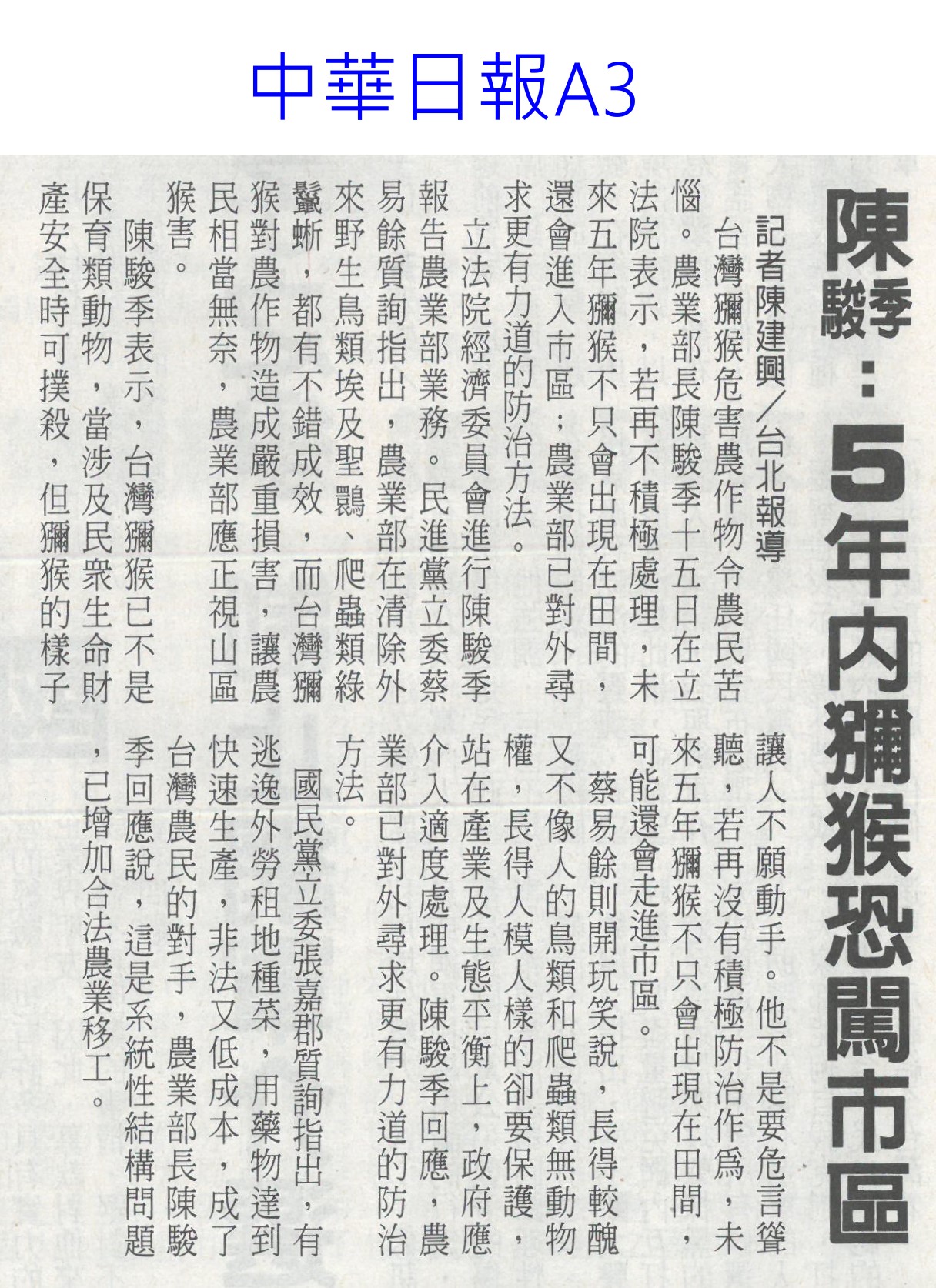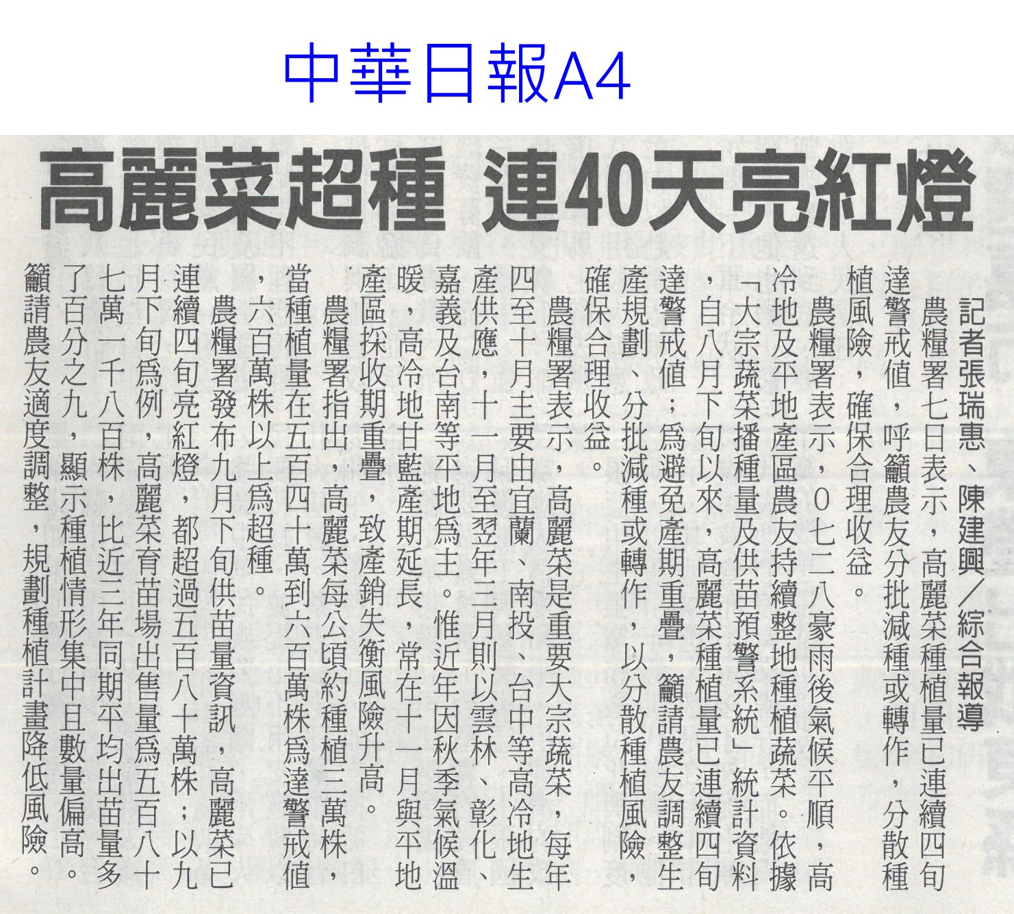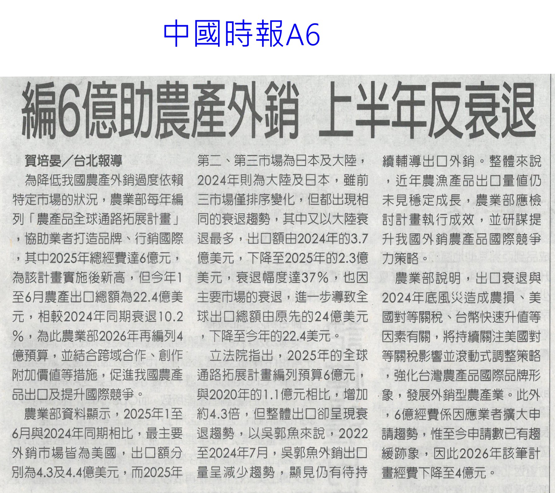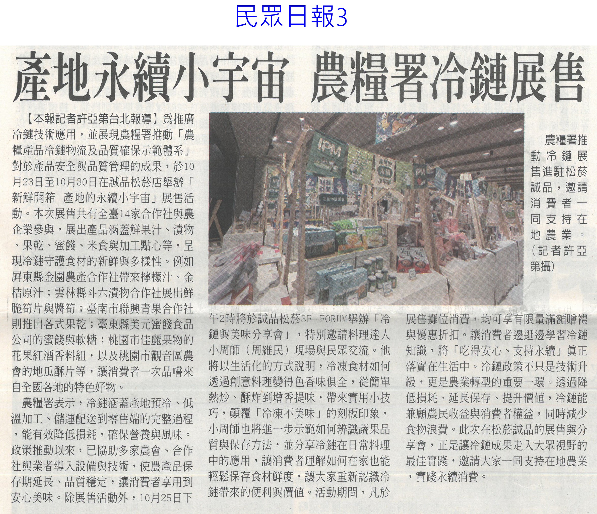 首頁萵苣觀新聞 萵苣觀新聞 排序 發布日期 更新日期 序號 發布日期 標題 141. 114/11/03 產地永續小宇宙 農糧署冷鏈展售(民眾日報3) 142. 114/10/28 黃偉哲首訪日本平戶市 行銷農特產(中華日報B2) 143. 114/10/21 陳駿季:5年內獼猴恐闖市區(中華日報A3) 144. 114/10/21 農民職災保險就醫津貼給付水準 提高(民眾日報6) 145. 114/10/21 植物診療師國考 老闆激勵過關加薪(自由時報A9) 146. 114/10/21 農剩餘資材利用 減碳聯盟合作啟動(民眾日報4) 147. 114/10/21 農郵精選集實體市集及線上登場(台灣新生報8) 148. 114/10/16 農民職災保險就醫津貼給付水準 提高(民眾日報6) 149. 114/10/13 甘藍連四旬超種亮紅燈 農糧署示警(臺灣時報8) 150. 114/10/13 高麗菜超種 連40天亮紅燈(中華日報A4) 151. 114/10/07 中秋健康烤肉 玉米筍爽脆解膩(中華日報B3) 152. 114/10/07 編6億助農產外銷 上半年反衰退(中國時報A6) 153. 114/10/07 雲林良品伴手禮 跨域合作(台灣新生報7) 154. 114/10/01 農業部:持續支持3章1 Q國產食材(臺灣時報4) 155. 114/10/01 中秋蔬菜供應 量足價穩(民眾日報6) 156. 114/10/01 農糧署:秋節前菜價平穩 供應充裕(中華日報A4) 157. 114/10/01 石壁觀光轉型 升格休閒農業區(聯合報B2) 158. 114/10/01 南得極品展售會 送禮兩相宜(中華日報B8) 159. 114/10/01 仁德小農市集 買在地做公益(中華日報B3) 160. 114/10/01 大內九月雪活動浪漫登場(台灣新生報6) 第 8/141 頁,共 2807 筆上一頁到第123456789101112131415161718192021222324252627282930313233343536373839404142434445464748495051525354555657585960616263646566676869707172737475767778798081828384858687888990919293949596979899100101102103104105106107108109110111112113114115116117118119120121122123124125126127128129130131132133134135136137138139140141頁下一頁每頁103070筆資料