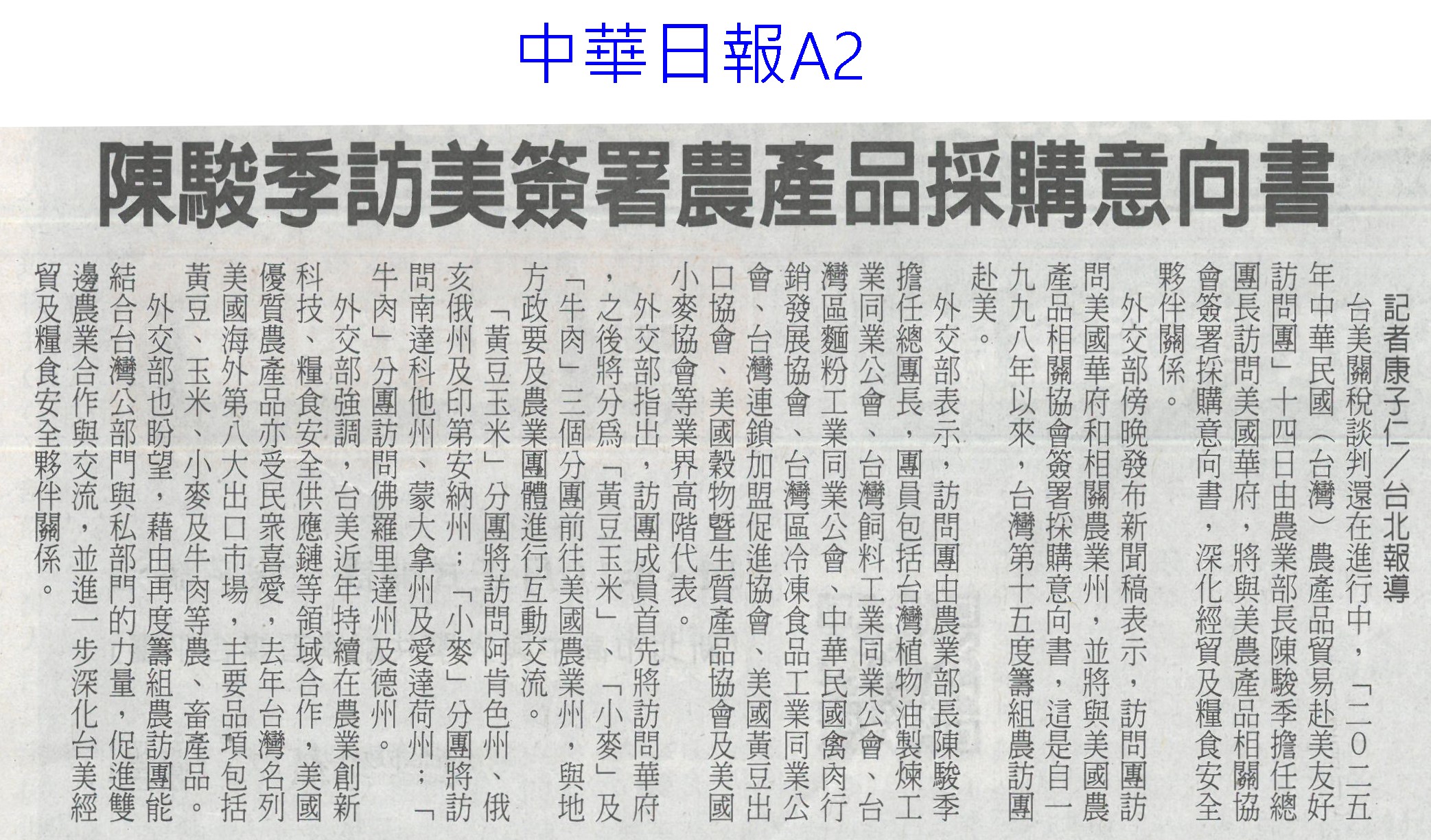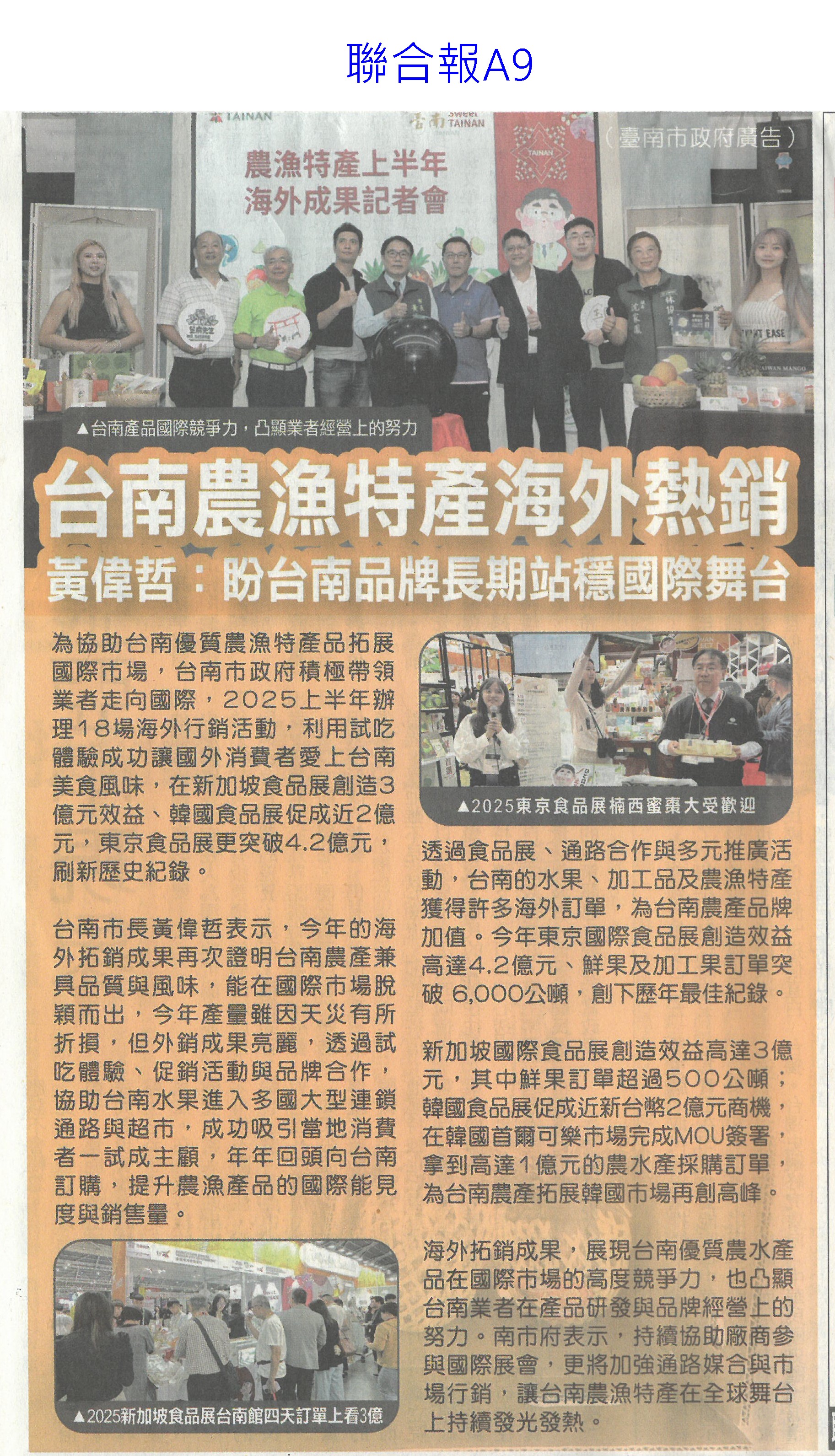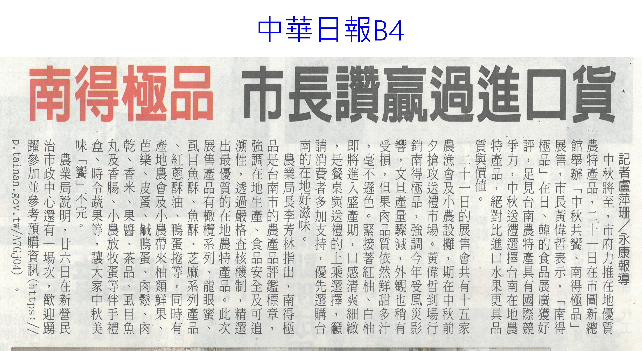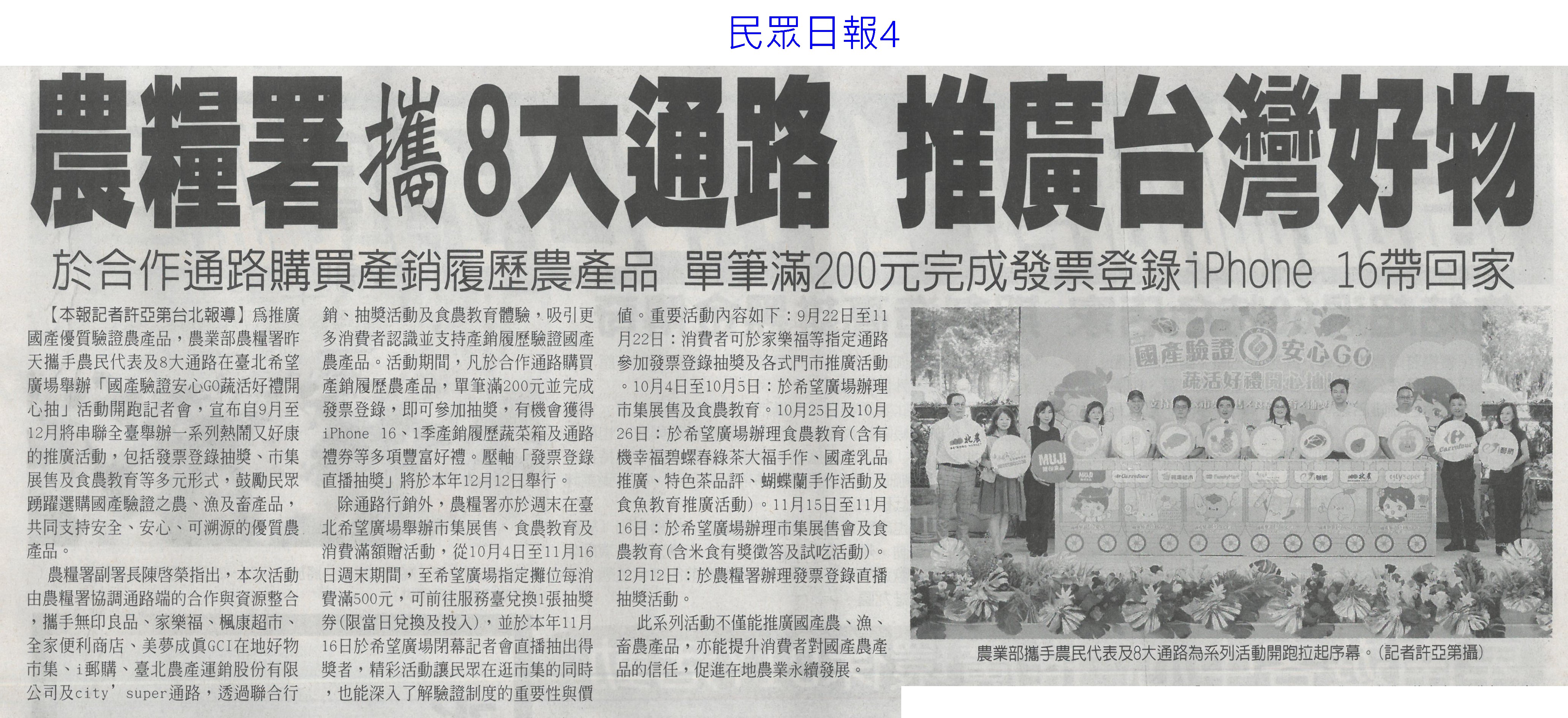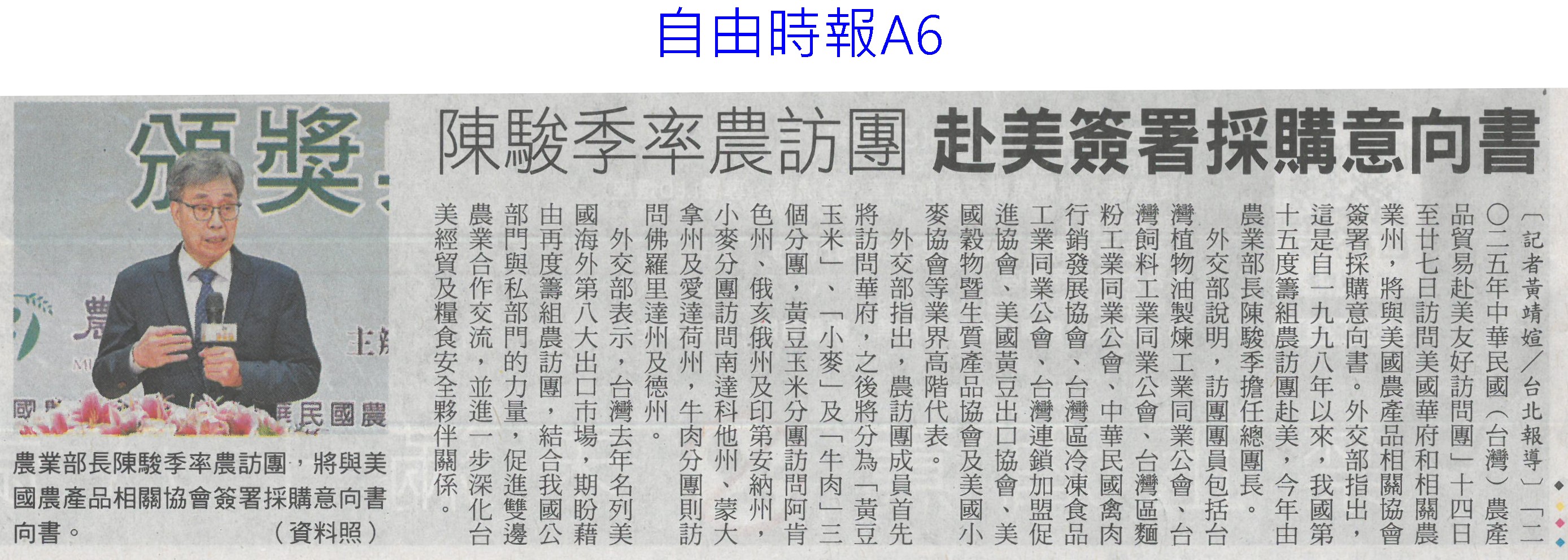 首頁萵苣觀新聞 萵苣觀新聞 排序 發布日期 更新日期 序號 發布日期 標題 161. 114/10/01 古坑促進區 打造有機示範基地(聯合報B2) 162. 114/10/01 美農業部次長訪台 宣布開放鳳梨輸美(聯合報A2) 163. 114/10/01 中秋選好禮 嘉義優鮮聯名故宮(中國時報A7) 164. 114/09/24 農漁產進軍澳食品展 締億元商機(中華日報B1) 165. 114/09/24 AI助攻 嘉義生菜園藝進化(中國時報A9) 166. 114/09/22 國產蔬果脆片摻越南貨 緩刑(中華日報B4) 167. 114/09/22 南得極品 市長讚贏過進口貨(中華日報B4) 168. 114/09/22 南得極品 中秋展售(台灣新生報6) 169. 114/09/22 台南南得極品農特產 中秋展售(自由時報A11) 170. 114/09/22 颱風來襲 雲林菜農含淚耕鋤(中國時報A9) 171. 114/09/17 台南農漁特產海外熱銷(聯合報A9) 172. 114/09/17 技術難/機器貴 智慧農業難解缺工(聯合報A5) 173. 114/09/17 嘉義優鮮前進日本展售(臺灣時報7) 174. 114/09/17 山區農損探勘 雲林建議導入無人機(自由時報A8) 175. 114/09/17 農糧署攜8大通路 推廣台灣好物(民眾日報4) 176. 114/09/17 日本第一芋煮節 台南物產入列(自由時報A10) 177. 114/09/17 中草藥創新應用 嘉大展成果(民眾日報12) 178. 114/09/17 嘉義優鮮聯名故宮 譜中秋禮品新篇章(民眾日報12) 179. 114/09/16 陳駿季率農訪團 赴美簽署採購意向書(自由時報A6) 180. 114/09/16 陳駿季訪美署農產品採購意向書(中華日報A2) 第 9/141 頁,共 2807 筆上一頁到第123456789101112131415161718192021222324252627282930313233343536373839404142434445464748495051525354555657585960616263646566676869707172737475767778798081828384858687888990919293949596979899100101102103104105106107108109110111112113114115116117118119120121122123124125126127128129130131132133134135136137138139140141頁下一頁每頁103070筆資料