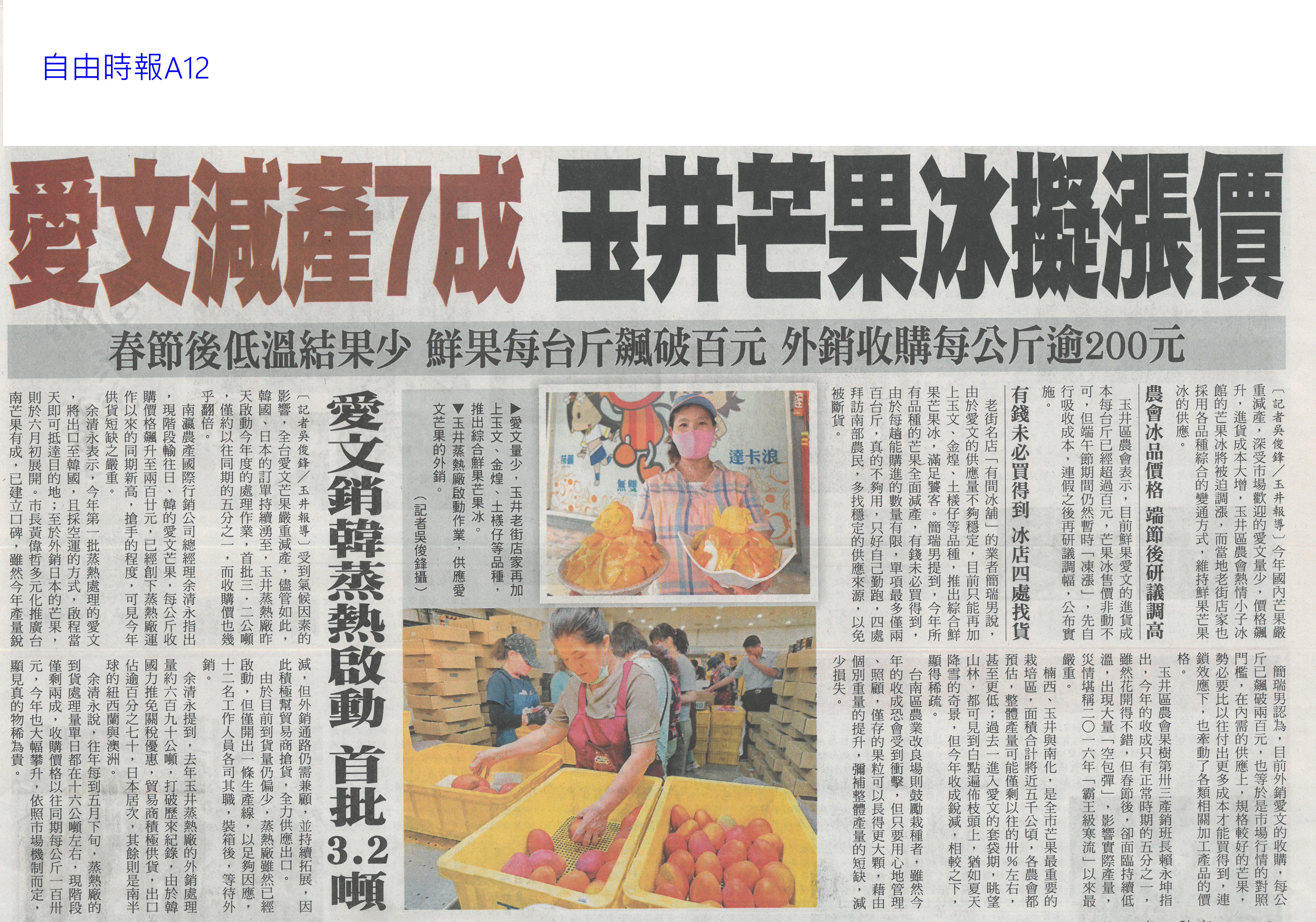 首頁芒果新鮮聞 芒果新鮮聞 排序 發布日期 更新日期 序號 發布日期 標題 201. 114/06/13 把旺來放進料理! 鳳梨料理簡單做 用果香煮出夏天滋味 202. 114/06/11 前進首爾食品展 台南館人氣旺(中華日報B8) 203. 114/06/10 食農教育扎根 有機農場採摘樂(中華日報B3) 204. 114/06/10 黃偉哲挺進北海道市場 攜台南物產走入丸井三越拚出口新契機 205. 114/06/10 芒果季來了!怎麼挑不踩雷?農業部教「簡單3招」:香甜又多汁 206. 114/06/10 觀光署服務分處將插旗西雅圖 深耕美加市場 207. 114/06/08 黃偉哲北海道雙會議長 推銷台南觀光物產、深化台日友誼 208. 114/06/08 北海道拼城市外交 黃偉哲會見北海道議會與富良野市議會議長 209. 114/06/07 雲林古坑超Chill玩法 「賞桐花、喝咖啡、逛市集」步道健行擁抱茶園和遠山 210. 114/06/04 台南農改場戰略雜糧技術 成果亮眼(中華日報B8) 211. 114/06/04 小心越吃越「火大」 荔枝一天能吃幾顆?農業部給數字 212. 114/06/03 愛文減產7成 玉井芒果冰擬漲價(自由時報A12) 213. 114/06/02 節慶商機旺!端午連假 台南吸引逾103萬人次遊客到訪 214. 114/06/01 【抗老化飲食全攻略】8大青春營養素,吃對食物凍齡又有力! 215. 114/05/19 臺南農產快閃嘉義 雙黃市長相見歡(聯合報B2) 216. 114/05/19 臺南農產市集 快閃嘉市(台灣新生報7) 217. 114/05/19 台南農產前進嘉義 兩市長攜手行銷(中華日報B2) 218. 114/05/19 糧食自給率屢探新低 國安隱憂(中國時報A3) 219. 114/05/19 農業部辦農村再生研討會 落幕(民眾日報5) 220. 114/05/19 月桃故事館 打造食農基地(聯合報B2) 第 11/183 頁,共 3656 筆上一頁到第123456789101112131415161718192021222324252627282930313233343536373839404142434445464748495051525354555657585960616263646566676869707172737475767778798081828384858687888990919293949596979899100101102103104105106107108109110111112113114115116117118119120121122123124125126127128129130131132133134135136137138139140141142143144145146147148149150151152153154155156157158159160161162163164165166167168169170171172173174175176177178179180181182183頁下一頁每頁103070筆資料