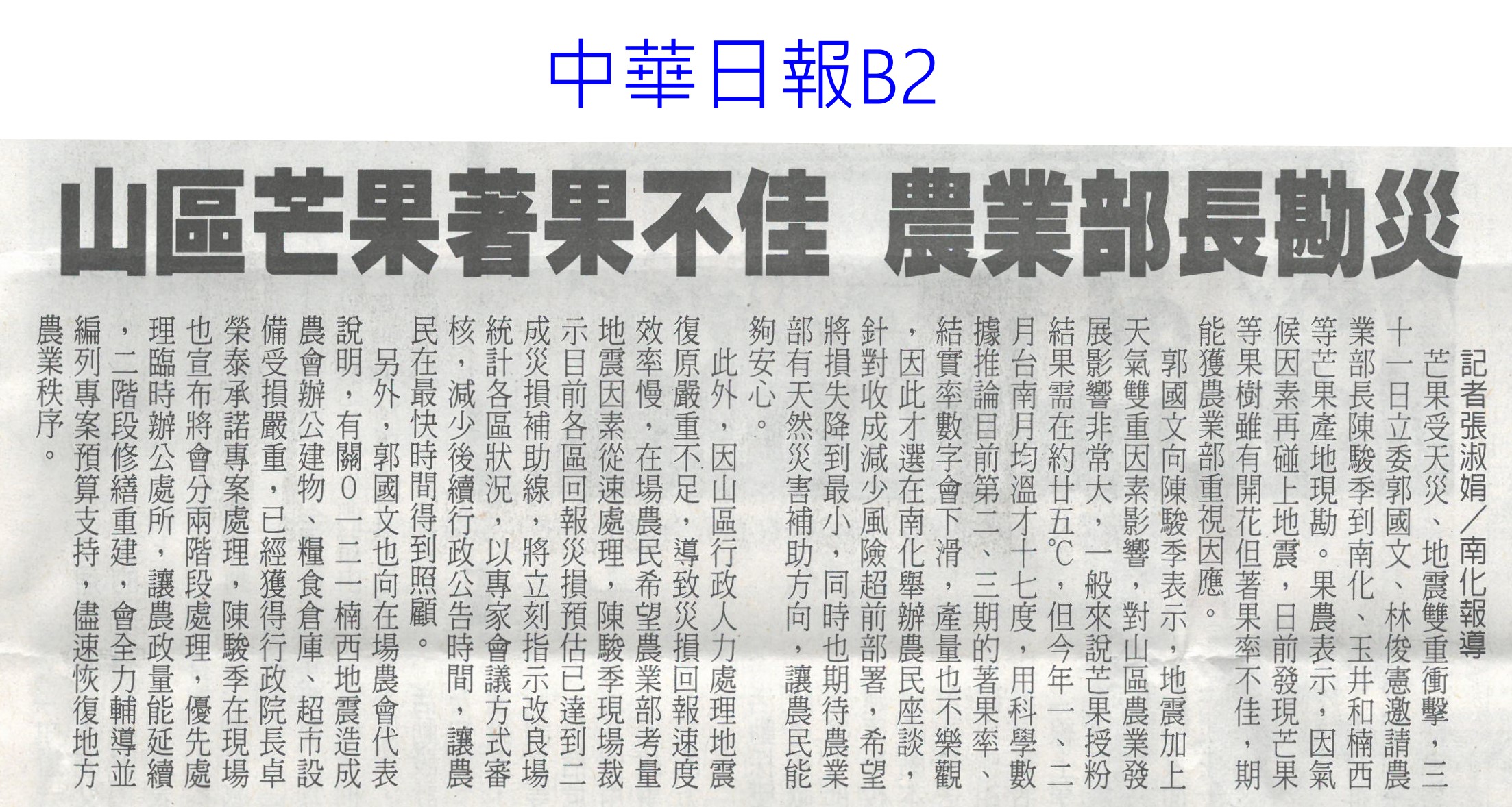 首頁芒果新鮮聞 芒果新鮮聞 排序 發布日期 更新日期 序號 發布日期 標題 281. 114/04/02 植物診療師高考 8月將首次舉辦(民眾日報2) 282. 114/04/02 亞蔬種原庫翻新 庫存容量增2.5倍(自由時報A8) 283. 114/04/02 亞蔬種原庫翻新 落成啟用(中華日報B1) 284. 114/04/02 山區芒果著果不佳 農業部長勘災(中華日報B2) 285. 114/04/02 芒果著果率差 清明後決定是否補助(自由時報A11) 286. 114/04/02 「茶之魔手」台南東山新茶葉產區啟用 黃偉哲期許開創台南茶業發展春天 287. 114/03/31 彰化金蜜芒果遇寒害 "早花"感染炭疽病 農民損失慘 288. 114/03/27 農業 外交部 組智慧新農業顧問團(民眾日報4) 289. 114/03/27 雲縣府分享用智慧農業打造韌性城鄉(台灣新生報5) 290. 114/03/27 東京食品展 我接獲訂單創新高(自由時報A7) 291. 114/03/27 山區果樹著果率差(中華日報B2) 292. 114/03/27 寒流又遇雨 芒果產量減半(中國時報A9) 293. 114/03/27 雲縣府籲中央放寬農保資格清查(臺灣時報18) 294. 114/03/27 山區水果著果率不佳 陳亭妃促完成災損速報(中華日報B2) 295. 114/03/26 陳亭妃爭取農民災損權利 提升後壁蘭花園區組織與人力 296. 114/03/18 農糧署米糧烘焙精品館 秀新招(民眾日報4) 297. 114/03/17 出租農地設光電? 雲林逾5千農民 面臨強制退保(聯合報A6) 298. 114/03/17 台南優質廠商驚豔日本東京食品展(中華日報B8) 299. 114/03/17 張麗善訪日 考察農業 地方創生(中國時報A9) 300. 114/03/16 東京食品展臺南館成績亮眼 四天訂單上看4.2億 第 15/183 頁,共 3656 筆上一頁到第123456789101112131415161718192021222324252627282930313233343536373839404142434445464748495051525354555657585960616263646566676869707172737475767778798081828384858687888990919293949596979899100101102103104105106107108109110111112113114115116117118119120121122123124125126127128129130131132133134135136137138139140141142143144145146147148149150151152153154155156157158159160161162163164165166167168169170171172173174175176177178179180181182183頁下一頁每頁103070筆資料