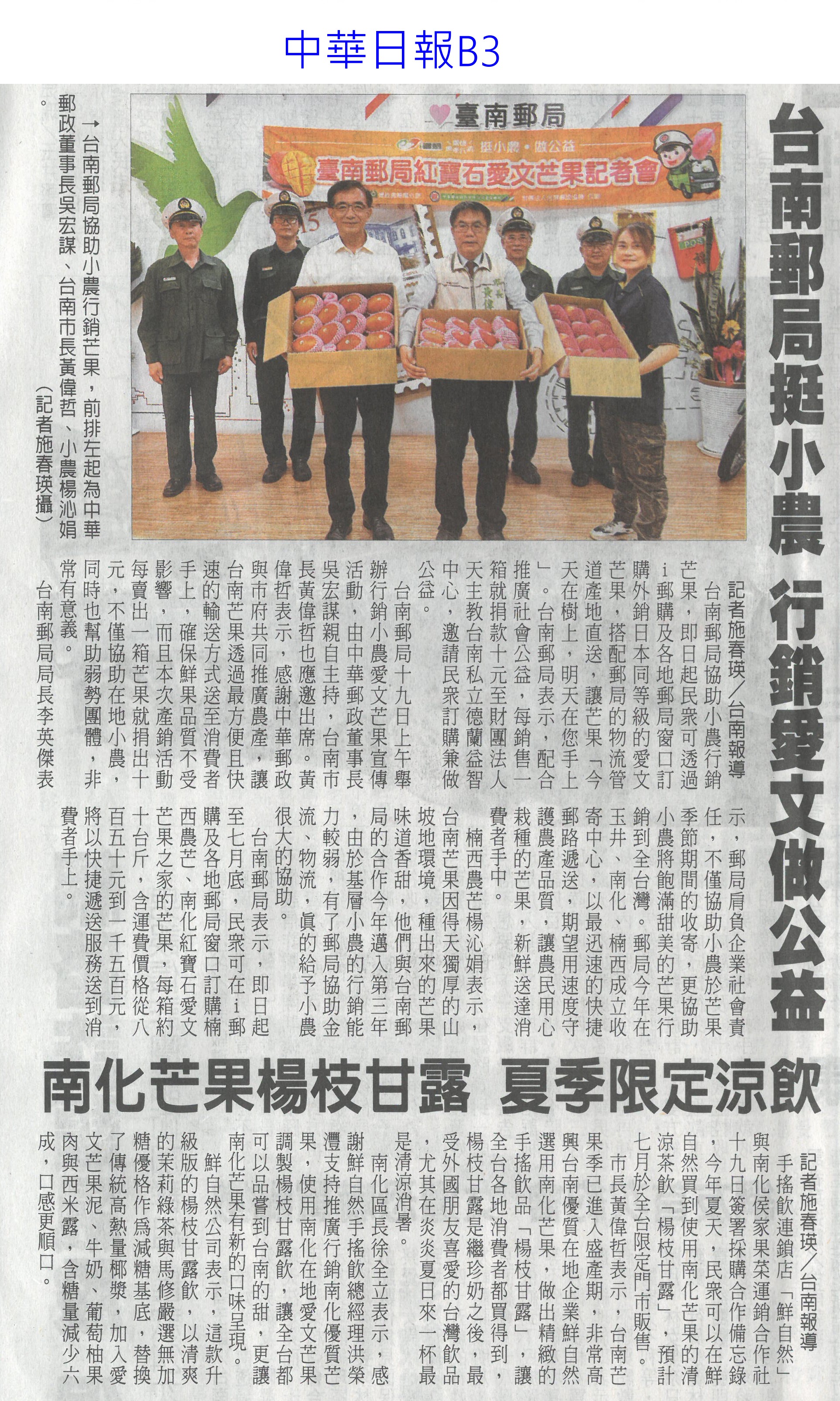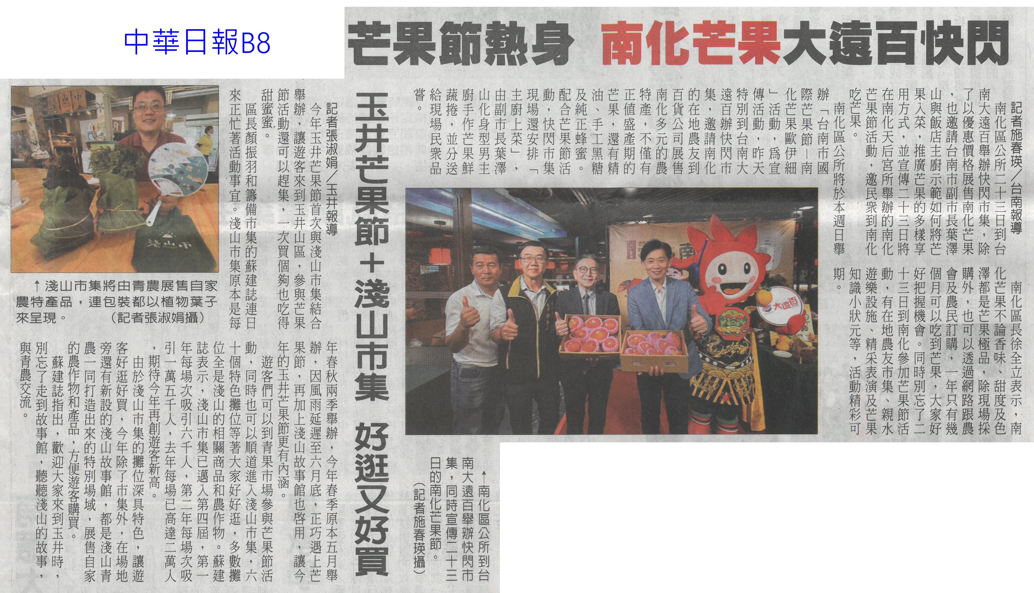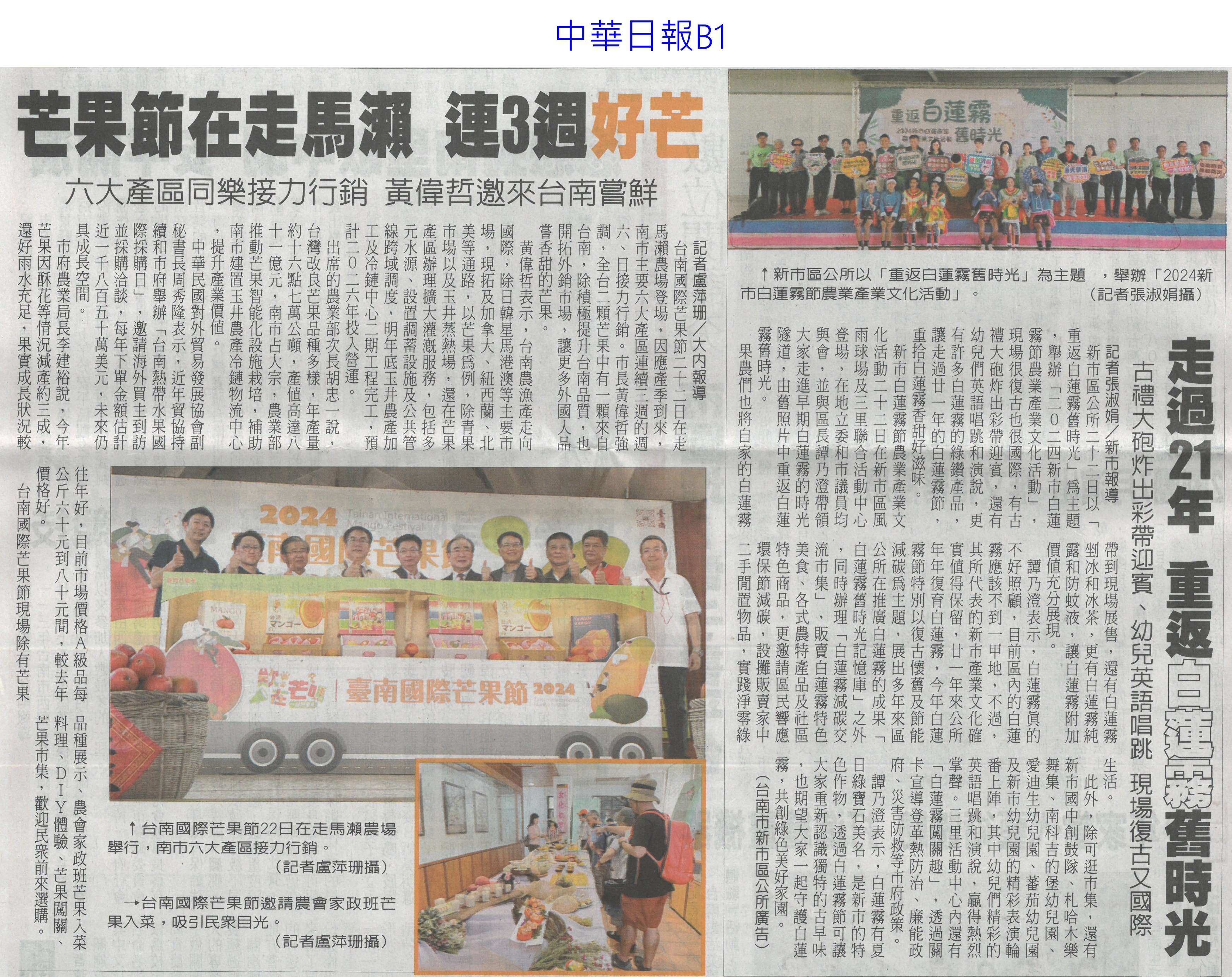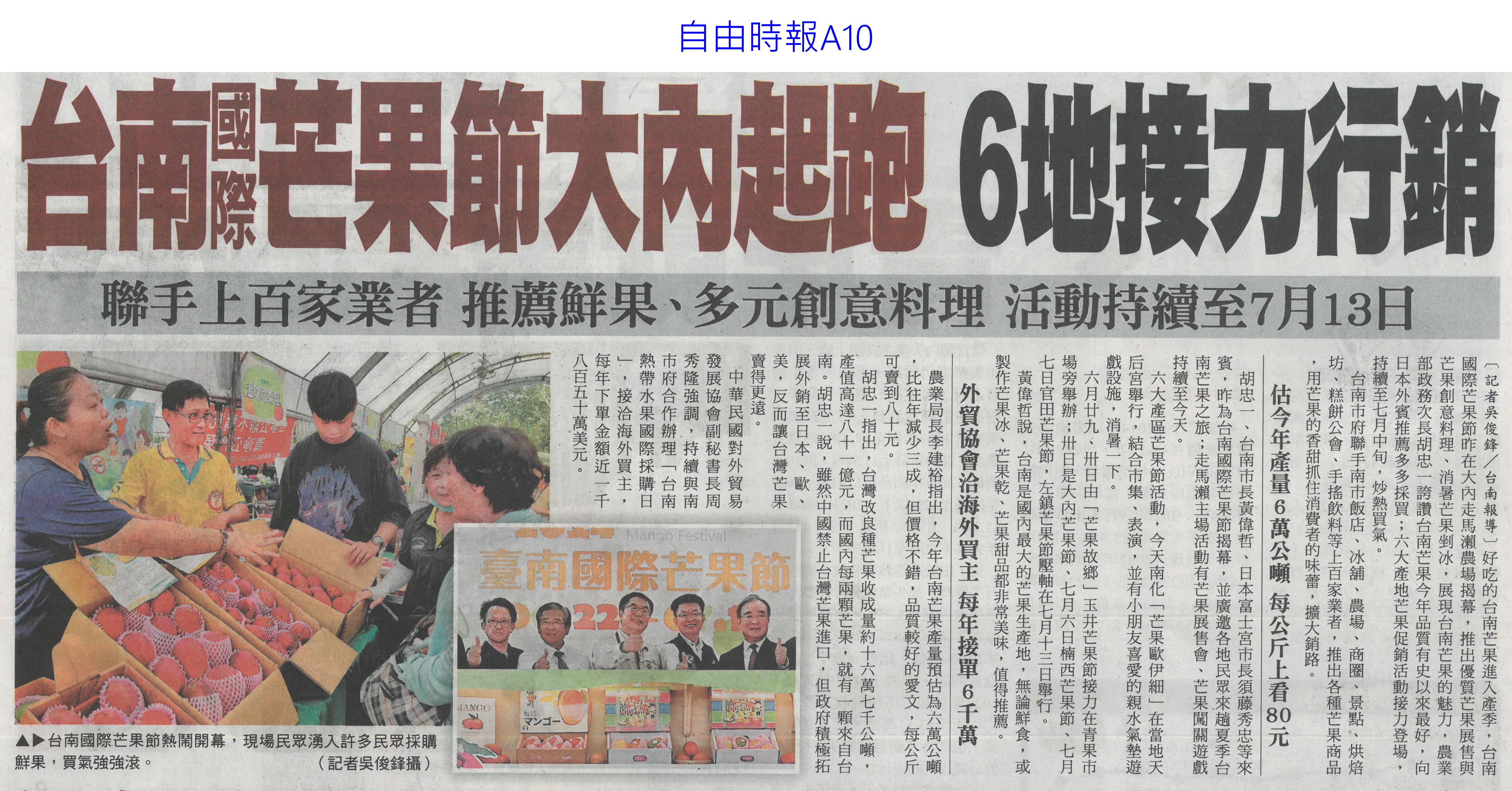 首頁芒果新鮮聞 芒果新鮮聞 排序 發布日期 更新日期 序號 發布日期 標題 461. 113/06/28 日友人訪台南 黃偉哲芒果寶盒迎賓(民眾日報3) 462. 113/06/28 南化芒果節登場 義賣助家扶(中華日報B1) 463. 113/06/28 台南國際芒果節大內起跑 6地接力行銷(自由時報A10) 464. 113/06/28 台南芒果節 走馬瀨開幕(台灣新生報3) 465. 113/06/28 芒果節在走馬瀨 連3週好芒(中華日報B1) 466. 113/06/28 台南芒果節開跑 黃偉哲吃冰消暑喊讚(中國時報A9) 467. 113/06/28 芒果節熱身 南化芒果大遠百快閃(中華日報B8) 468. 113/06/28 南化芒果市集 台南大遠百快閃(台灣新生報3) 469. 113/06/28 板橋大遠百 台南芒果飄香(台灣新生報5) 470. 113/06/28 行銷芒果增創意巧思(聯合報A9) 471. 113/06/28 南化新品文山芒果 今年採收(中華日報B8) 472. 113/06/28 亞太農業技術展 11國400攤齊聚(中華日報B8) 473. 113/06/28 亞太農業技術展覽暨會議 首度移師台南(台灣新生報2) 474. 113/06/28 亞太農業技術展 首度移師台南(臺灣時報18) 475. 113/06/28 台南芒果節 6/22走馬瀨登場(自由時報A13) 476. 113/06/28 台南國際芒果節 周末走馬瀨揭幕(台灣新生報6) 477. 113/06/28 台南郵局挺小農 行銷愛文做公益(中華日報B3) 478. 113/06/28 國際芒果節 22日走馬瀨登場(中華日報B1) 479. 113/06/28 台南芒果節周末開跑 美味地圖指路(中國時報A9) 480. 113/06/28 開轟芒果乾 山上農會訂單排隊(自由時報A11) 第 24/183 頁,共 3656 筆上一頁到第123456789101112131415161718192021222324252627282930313233343536373839404142434445464748495051525354555657585960616263646566676869707172737475767778798081828384858687888990919293949596979899100101102103104105106107108109110111112113114115116117118119120121122123124125126127128129130131132133134135136137138139140141142143144145146147148149150151152153154155156157158159160161162163164165166167168169170171172173174175176177178179180181182183頁下一頁每頁103070筆資料
