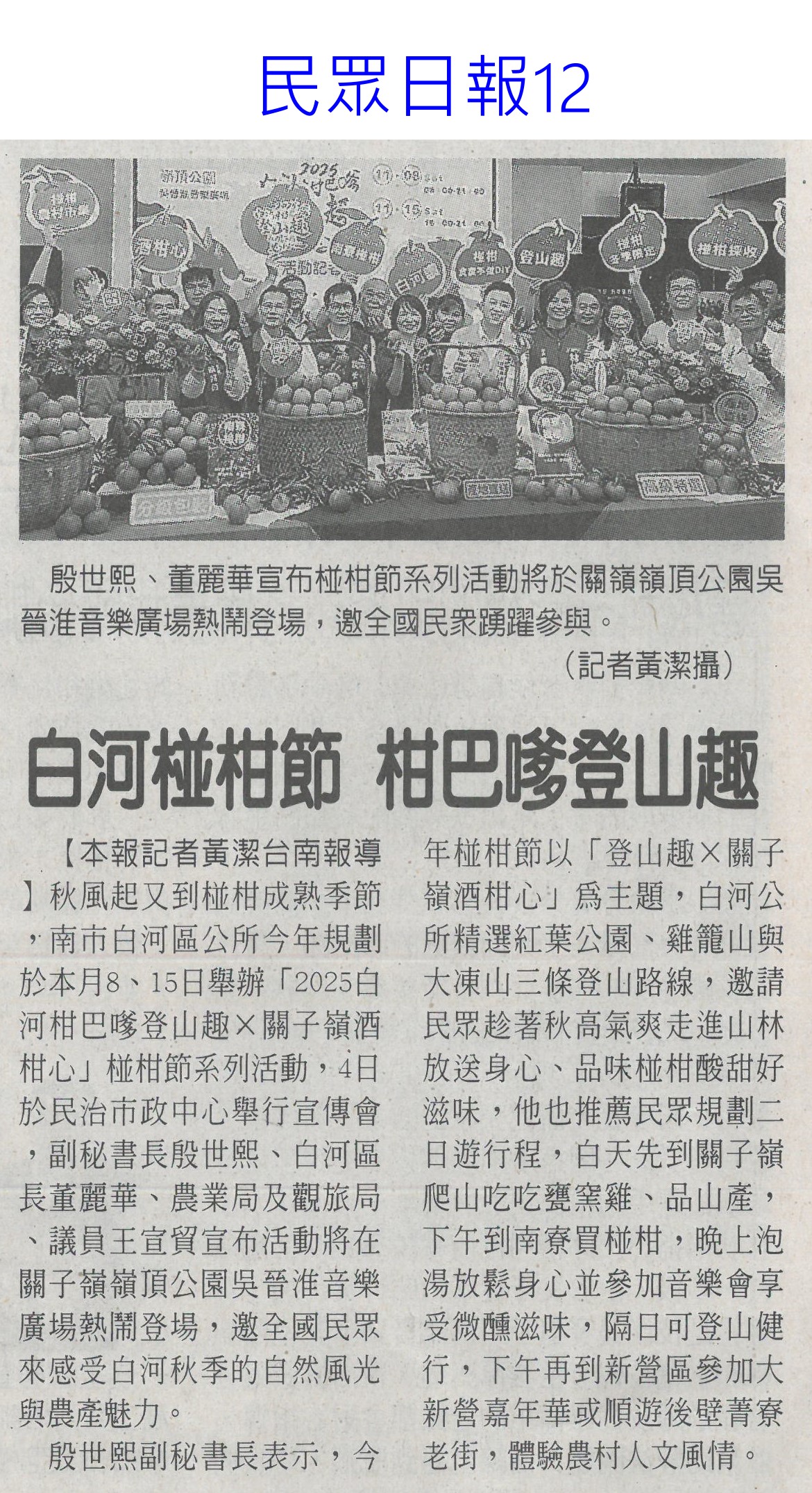 首頁芒果新鮮聞 芒果新鮮聞 排序 發布日期 更新日期 序號 發布日期 標題 61. 114/12/04 猴害肆虐 農業部:3個月提方案(聯合報A7) 62. 114/12/04 台南農再有成 獲農業部雙向肯定(中華日報B3) 63. 114/12/02 日台商務促進會拜會台南市府 黃偉哲盼深化農業、教育與文化交流 64. 114/11/29 「回嘉看花」共度美好時光 嘉義花海生活節要您入花叢 65. 114/11/26 2024 糧食年報 01》糧食自給率 30.7% 止跌回升,食米量、地瓜上升,蔬果雙下降(2025公布) 66. 114/11/18 黃埔一期學長出頭 柚子國際飄香(中國時報A9) 67. 114/11/13 台南農村再生嘉年華 52個社區參與(自由時報A10) 68. 114/11/13 有機生活日 水果小鎮出任務(民眾日報5) 69. 114/11/13 虎科大推水井鹽地番茄食農教育(台灣新生報6) 70. 114/11/13 嘉大辦理有機農業精準作物調查登載(民眾日報12) 71. 114/11/11 黃偉哲領軍 台南鮮果星國開賣(臺灣時報6) 72. 114/11/11 台北旅展 農業部打造永續農遊新風潮(民眾日報16) 73. 114/11/11 從蘋果到風災援助!弘前市長率團訪台南 黃偉哲致贈感謝狀深化友誼 74. 114/11/05 健行嘗山產 白河椪柑節11/8登場(自由時報A9) 75. 114/11/05 白河椪柑節 柑巴嗲登山趣(民眾日報12) 76. 114/11/05 白河椪柑節系列活動 周六登場(台灣新生報6) 77. 114/11/05 楠西芒果 鳳梨明年輸韓(台灣新生報6) 78. 114/11/05 採購芒果鳳梨 台韓農商簽合作意向書(中華日報B1) 79. 114/11/03 創新緩控釋肥論壇 打造綠色農業(中華日報A4) 80. 114/11/03 中華郵政農糧署合作 (臺灣時報18) 第 4/187 頁,共 3721 筆上一頁到第123456789101112131415161718192021222324252627282930313233343536373839404142434445464748495051525354555657585960616263646566676869707172737475767778798081828384858687888990919293949596979899100101102103104105106107108109110111112113114115116117118119120121122123124125126127128129130131132133134135136137138139140141142143144145146147148149150151152153154155156157158159160161162163164165166167168169170171172173174175176177178179180181182183184185186187頁下一頁每頁103070筆資料