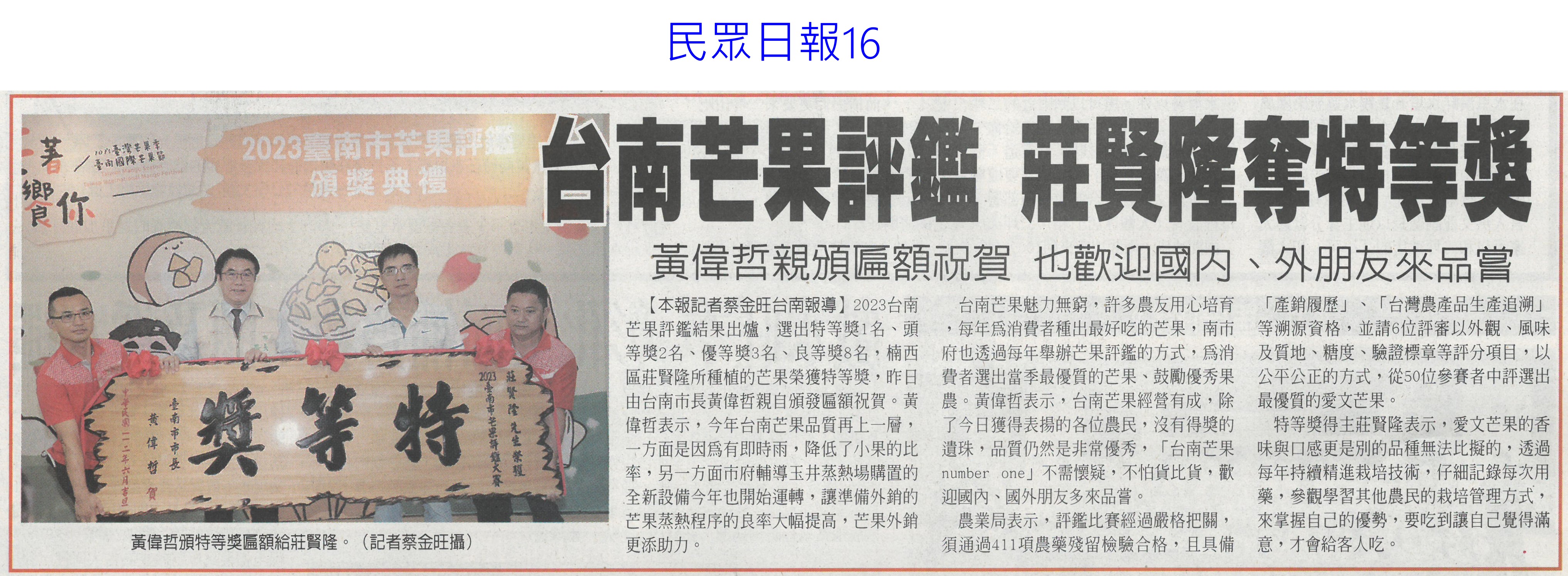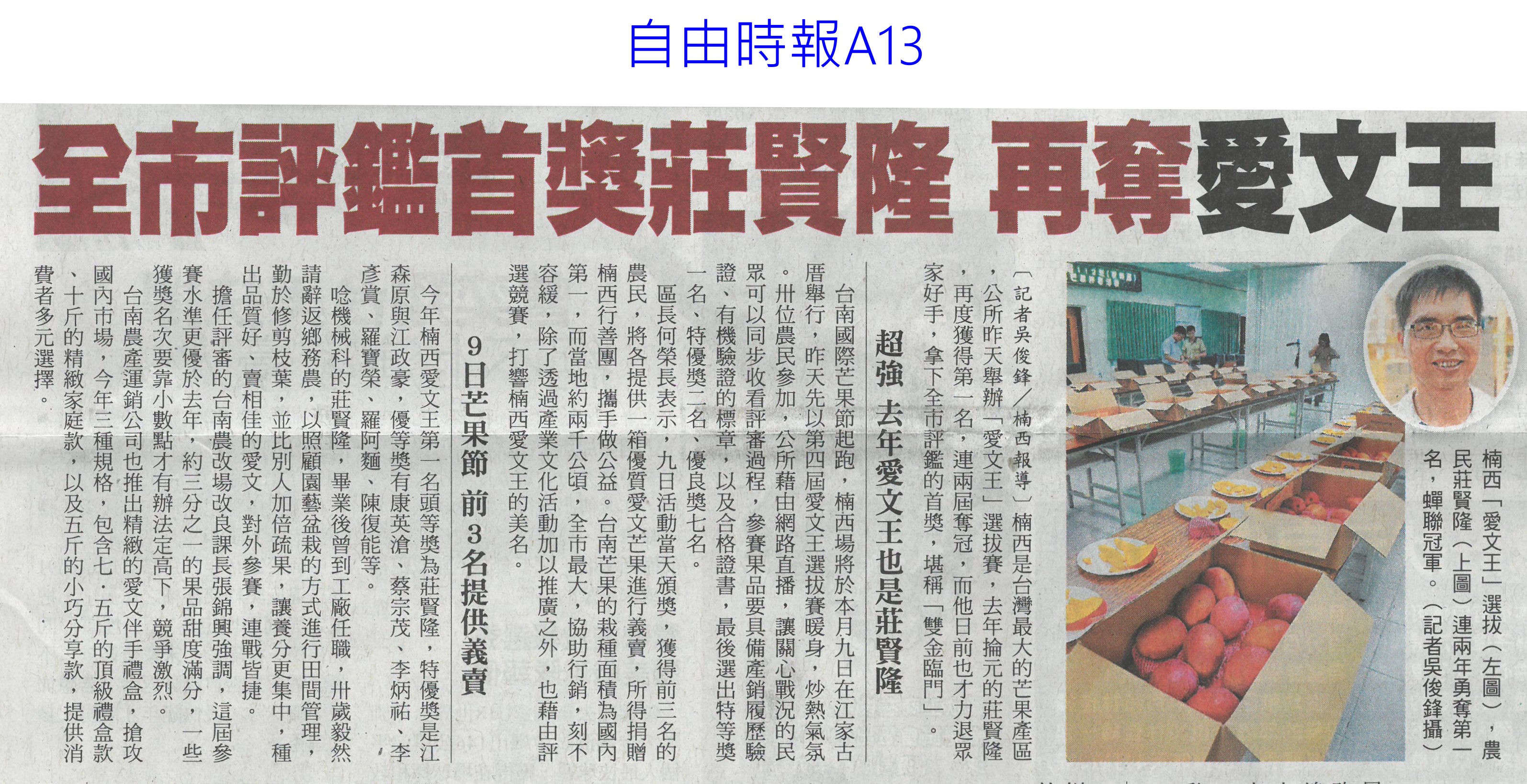 首頁芒果新鮮聞 芒果新鮮聞 排序 發布日期 更新日期 序號 發布日期 標題 881. 112/07/06 芒果有黑斑不能吃? 農糧署闢謠:無明顯腐敗削除即可食用 882. 112/07/05 炙燒金磚 左鎮芒果節周六登場(自由時報A13) 883. 112/07/05 台南芒果評鑑 莊賢隆奪特等獎(民眾日報16) 884. 112/07/05 全市評鑑首獎莊賢隆 再奪愛文王(自由時報A13) 885. 112/07/05 通過履歷驗證 台灣芒果輸日(民眾日報14) 886. 112/07/05 愛文快閃 黃偉哲明上購物頻道行銷(中華日報B8) 887. 112/07/05 楠西愛文王 莊賢隆連莊(中華日報B1) 888. 112/07/05 台南楠西「愛文王」選拔奪冠! 芒果甜度上看15度 889. 112/07/05 2023芒果展銷公益嘉年華8日登場 陳昆和大力協辦 890. 112/07/05 芒果控注意!《食尚玩家購物網》芒果季甜點大賞激推30款甜點 891. 112/07/04 迎接暑假觀光熱潮 臺南推快速公路自駕遊 892. 112/07/04 採芒果、吹海風迎暑假!台南3經典自駕遊 感受不一樣的南台灣 893. 112/07/04 【食力】別只注意迷人美觀的食品包裝!張大眼睛看清食品標示更重要! 894. 112/07/04 內行玩家才知道!台南3經典自駕路線遊程曝光玩遍山海 895. 112/07/03 芒果外銷成績亮眼 出口量增45%(自由時報A11) 896. 112/07/03 臺灣芒果 國道4處服務區上架(台灣新生報7) 897. 112/07/03 通過履歷驗證 臺灣芒果輸日啟動(台灣新生報3) 898. 112/07/03 芒果熟了 國道服務區限定開賣(中華日報B8) 899. 112/07/03 南化芒果銷日本校園 供營養午餐(中國時報A9) 900. 112/07/03 日本台南季 盛夏紅寶石熱銷(中華日報B2) 第 45/183 頁,共 3656 筆上一頁到第123456789101112131415161718192021222324252627282930313233343536373839404142434445464748495051525354555657585960616263646566676869707172737475767778798081828384858687888990919293949596979899100101102103104105106107108109110111112113114115116117118119120121122123124125126127128129130131132133134135136137138139140141142143144145146147148149150151152153154155156157158159160161162163164165166167168169170171172173174175176177178179180181182183頁下一頁每頁103070筆資料