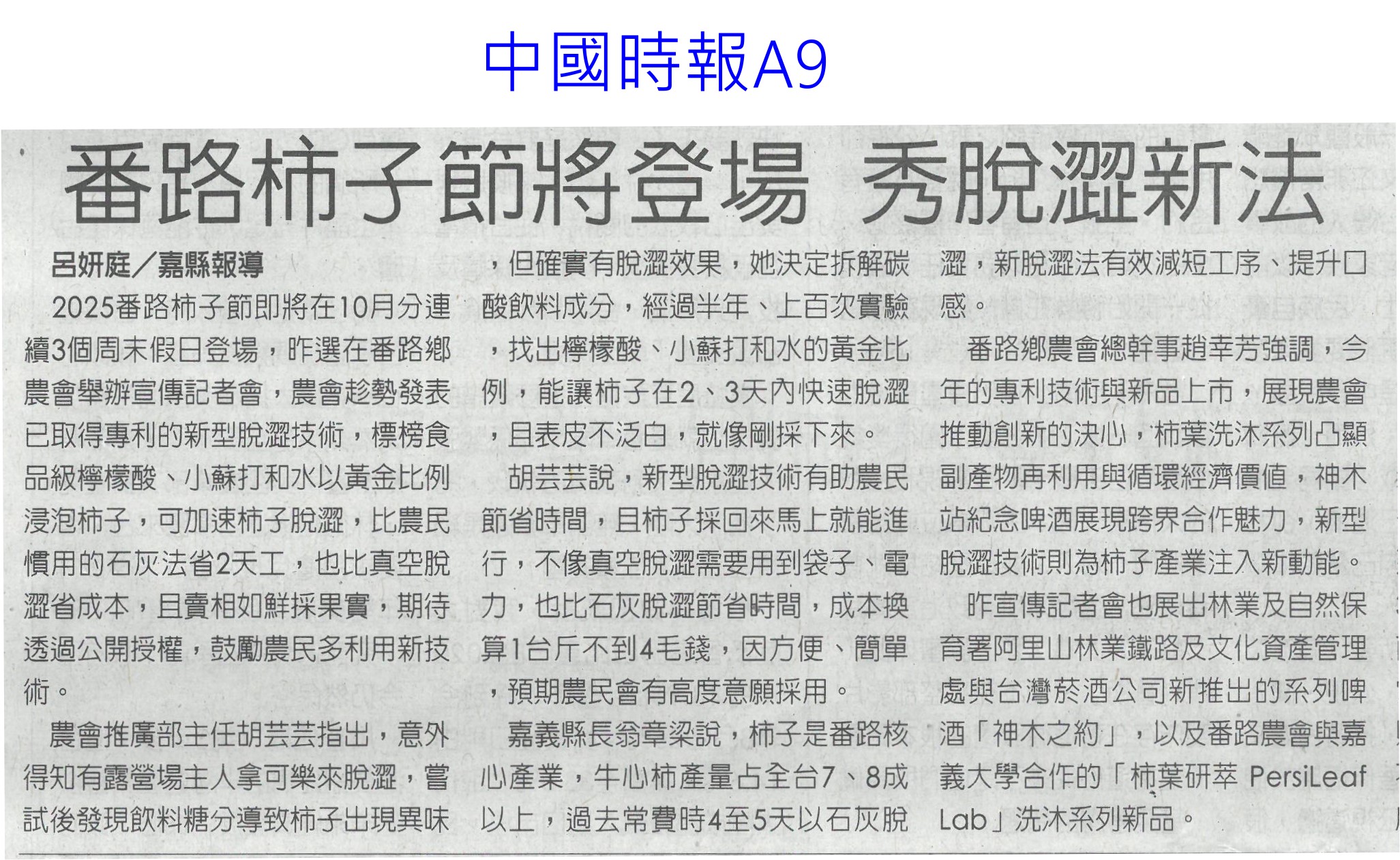首頁芒果新鮮聞 芒果新鮮聞 排序 發布日期 更新日期 序號 發布日期 標題 101. 114/10/21 青皮椪柑上架小七 10/27開賣(中華日報B2) 102. 114/10/16 農民職災保險就醫津貼給付水準 提高(民眾日報6) 103. 114/10/11 「八田米」登上日本山口超市! 台南好米飄香友誼市 104. 114/10/07 編6億助農產外銷 上半年反衰退(中國時報A6) 105. 114/10/07 雲林良品伴手禮 跨域合作(台灣新生報7) 106. 114/10/07 台灣鳳梨拿到銷美門票,芒果鳳梨肉嫩帶芒果香,耐儲運,搶攻美國 131萬噸市場 107. 114/10/01 農業部:持續支持3章1 Q國產食材(臺灣時報4) 108. 114/10/01 石壁觀光轉型 升格休閒農業區(聯合報B2) 109. 114/10/01 南得極品展售會 送禮兩相宜(中華日報B8) 110. 114/10/01 仁德小農市集 買在地做公益(中華日報B3) 111. 114/10/01 大內九月雪活動浪漫登場(台灣新生報6) 112. 114/10/01 嘉義果乾烏魚子 奪水產精品獎(自由時報A11) 113. 114/10/01 古坑促進區 打造有機示範基地(聯合報B2) 114. 114/10/01 風災後剩4成 嘉縣柿子節周六開跑(聯合報B2) 115. 114/10/01 美農業部次長訪台 宣布開放鳳梨輸美(聯合報A2) 116. 114/10/01 番路柿子節4日登場 推專利脫澀技術(自由時報A11) 117. 114/10/01 番路柿子專利技術與新品上市(台灣新生報6) 118. 114/10/01 番路柿子節將登場 秀脫澀新法(中國時報A9) 119. 114/10/01 中秋選好禮 嘉義優鮮聯名故宮(中國時報A7) 120. 114/10/01 接見美國農業次長 蕭美琴:農業是台美貿易極重要一環 第 6/187 頁,共 3721 筆上一頁到第123456789101112131415161718192021222324252627282930313233343536373839404142434445464748495051525354555657585960616263646566676869707172737475767778798081828384858687888990919293949596979899100101102103104105106107108109110111112113114115116117118119120121122123124125126127128129130131132133134135136137138139140141142143144145146147148149150151152153154155156157158159160161162163164165166167168169170171172173174175176177178179180181182183184185186187頁下一頁每頁103070筆資料