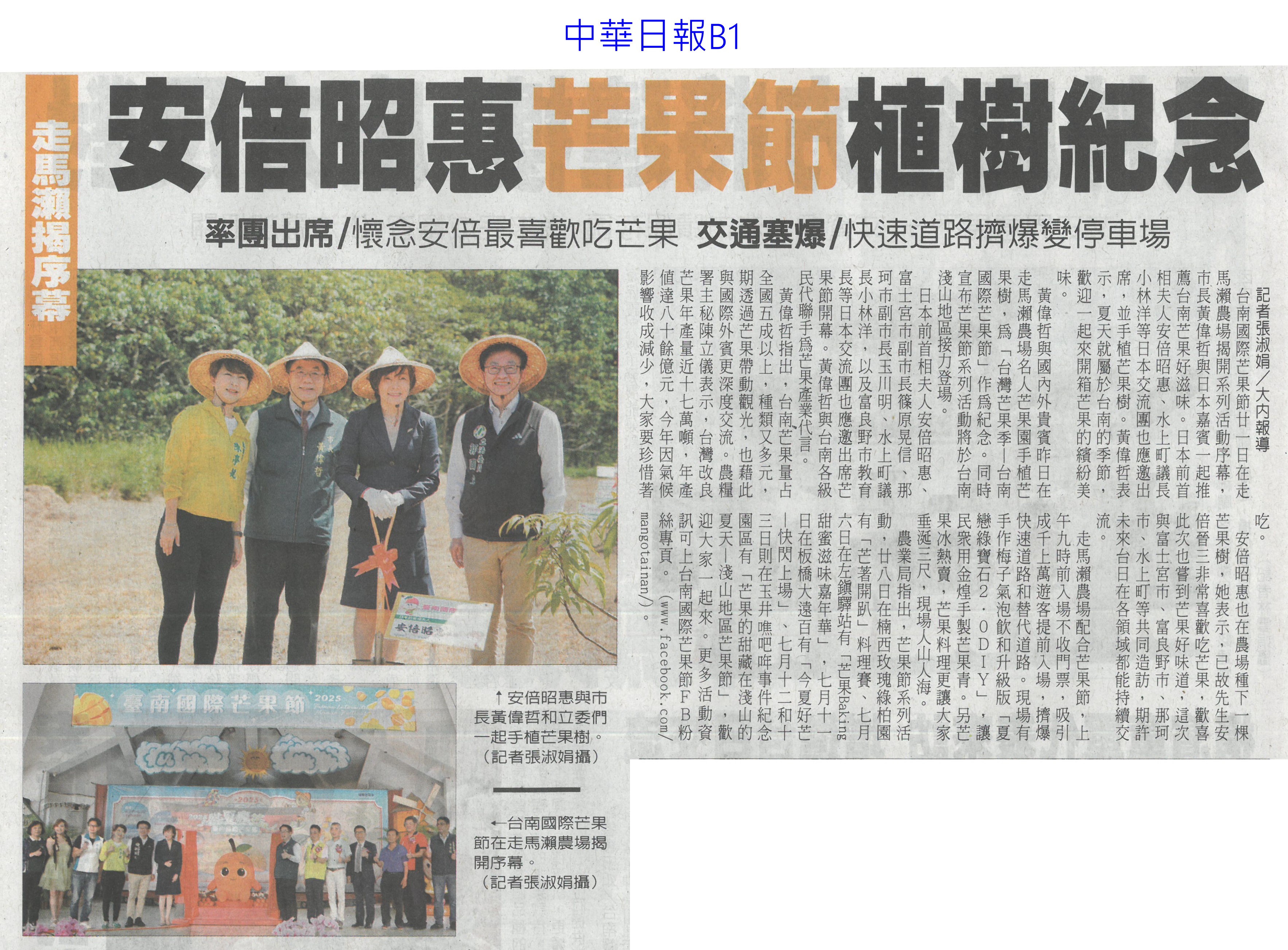 首頁芒果新鮮聞 芒果新鮮聞 排序 發布日期 更新日期 序號 發布日期 標題 141. 114/06/29 屏東「獅子好芒」市集、搖滾圓滿落幕 遊客讚明年再來 142. 114/06/28 立委攜手農民 打造獅子鄉「獅子好芒」芒果品牌 143. 114/06/27 歐盟處長首訪台南!肯定人權展與經貿潛力 黃偉哲盼深化台歐交流 144. 114/06/26 國際食品展 台灣館開幕(台灣新生報2) 145. 114/06/26 南得極品登台北食品展 搶商機(中華日報B8) 146. 114/06/25 「食力升級・串聯世界」!臺灣館亮相2025台北國際食品展 147. 114/06/25 水果冷麵征服味蕾!不用跑台南 國際食品展就能品嚐在地滋味 148. 114/06/24 南化啟動愛文收購 價格僅微調(自由時報A11) 149. 114/06/24 台南愛文芒果遭客訴「放3天有黑點」 消保官回應了 150. 114/06/24 玉井芒果品質有保障 台南農業局:認明「安心標章」 151. 114/06/23 台南國際芒果節 走馬瀨開幕(台灣新生報3) 152. 114/06/23 安倍昭惠芒果節植樹紀念(中華日報B1) 153. 114/06/23 芒果產量腰斬 外銷銳減9成(中國時報A9) 154. 114/06/23 台南鳳梨直送北海道 高中生讚好吃(自由時報A11) 155. 114/06/23 盛夏瘋芒 走馬瀨玉井湧人潮(中華日報B1) 156. 114/06/22 不是莓果!實驗證實「1水果」能護腎:夏天吃正對時 157. 114/06/21 日韓商社來台南! 黃偉哲接待力推台南農產打進全球市場 158. 114/06/21 台南國際芒果節登場!前日本首相夫人安倍昭惠也來了 159. 114/06/21 台南國際芒果節開幕 安倍昭惠夫人親手種下芒果樹紀念 160. 114/06/21 芒果控衝台南!國際芒果節走馬瀨開幕 黃偉哲、日賓共植芒果樹 第 8/183 頁,共 3656 筆上一頁到第123456789101112131415161718192021222324252627282930313233343536373839404142434445464748495051525354555657585960616263646566676869707172737475767778798081828384858687888990919293949596979899100101102103104105106107108109110111112113114115116117118119120121122123124125126127128129130131132133134135136137138139140141142143144145146147148149150151152153154155156157158159160161162163164165166167168169170171172173174175176177178179180181182183頁下一頁每頁103070筆資料