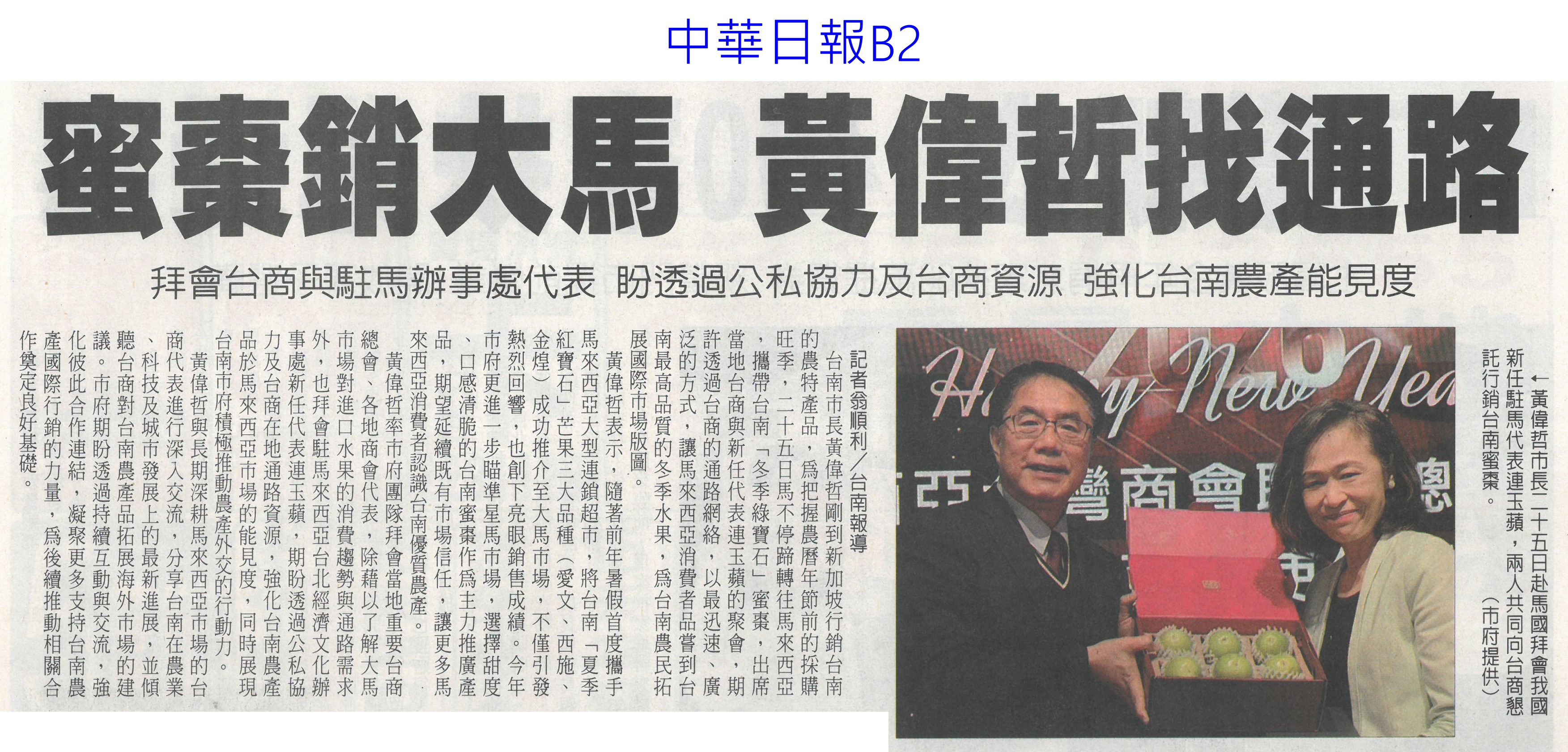 首頁楊眼好新聞 楊眼好新聞 排序 發布日期 更新日期 序號 發布日期 標題 1. 115/02/11 農糧署攜手全聯 推國產農漁畜年節食材(民眾日報6) 2. 115/02/09 北門行銷紅蔥頭 美食教作衝買氣(中華日報B1) 3. 115/02/09 古坑茂谷柑節 國3服務區登場(自由時報A8) 4. 115/02/09 雲林褒忠生菜農經專區 亮相(民眾日報2) 5. 115/02/09 古坑茂谷柑節 品嘗鹽烤茂谷柑(中華日報B5) 6. 115/02/09 農業部推百大農遊點與親子行程(台灣新生報7) 7. 115/02/03 從產地到門市 小七安心草莓獨家開賣(民眾日報16) 8. 115/02/03 行銷鳳梨釋迦 農糧署祭3招(中華日報A4) 9. 115/02/03 蜜棗銷大馬 黃偉哲找通路(中華日報B2) 10. 115/02/03 青農張清文 推觀光草莓園(中華日報B4) 11. 115/02/03 雲林農業前進中東 佈局國際(台灣新生報6) 12. 115/02/03 黃偉哲帶冬季綠寶石前進大馬闢通路(臺灣時報13) 13. 115/02/02 行銷台南農產 黃偉哲前進新加坡(臺灣時報13) 14. 115/02/02 鳳梨釋迦外銷受阻 農糧署搶救(臺灣時報4) 15. 115/02/02 以水為本 林內水舞休閒農業區啟用(自由時報A8) 16. 115/02/02 斗六茂谷柑節 馬上幸福(台灣新生報7) 17. 115/02/02 行銷台南甜 黃偉哲赴星賣蜜棗(中華日報B2) 18. 115/02/02 斥資133億 曾文南化聯通管啟用(中國時報A9) 19. 115/02/02 新春農產饗宴 55優質業者擺攤(中華日報B3) 20. 115/02/02 嘉縣年貨大街 在地農特產200多攤(自由時報A8) 第 1/121 頁,共 2411 筆到第123456789101112131415161718192021222324252627282930313233343536373839404142434445464748495051525354555657585960616263646566676869707172737475767778798081828384858687888990919293949596979899100101102103104105106107108109110111112113114115116117118119120121頁下一頁每頁103070筆資料