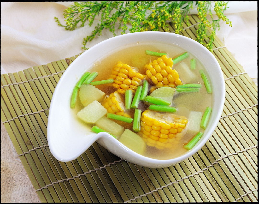 (2)玉米及白蘿蔔切成塊狀,水滾後放入,煮至水再次沸騰為止。