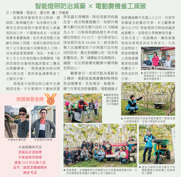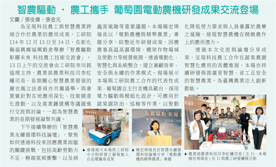 首頁葡萄園大小事葡萄栽培管理 葡萄栽培管理 排序 發布日期 更新日期 序號 發布日期 標題 1. 115/03/13 農工攜手 2. 115/03/13 智能管理 3. 114/12/23 葡萄台中6號 4. 112/10/16 「欉頭」要顧好 5. 112/05/26 葡萄園淹水後復耕措施 6. 111/10/06 釀酒葡萄 7. 111/07/13 溫室葡萄生產管理要點 8. 111/05/16 認真的研究人員最美麗 9. 111/04/17 葡萄產期調節 10. 110/12/24 葡萄省力栽培技術 11. 110/06/03 葡萄採購正適期 12. 110/04/08 葡萄無子化生產技術 13. 109/10/13 葡萄粉墨登場 14. 110/02/23 葡萄省力輔具 15. 109/01/07 葡萄不再怕高溫了 16. 108/11/20 泰國北部葡萄栽培現況 17. 108/08/31 108年彰化葡萄評鑑 18. 108/03/18 葡萄花期不再擔心下雨囉 19. 107/07/24 豪雨後果樹復耕復育措施 20. 106/03/06 日本果樹省工栽培 第 1/3 頁,共 53 筆到第123頁下一頁每頁103070筆資料