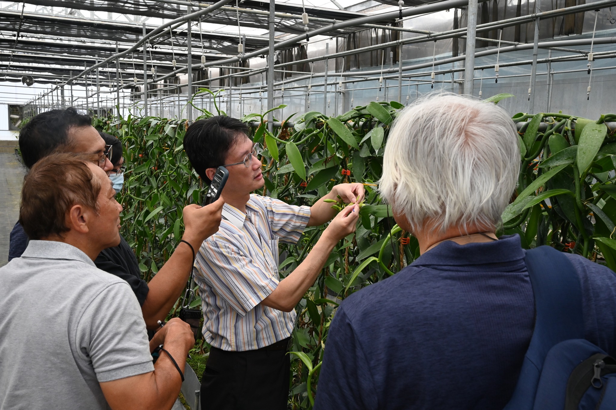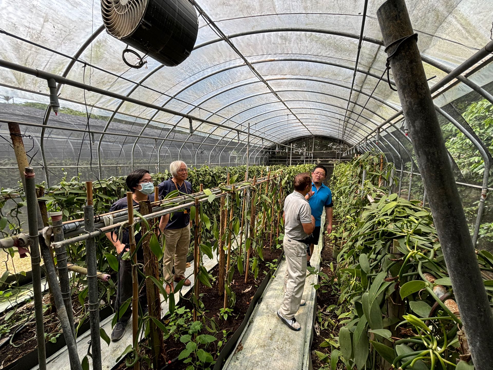 5月17日來自日本沖繩「沖繩美ら島基金會(Okinawa Churashima Foundation)」理事長花城良廣先生,率該機構研究人員一行3人至本場參訪,由本場郭坤峯場長親自接待,本場作物改良科及農業推廣科同仁一同列席交流。花城理事長此次來訪目的主要為參觀本場試驗農場之香莢蘭栽培場域及交流臺日香莢蘭產業發展合作事宜;去(112)年本場作物改良科葉志新副研究員率隊前往日本沖繩交流,受到該基金會熱情招待,今年則由日方透過本次來臺考察,加強彼此的交流。