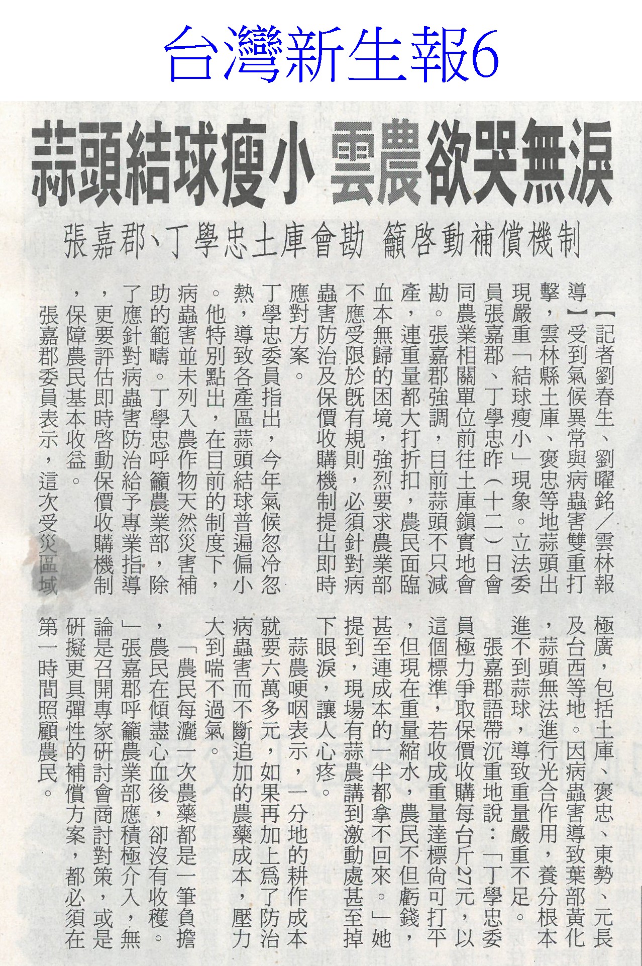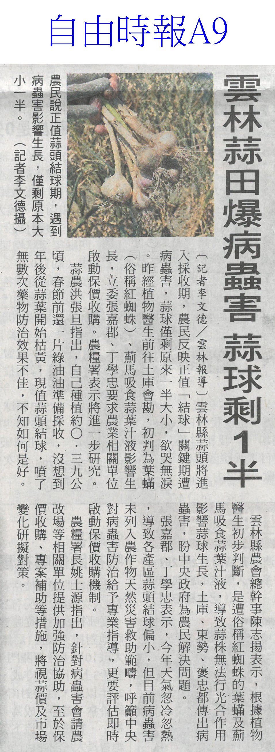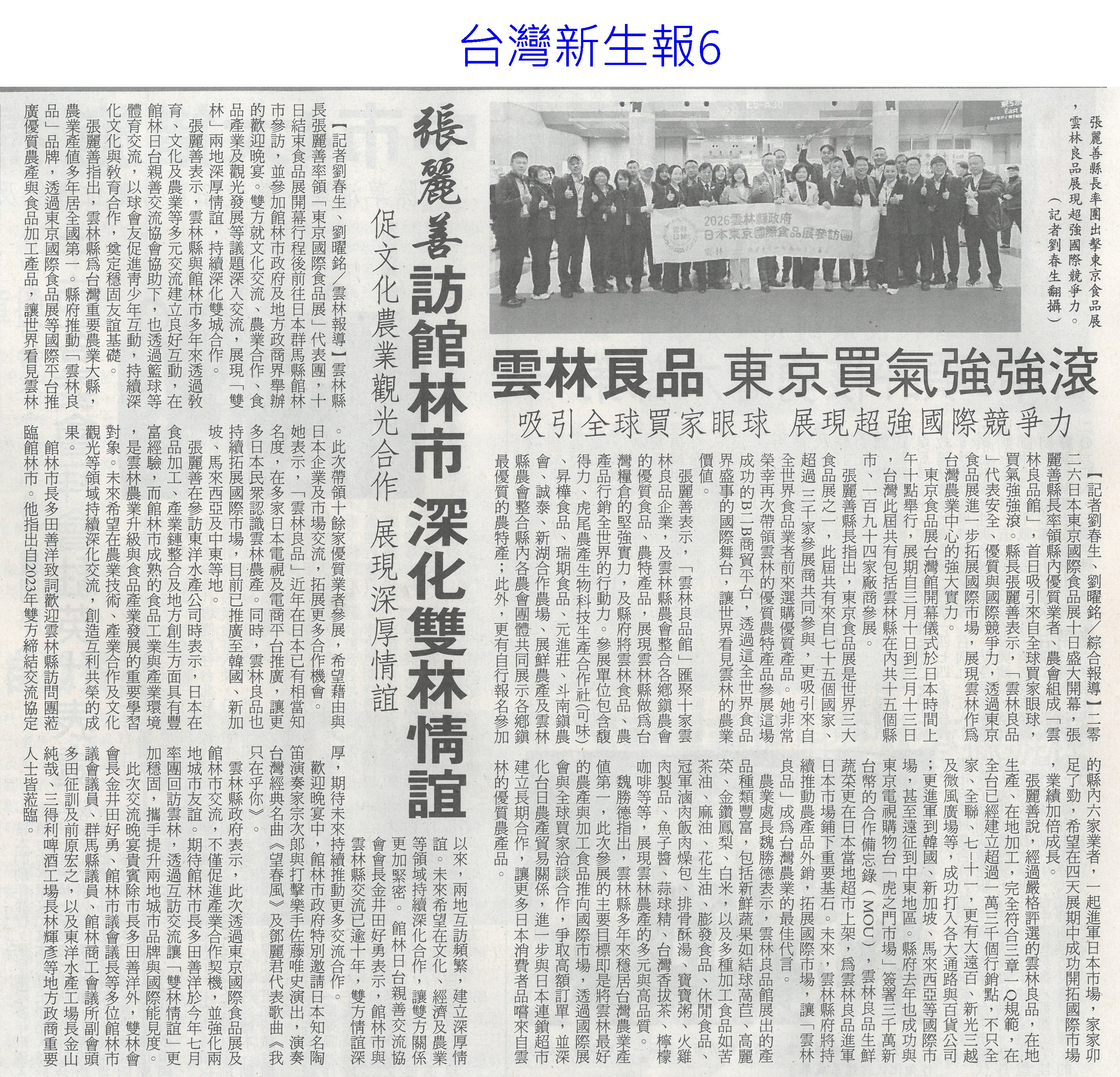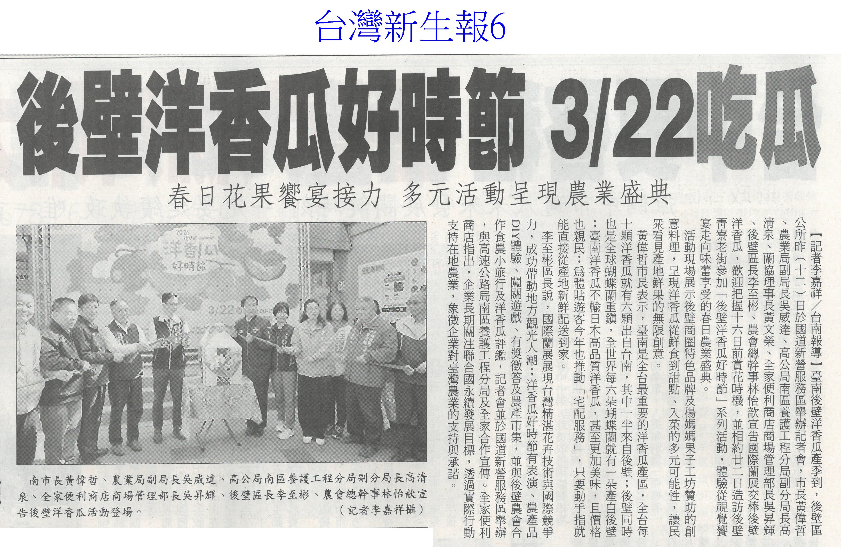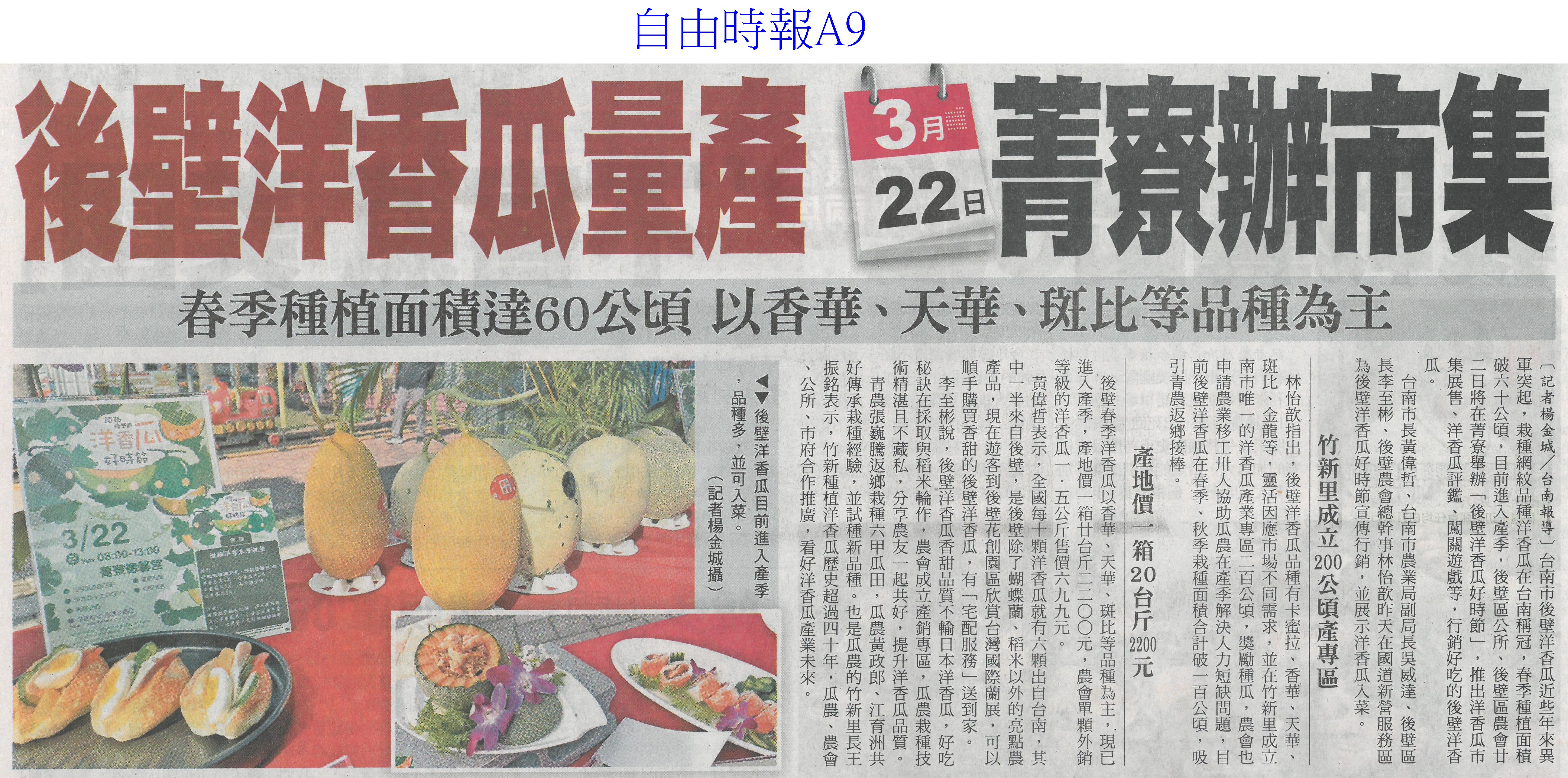 首頁萵苣觀新聞 萵苣觀新聞 排序 發布日期 更新日期 序號 發布日期 標題 1. 115/03/16 雲嘉南灌溉系統串接 日送水34.5萬噸(自由時報A9) 2. 115/03/16 雲林3座教育農園改造 年底完工(自由時報A9) 3. 115/03/16 台灣50年來最大水利工程 雲嘉南灌溉系統通水了(自由時報A1) 4. 115/03/16 東京食品展 台南農漁訂單破5億(中華日報B2) 5. 115/03/13 台日簽MOU 台灣有機產品供應日本(民眾日報3) 6. 115/03/13 嘉市6家好店 參加東京國際食品展(民眾日報16) 7. 115/03/13 台南百項農漁產 東京食品展亮相(自由時報A11) 8. 115/03/13 嘉縣推動智慧農業 最高補助(中國時報A9) 9. 115/03/13 雲林良品 東京買氣強強滾(台灣新生報6) 10. 115/03/13 台南AI市長上場 東京食品展推銷農產(自由時報A9) 11. 115/03/13 雲林蒜頭爆害蟲歉收 蒜農落淚求助(聯合報A11) 12. 115/03/13 後壁洋香瓜量產 3/22菁辦市集(自由時報A9) 13. 115/03/13 雲林蒜田爆病蟲害 蒜球剩一半(自由時報A9) 14. 115/03/13 後壁洋香瓜好時節 3/22吃瓜(台灣新生報6) 15. 115/03/13 蒜頭結球瘦小 雲農欲哭無淚(台灣新生報6) 16. 115/03/13 後壁洋香瓜好時節22日登場(中華日報B4) 17. 115/03/10 台南有機專區三代接力(中國時報A9) 18. 115/03/10 七股紅蔥頭節 手作紅蔥頭棒棒糖吸睛(中華日報B1) 19. 115/03/10 質譜快檢車 進駐太保農會(民眾日報12) 20. 115/03/10 陳駿季赴東京食品展 搶攻外銷市場(民眾日報6) 第 1/141 頁,共 2804 筆到第123456789101112131415161718192021222324252627282930313233343536373839404142434445464748495051525354555657585960616263646566676869707172737475767778798081828384858687888990919293949596979899100101102103104105106107108109110111112113114115116117118119120121122123124125126127128129130131132133134135136137138139140141頁下一頁每頁103070筆資料