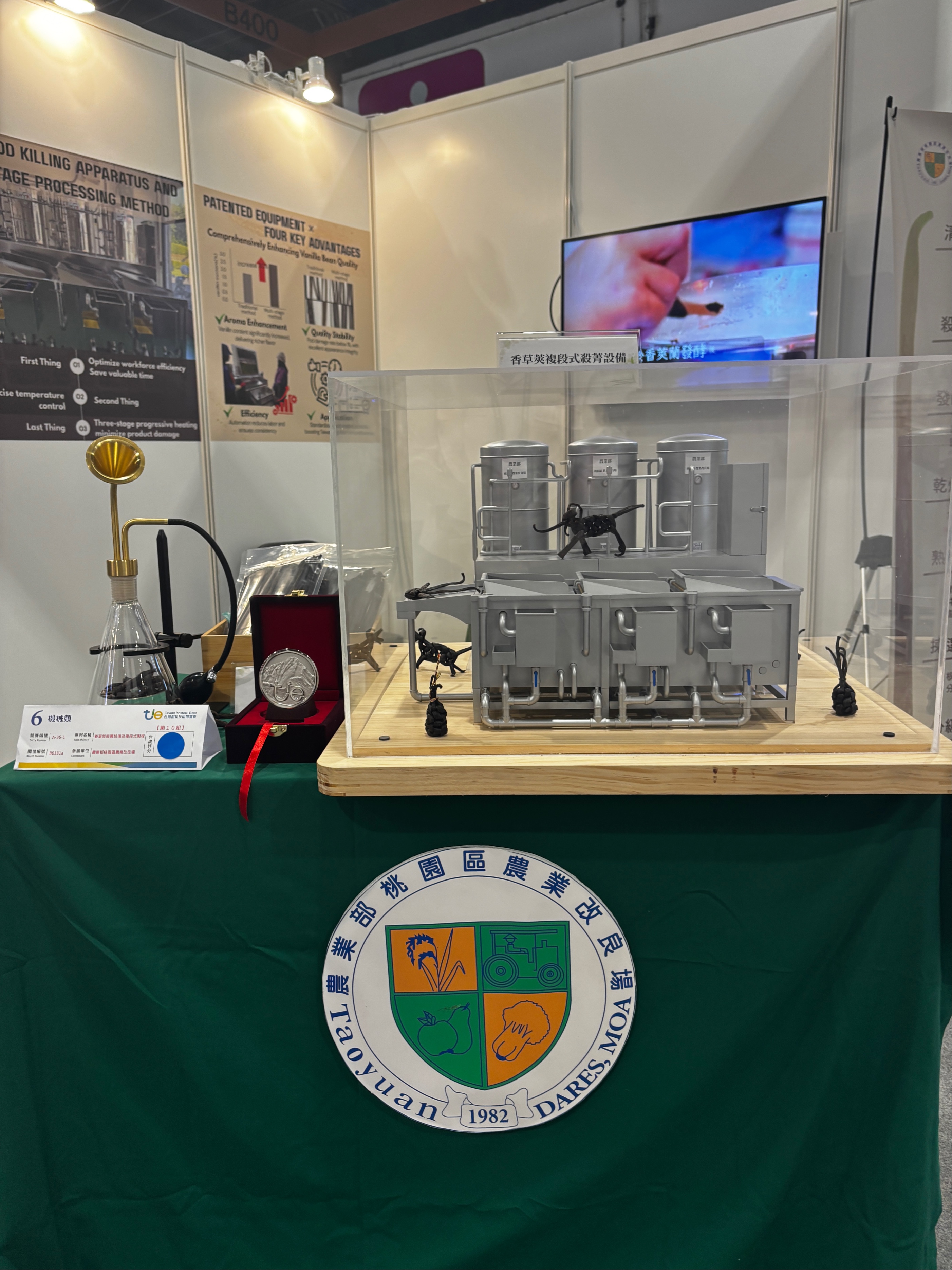 10月16日至18日所舉辦的「臺灣創新技術博覽會」中,本場以「香草莢複段式殺菁設備」〔發明專利(I866569):香草莢殺菁設備及複段式製程〕參展,榮獲發明競賽銀牌獎,展現在智慧農業加工領域的創新成果。