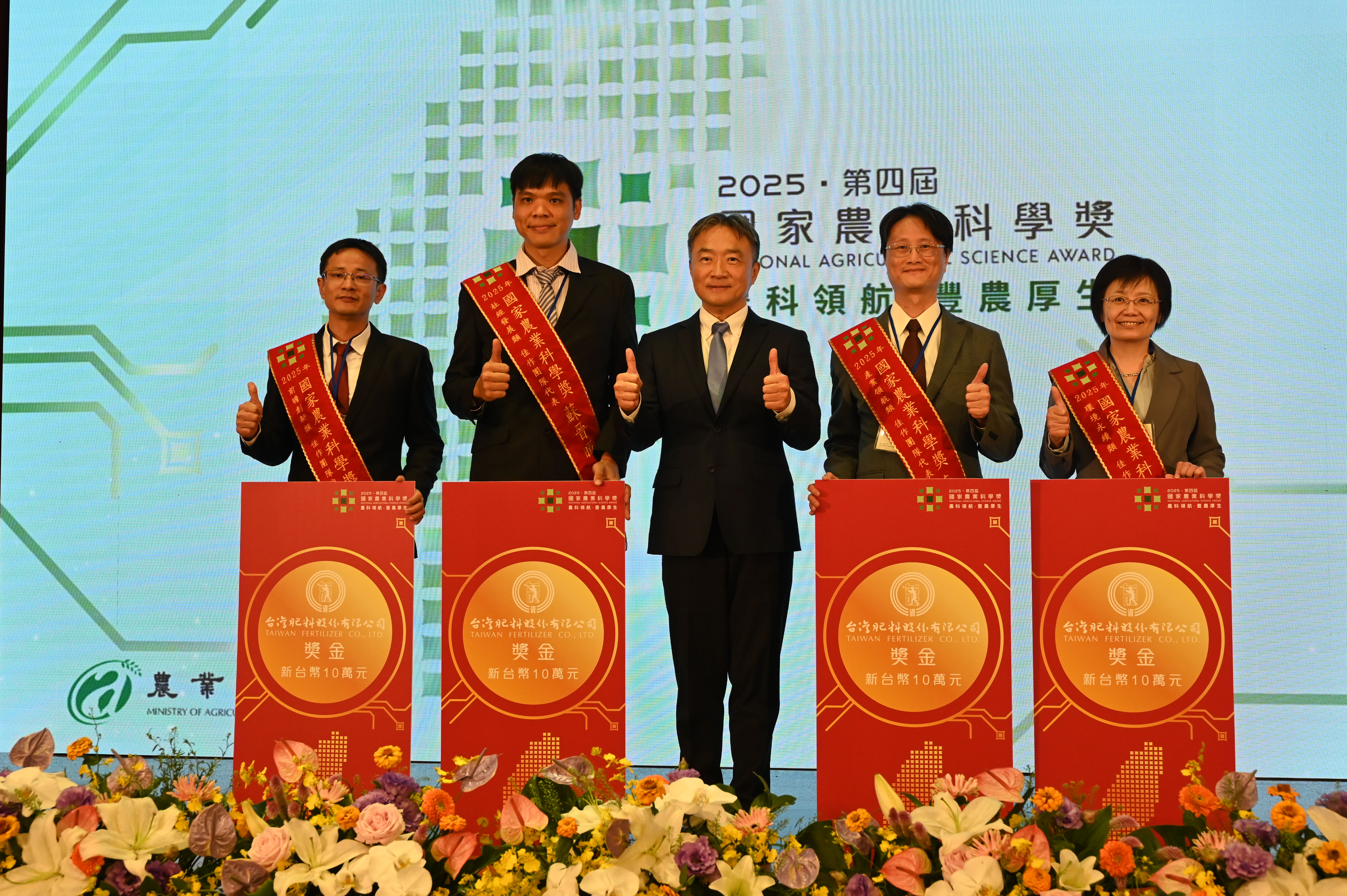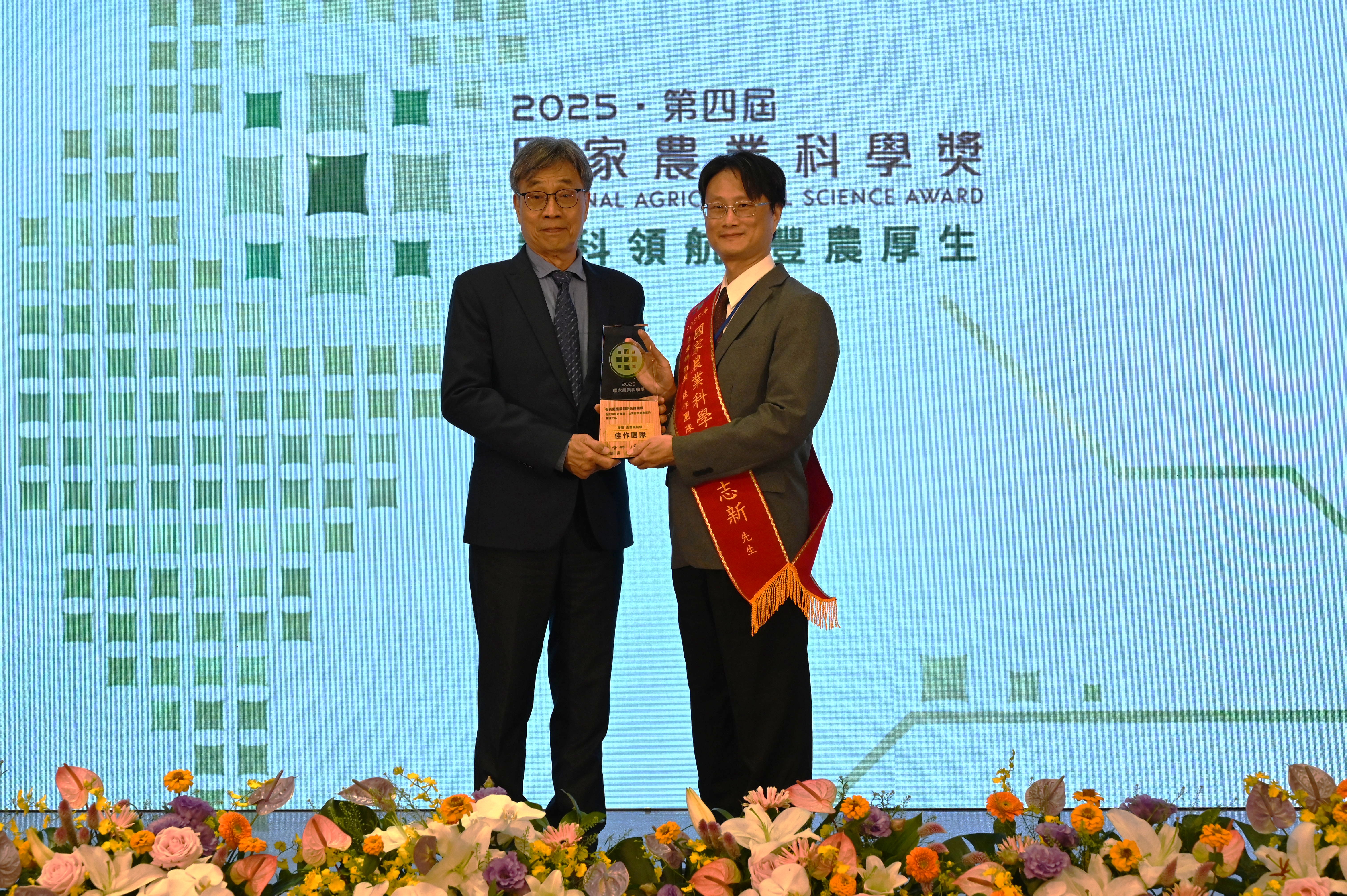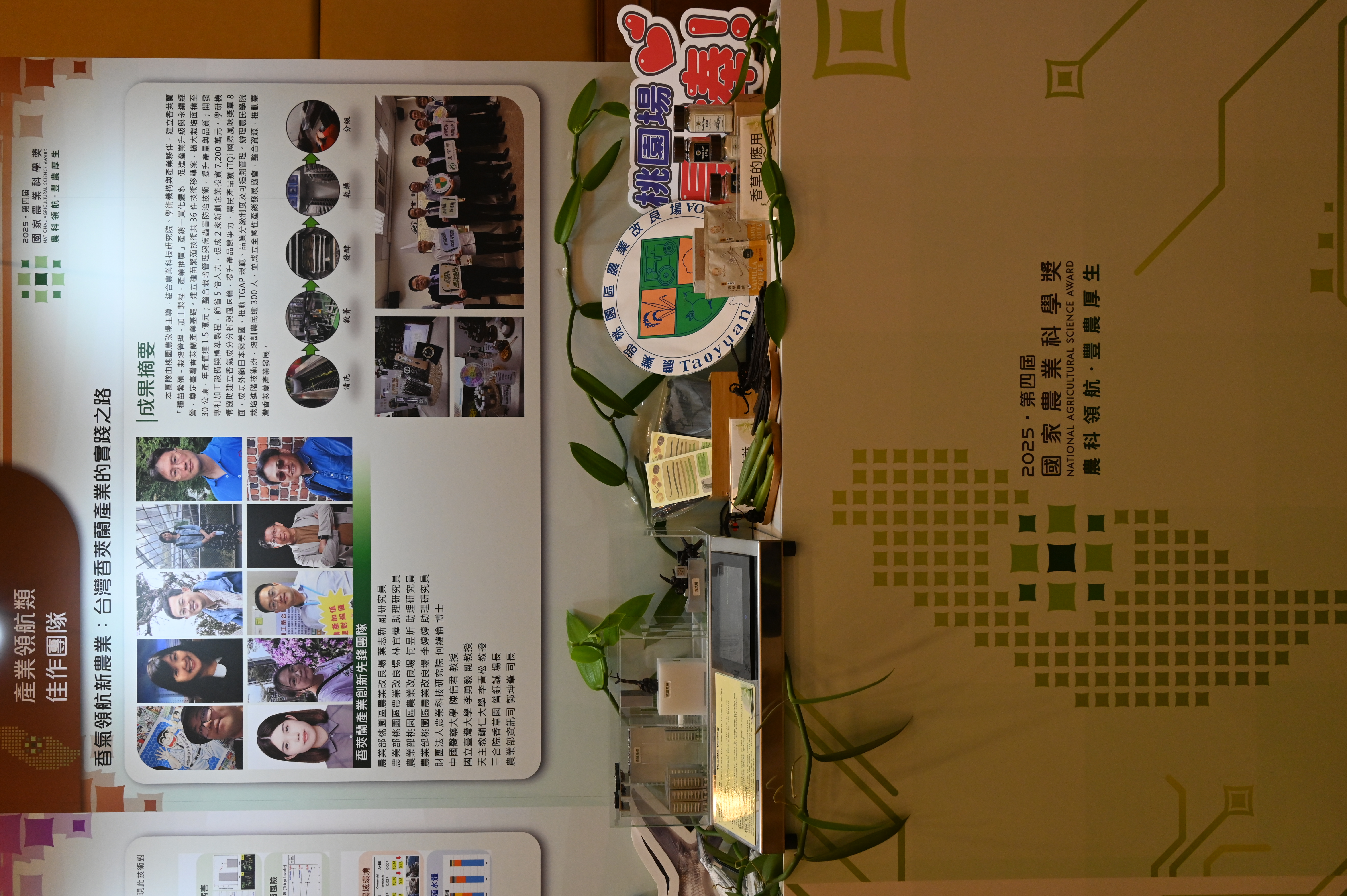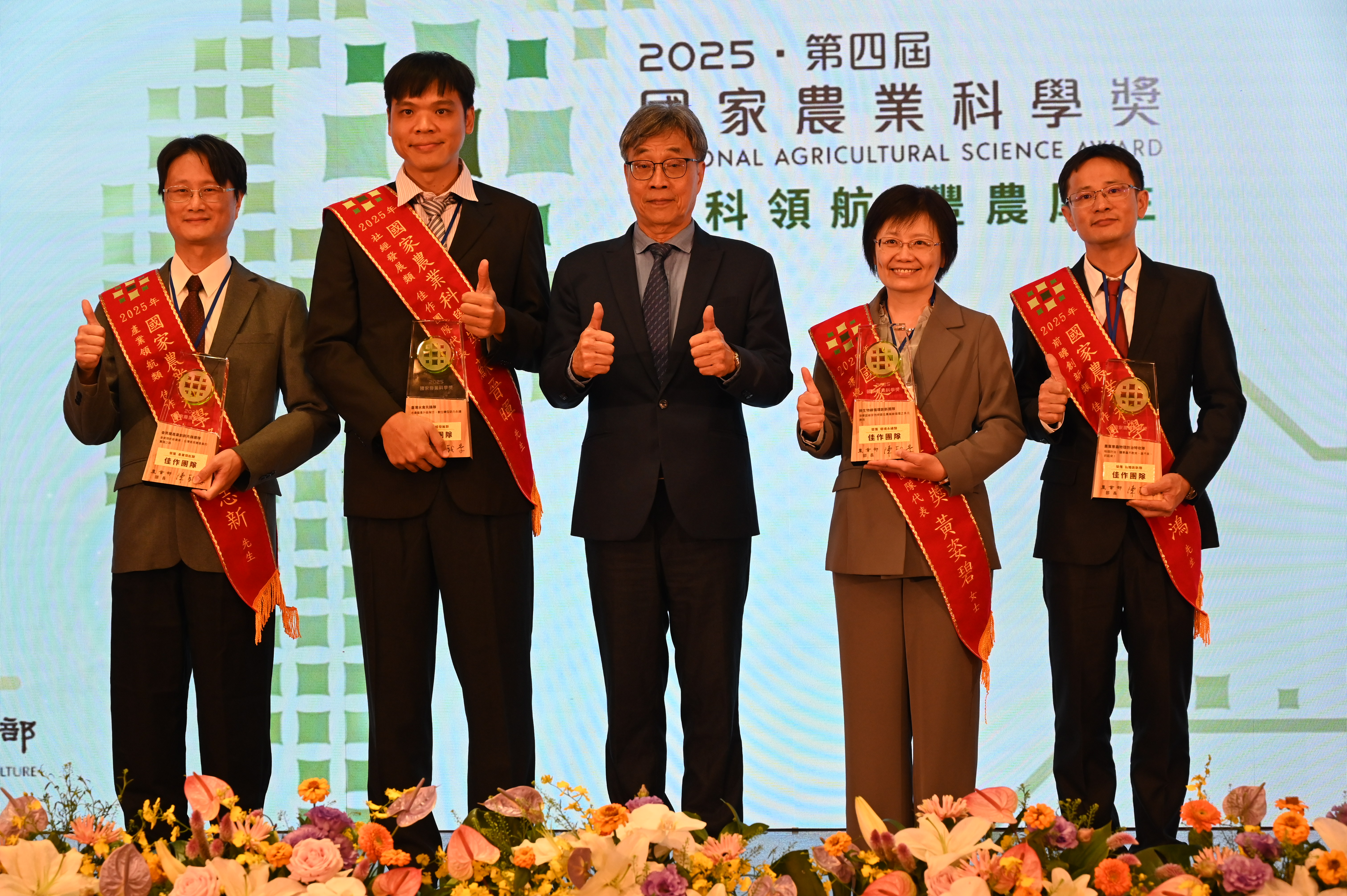 12月16日為國家農業科學獎頒獎典禮,由本場葉志新副研究員領導的「香莢蘭產業創新先鋒團隊」,榮獲 2025 年國家農業科學獎「產業領航團隊」佳作,為臺灣香莢蘭產業立下重要里程碑。