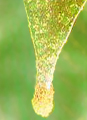 成蹣產卵於葉背,成、幼蹣均群棲於葉裡或葉面凹部吸食為害。卵期3-4天,幼蹣有3