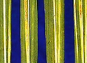 被害甘蔗葉片呈淡黃細長條斑,由葉片基部向上延伸,條斑中央逐漸枯死,終成壞疽狀之枯色條斑。