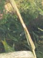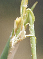 竹捲葉螟吐絲將竹葉心葉捲曲固定成筒狀 |