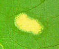 黃色,呈圓形而扁平,卵塊呈魚鱗狀。 |