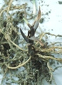 根系被害,被害根腐敗壞疽,根系稀少,造成植株生長不良,嚴重時葉片黃化、生育停頓,甚而植株枯萎。