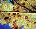可由夏孢子不斷繁殖、為害寄主。冬孢子可越冬,至翌年早春,再為害菊花葉片,產生夏孢子後繼續為害。 |