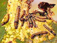一、二齡時,頭部黑褐,胴部灰褐,背線、亞背線及氣門下線皆為白色,且在氣門下線附近有圓紋。三齡以後,氣門上線成白紋,位於各節中央,其上有眼狀黑紋,體長約10公厘。 |