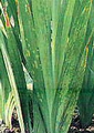 唐菖蒲常遭受胡瓜嵌紋病毒(CMV)及菜豆黃化嵌紋病毒(BYMV)等二病毒為害,植株感染CMV後葉片常會產生與葉脈平行之黃化條斑型病徵,在感病性品種上多數黃化條斑癒合後可出現嚴重的葉片白化似火燒狀,對其生育影響頗巨。至於BYMV則僅造成葉片輕微的斑紋病徵,有時須在透光下才能判別。但與CMV複合感染時,有時花軸、花萼都會出現黃綠嵌紋條斑,花瓣上出現褪色斑,切花品質嚴重受損。
