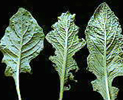 主要危害葉片、花苞。受害葉片會皺縮變形,葉變小,外觀似比正常葉片厚些,葉色較淡或濃綠,花部被害後變褐色,最後因之脫落。