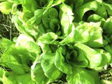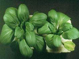 | 正常(左)與缺氮之青江菜。青江菜缺氮,葉色較黃綠,下位葉黃化尤其嚴重,且易從主脈附近均勻黃化。 |
