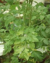 缺氮之蕃茄株全株。全株葉色黃綠,愈下位葉,黃化尤其嚴重。 |
