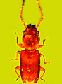 分類地位為鞘翅目 (Coleoptera) 扁蟲科 (Cucujidae)。成蟲為穀倉中常見的最小甲蟲。體長1.5公厘,扁平,長橢圓形,紅褐色,觸角呈鞭狀,有11節。雄觸角長度約體長的三分之二,較雌蟲為長 ,雄蟲觸角各節長橢圓形 ,雌蟲觸角各節稍呈球狀。