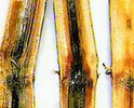 被害蔗苗兩端切口先變紅,以後全部變黑腐爛而不能發芽。病症發展過程中發散類似鳳梨之香味。