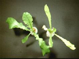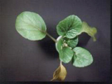 | 芥菜缺氮。老葉黃化嚴重,生育受阻。 |