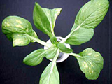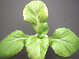 | 甘藍缺鋅。新葉葉肉黃白化。 |