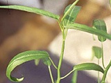 | 蕹菜缺鋅。葉片小而細長,葉肉呈現細網狀黃化。 |