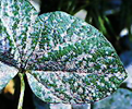 本病危害葉片、葉柄及花器等部位,初期病徵呈現不太明顯之淡色小斑點,逐漸擴大成白粉狀斑點,嚴重者整葉都被覆一層白粉。後期罹病葉背面往往呈現紅褐色,因此常導致提前落葉。