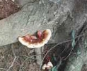 衰弱之柑橘樹幹基部長出靈芝子實體