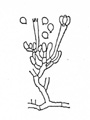 mm,擔子囊頂端有2-4個小柄,其上長有擔孢子。擔孢子無色單孢,9-17 x7-17