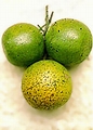 黑點比較大,黑點略突出在果皮上,其周圍略呈灰白色。黑點表面有粗糙感覺。