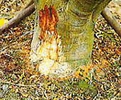罹患褐根病之楊桃樹根部樹皮剝面,其上長有褐色網紋狀菌絲索