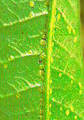 公厘,初羽化之成蟲體呈黃色,後漸成暗色。複眼呈紫褐色,翅兩對透明,足黃色。卵呈長橢圓形,乳黃色,長約0.25公厘。若蟲體型扁平如胄甲,伏貼葉面,除二眼紅色外體均為黃色透明,觸角狀如刺,前緣成鋸齒狀,口器細長呈針狀。