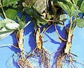 本病主要在定植初期發生。發病時下位葉1、2葉片先萎凋,葉柄下垂如燙傷狀,烈日下更為嚴重,過夜後稍可恢復,數日後整株枯死,病株根系大致健全無恙,根冠縱切中間有明顯褐變。生育後期發病時(3~5月)病株明顯矮化,無法正常結果,植株老葉萎黃乾枯,僅剩心芽數個葉片。