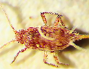 雌成蟲無翅,紫色,體背面中央有一明顯之刺,以與若蟲區別。形狀大小因群集擁擠,頗不一定。雄成蟲有觸腳及足,腹端有長陰莖鞘。一齡若蟲有足及觸角,體長0.6mm,二齡雌若蟲觸角及足退化,體長0.7~0.8mm,三齡約0.9mm。