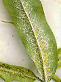 被害新芽、嫩葉皺縮而無法伸展,被害嚴重者嫩葉變黃而脫落。