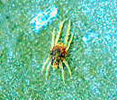成蹣體呈卵圓形,紅色至紫紅色,背部刺毛基部突起,呈灰白色,足