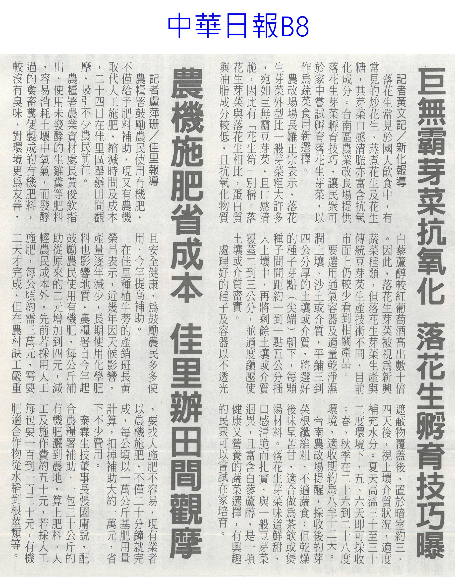 | 全國產地 | 台中:沙鹿、清水,彰化:芳苑、大城、二林,雲林:元長、土庫、東勢、水林、虎尾、麥寮、北港、褒忠、崙背、四湖、臺西,嘉義:溪口,台南:善化,高雄:大寮,屏東:新園 | ||||